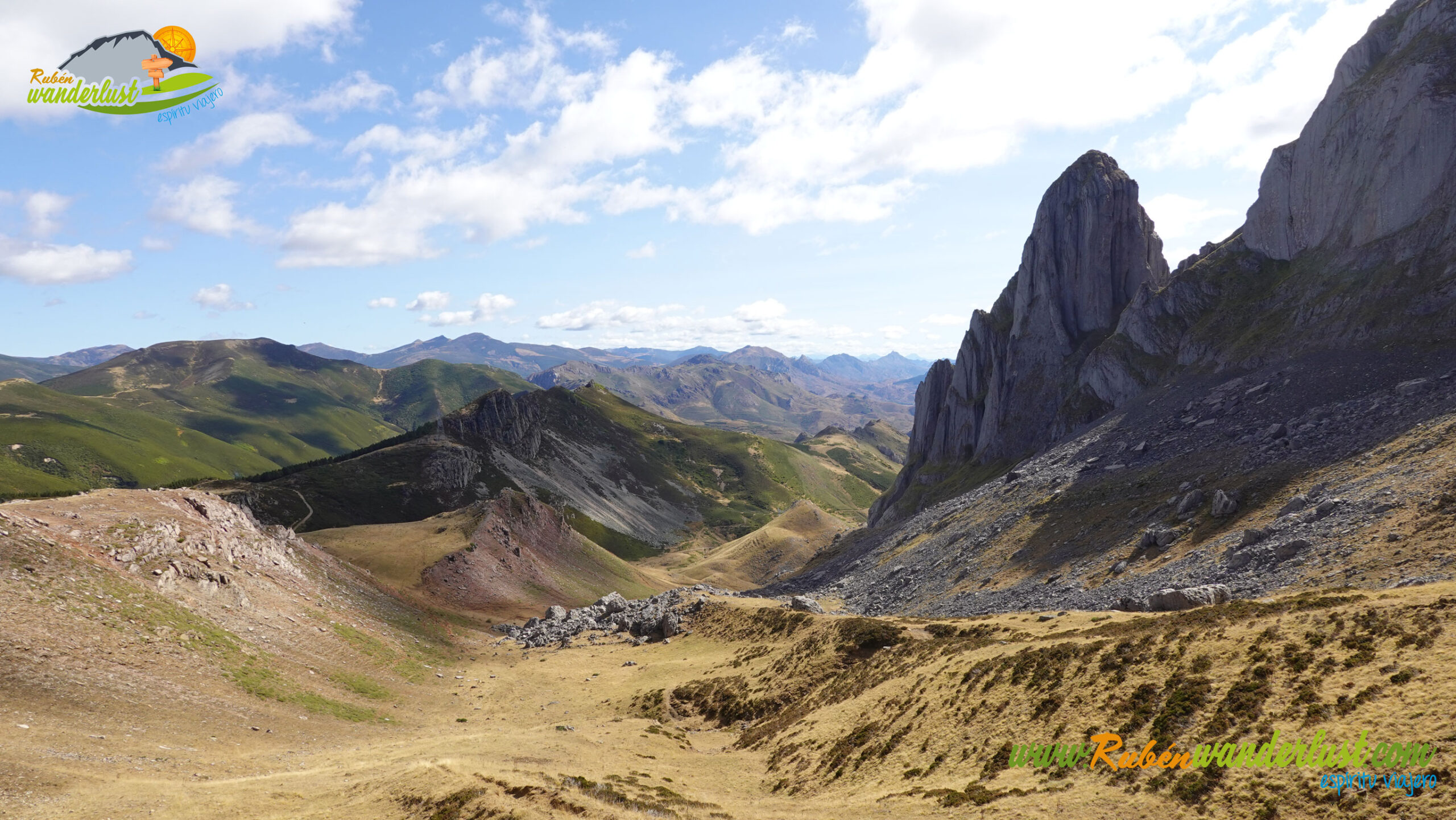 Finalizada la canal, llegamos a un primer collado, desde donde obtenemos unas vistas fantásticas de Luna, uno de los entornos más bonitos de la provincia de León! Andrea se alegra de ver la cumbre más cerca! Giramos hacia la izquierda!