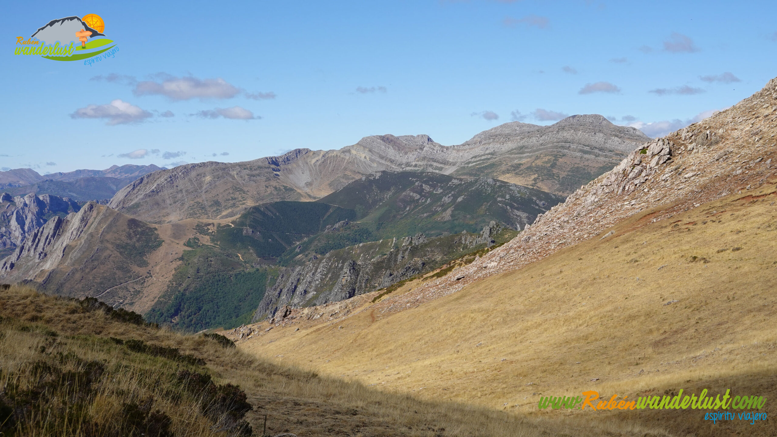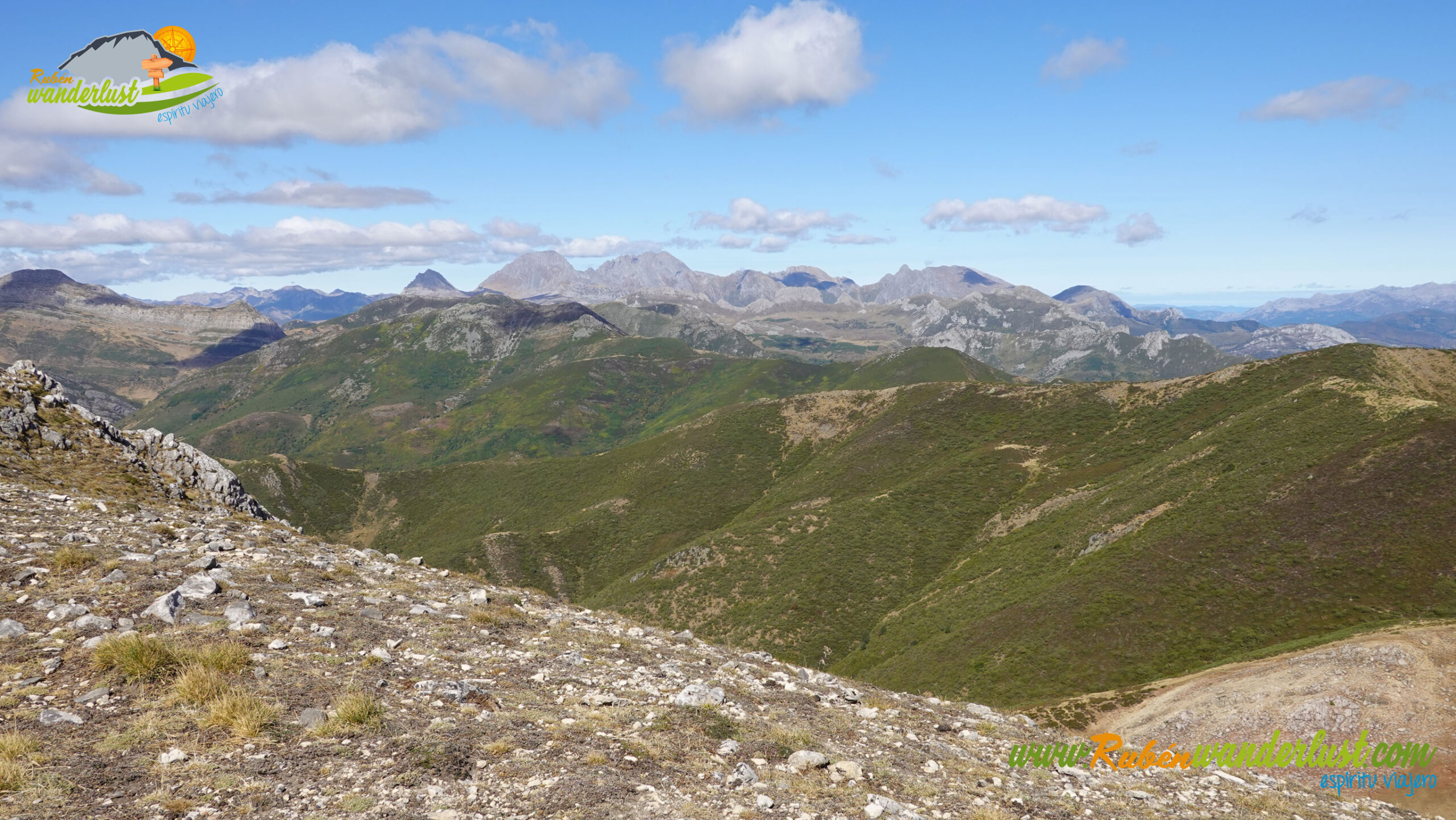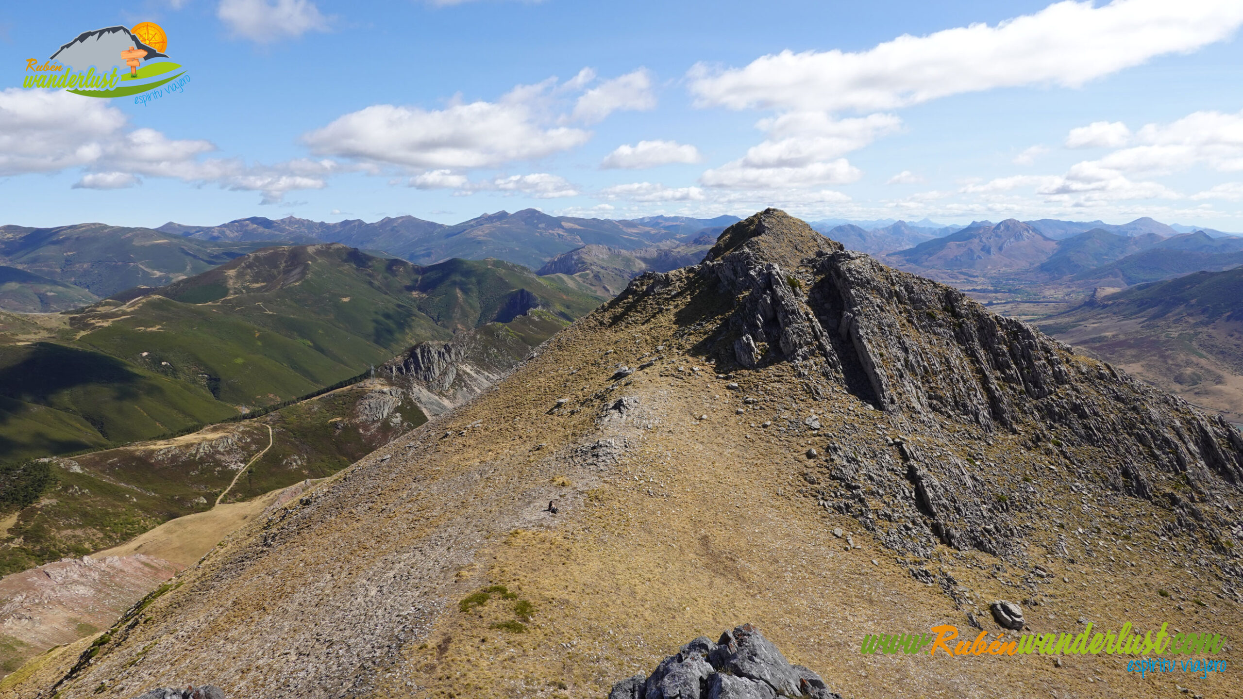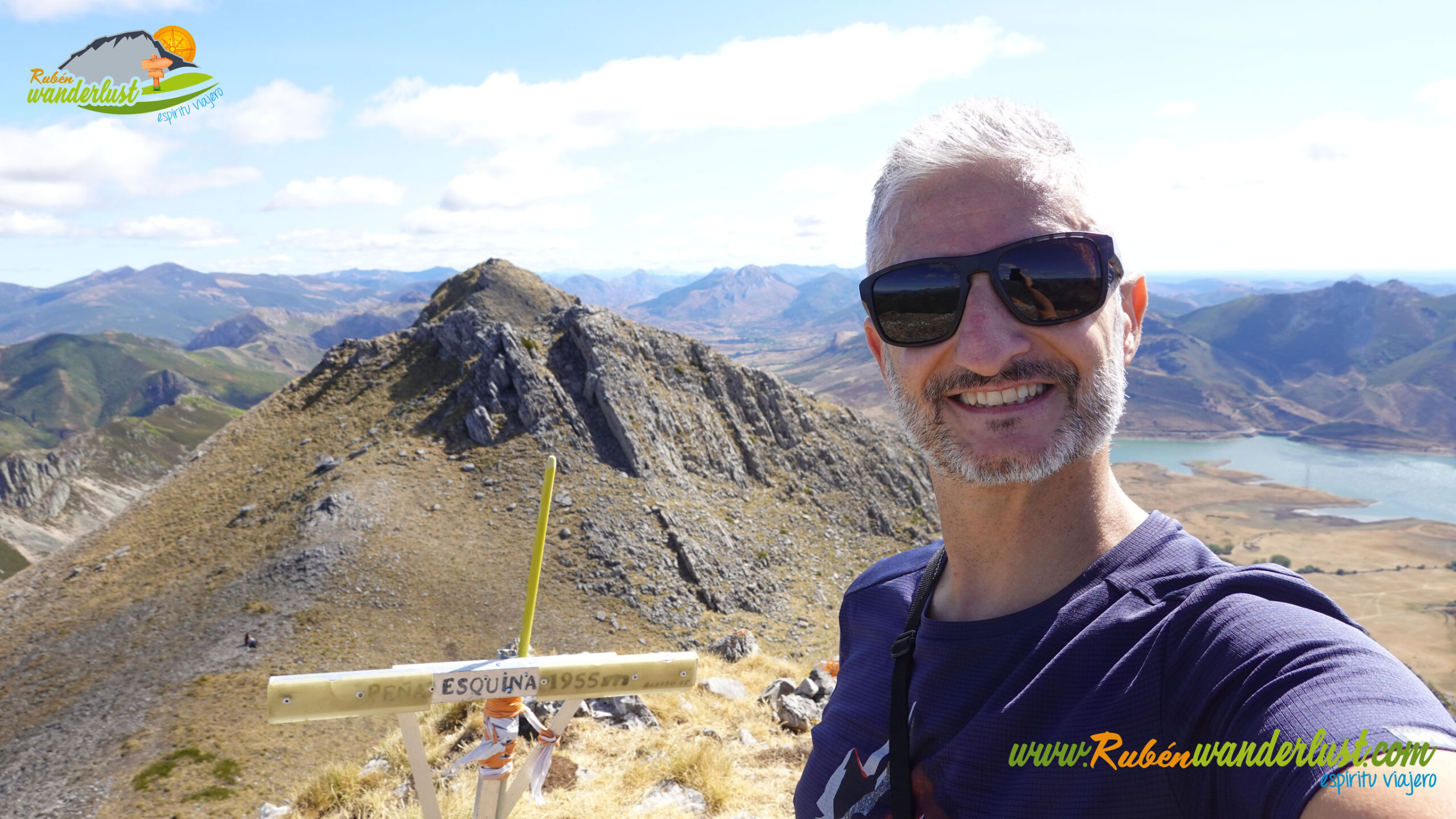 Cumbre en Peña Esquina (1.951 m). Vistas brutales del Valle de Arbas y una panorámica excepcional hacia las montañas que nos rodean, destacando el Pico de la Brazosa y Peña María de los Corros, hacia donde nos dirigimos.