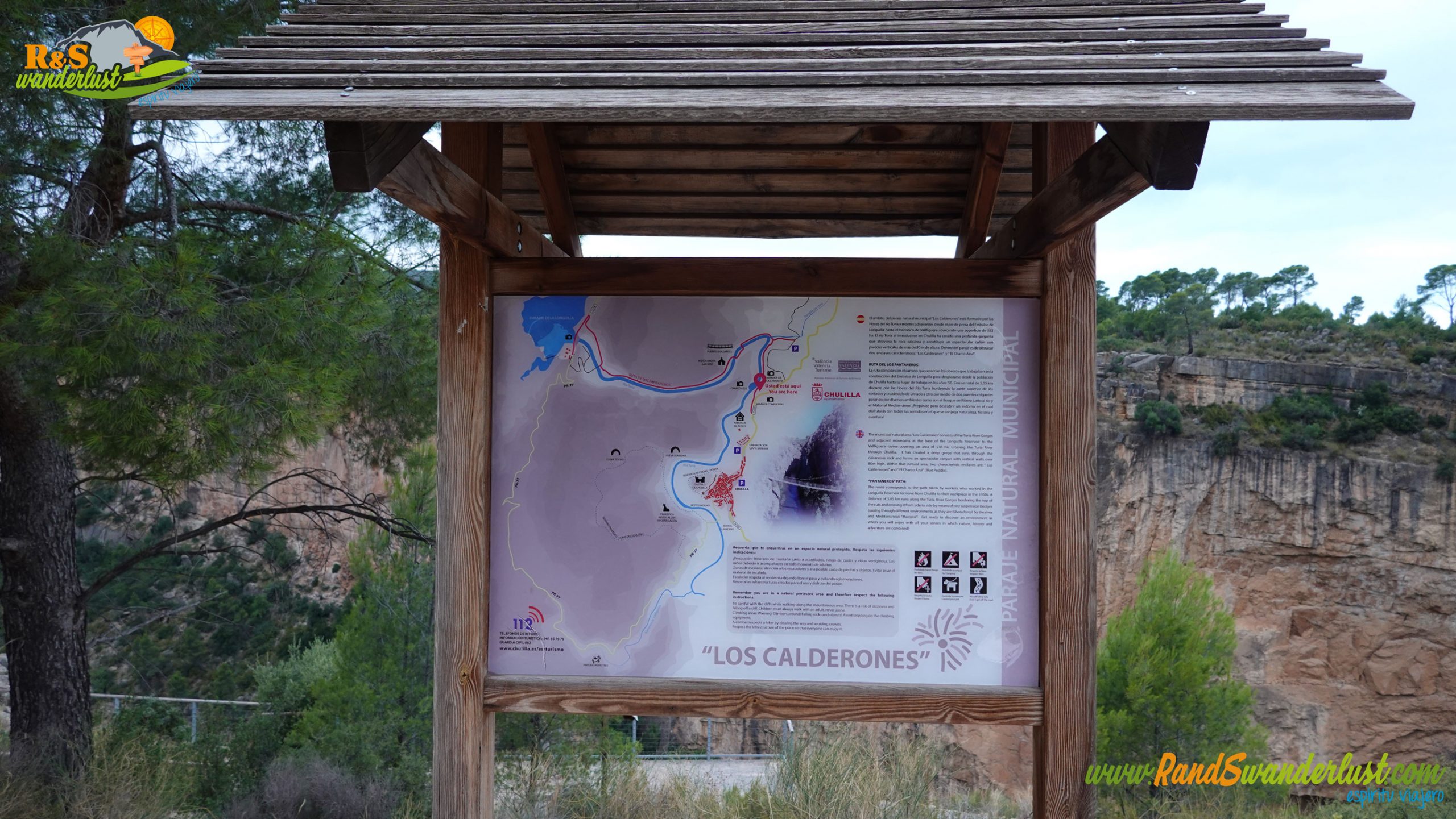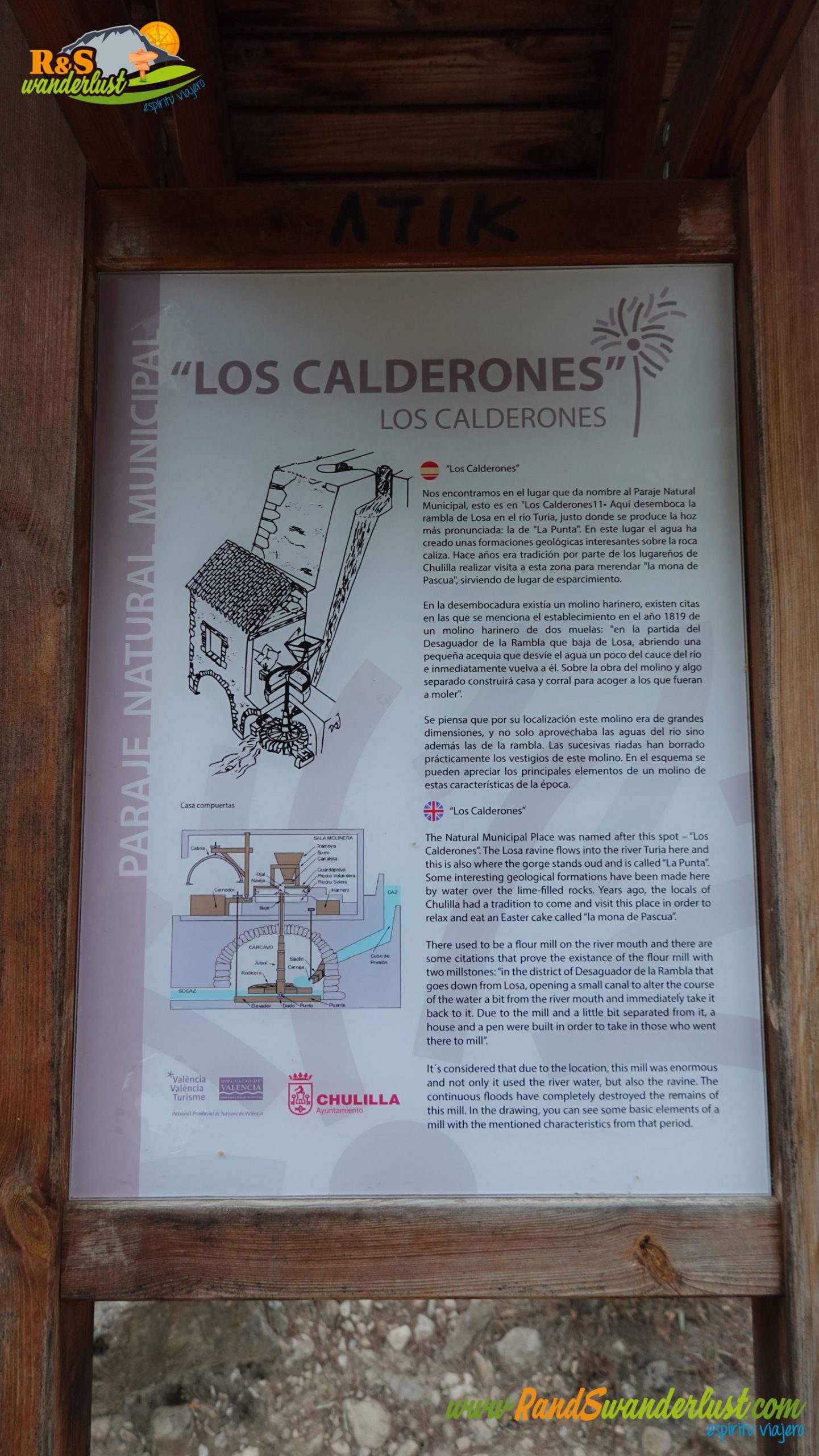 Seguimos avanzando y disfrutando de las vistas sobre el río. A los dos kilómetros de ruta, llegamos al desvío que se dirige hacia Los Calderones. Aquí también tendremos un cartel informativo sobre dicho lugar. La panorámica es excepcional!