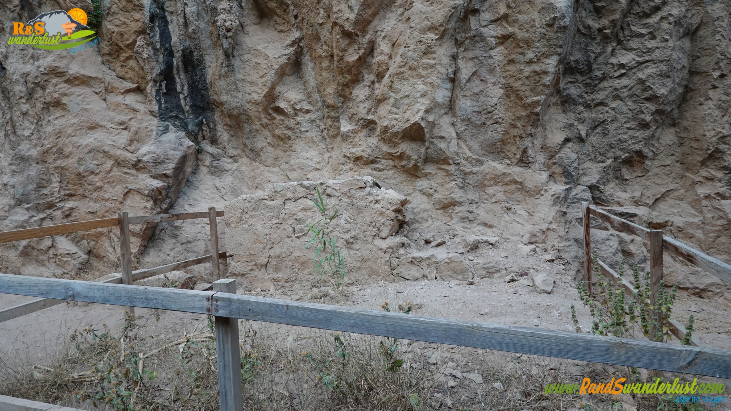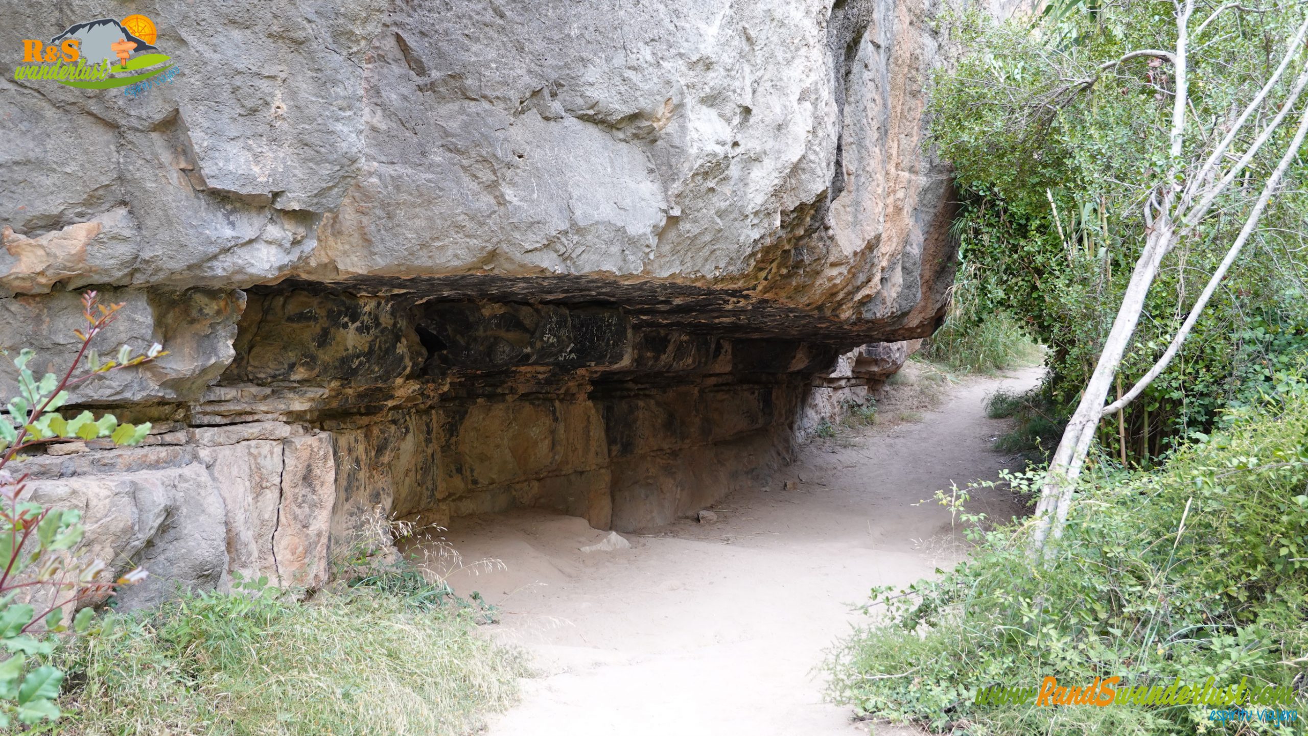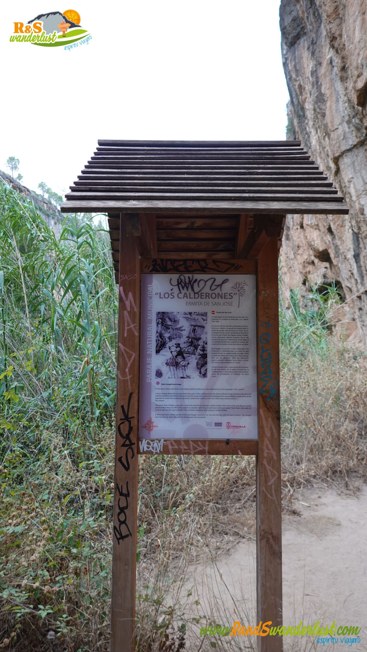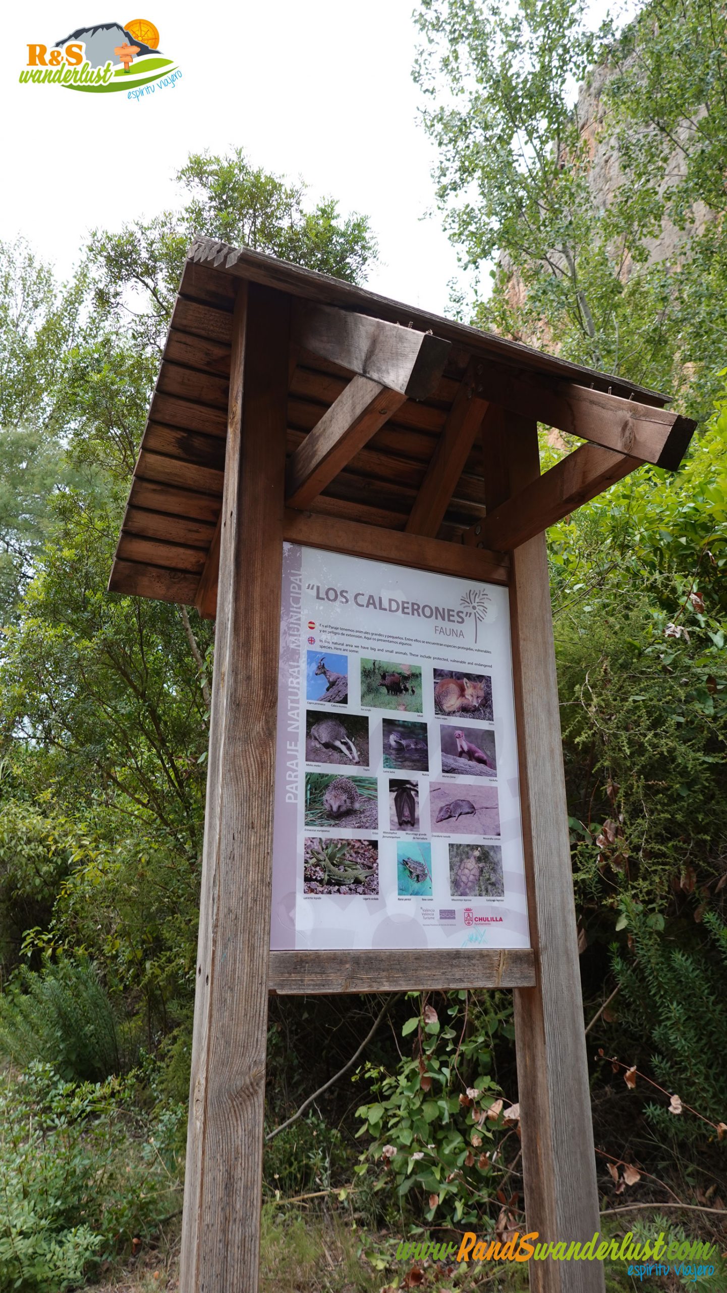 Vamos completando el tramo de Los Calderones mientras seguimos visitando carteles informativos. También vemos un abrigo, techo de roca en el que poder refugiarse. El terreno se abre y vamos saliendo de la parte más encajonada y bonita de la ruta!