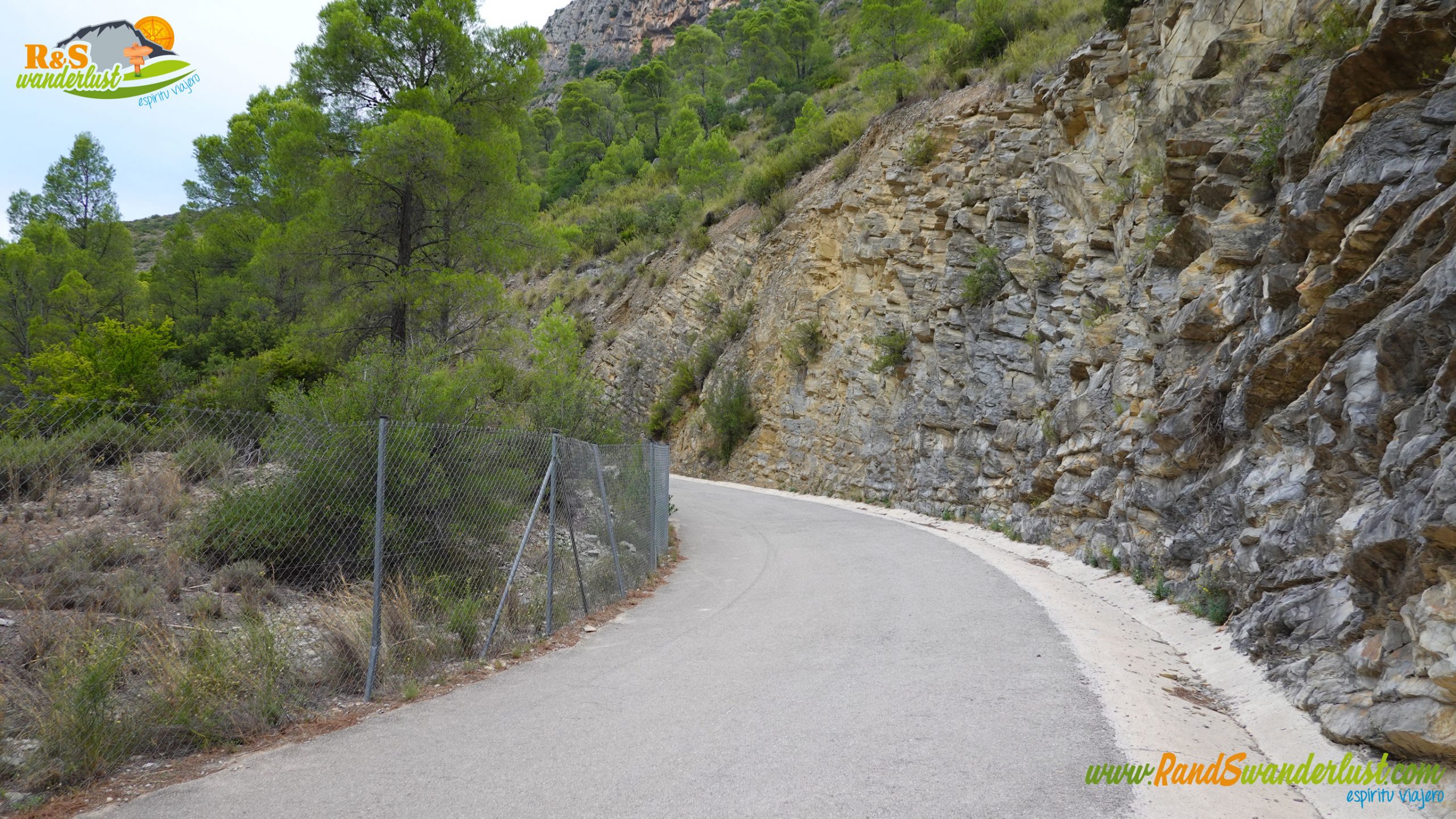 Comenzamos a caminar hacia el norte, hacia el lado opuesto al que se encuentra Chulilla. A tan sólo medio kilómetro, nos desviamos hacia la izquierda para comenzar el verdadero trazado, pues hasta aquí tendremos que caminar sobre asfalto.