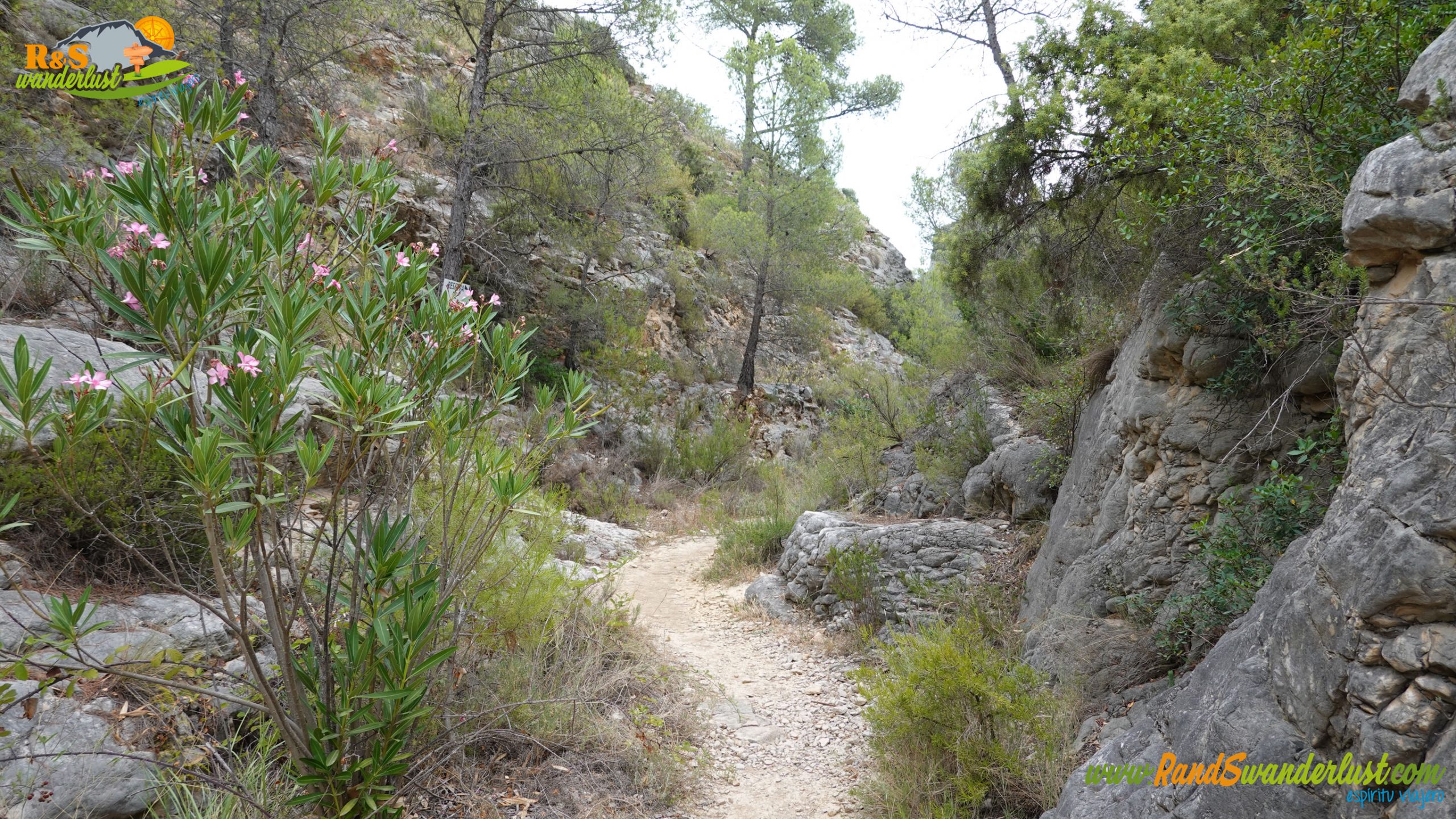 Completado el tramo por la pista forestal, nos desviamos hacia la izquierda, rumbo a las Pinturas Rupestres. Este desvío nos adentrará en el Barranco Vallfigueras a través de un sendero más pedregoso e inclinado. El paisaje se vuelve a estrechar, ganando en belleza!