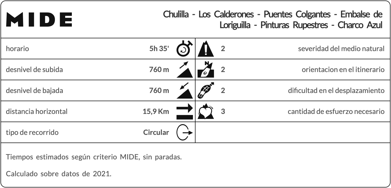 Precioso y variado recorrido circular para conocer Los Calderones, los puentes colgantes sobre el Río Turia, el Embalse de Loriguilla, las Pinturas Rupestres y el Charco Azul. Un trazado perfecto para llevarse la mejor y más completa impresión de la zona! Ruta de más de 15 kilómetros, relativamente sencilla de caminar y sin grandes desniveles! Muy recomendable!