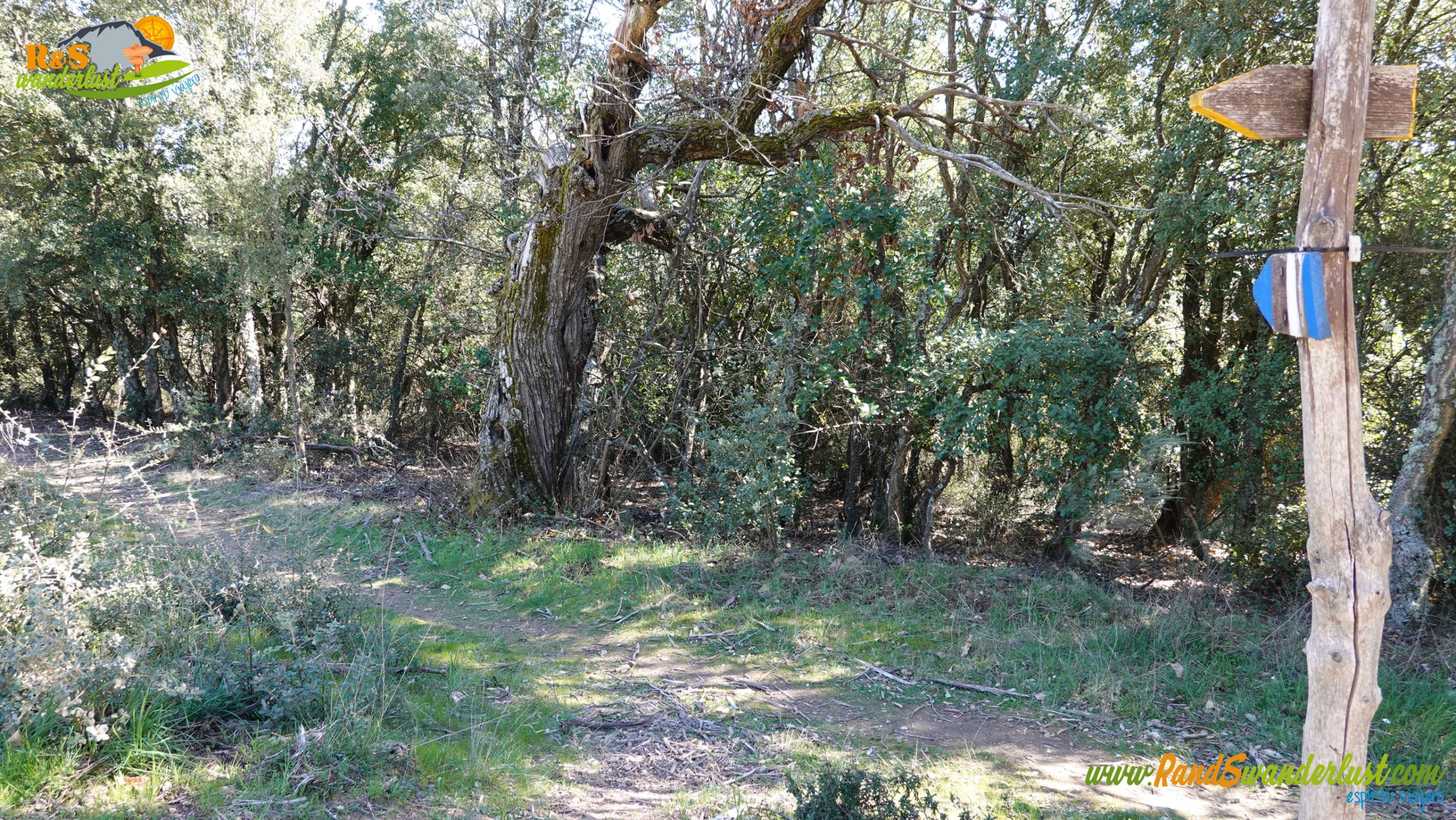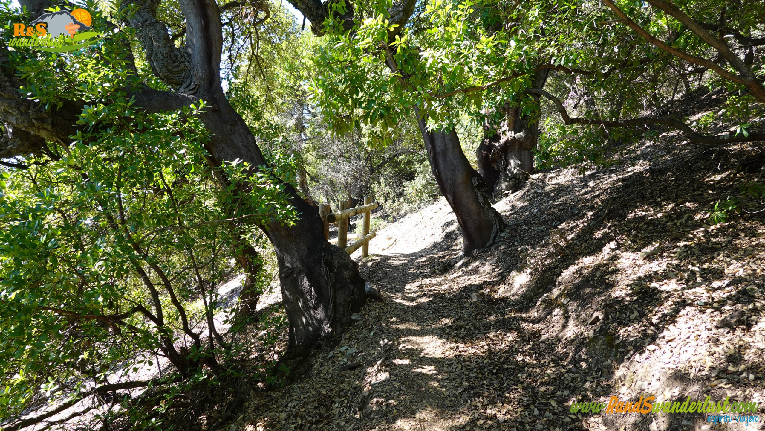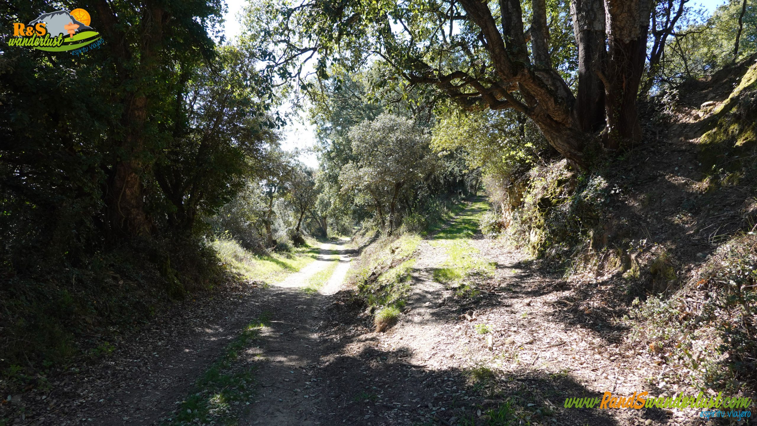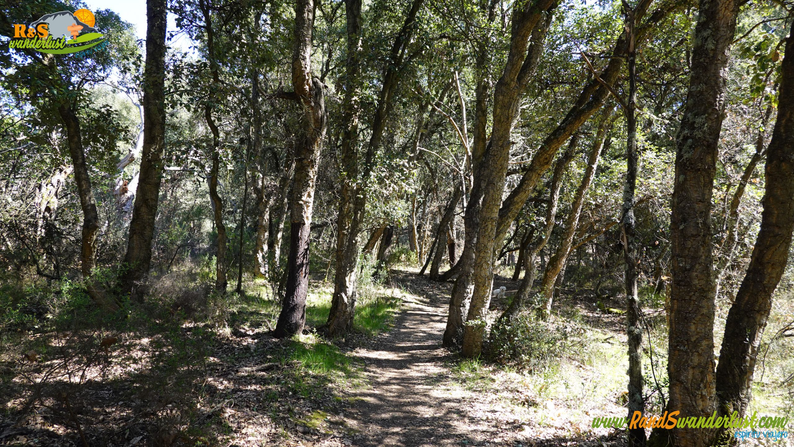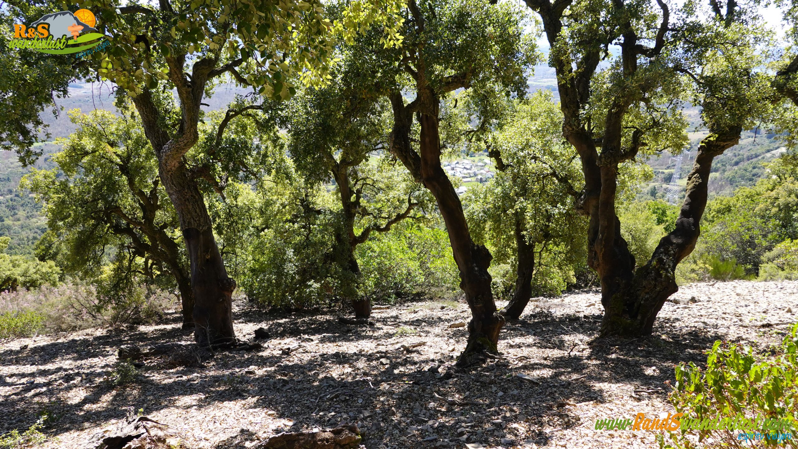 Dejamos atrás una de las partes más bonitas de la ruta y comenzamos el descenso hacia Cobrana. La bajada será muy cómoda, de momento por una ancha pista forestal y sin pérdida, pues los desvíos, que son varios, están perfectamente señalizados. Por el camino, podemos disfrutar de algún ejemplar de alcornoque precioso!