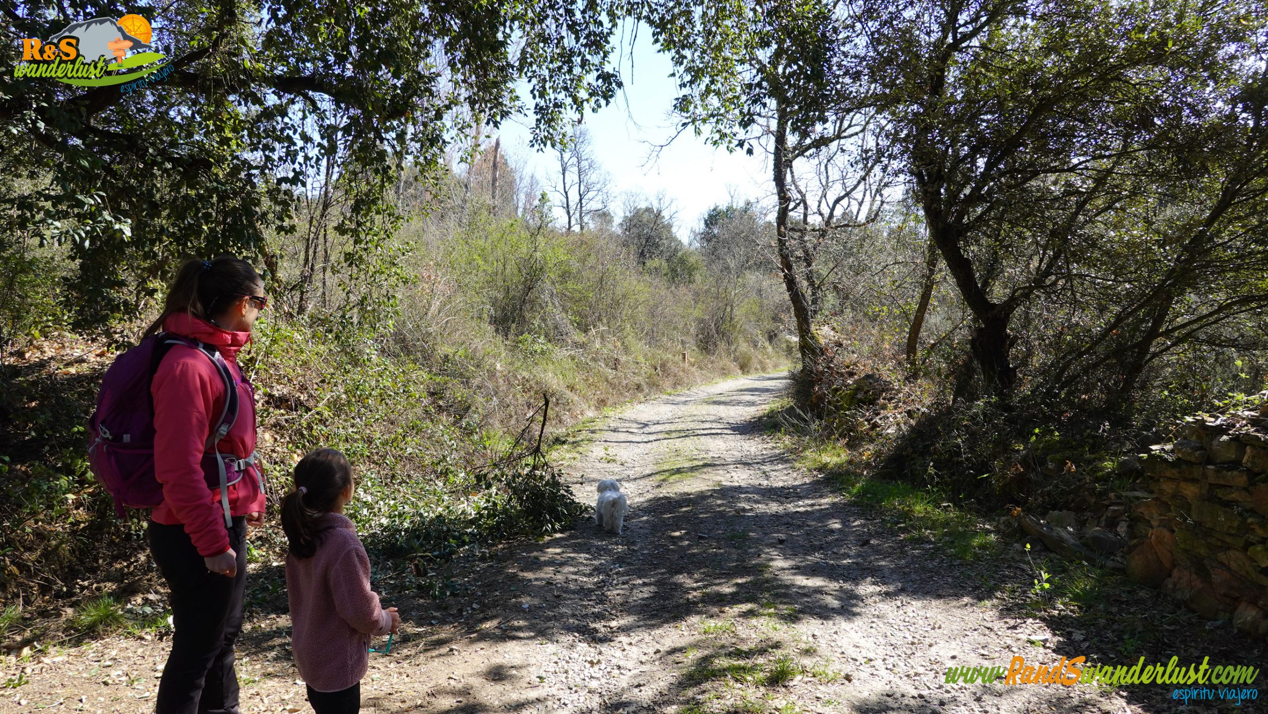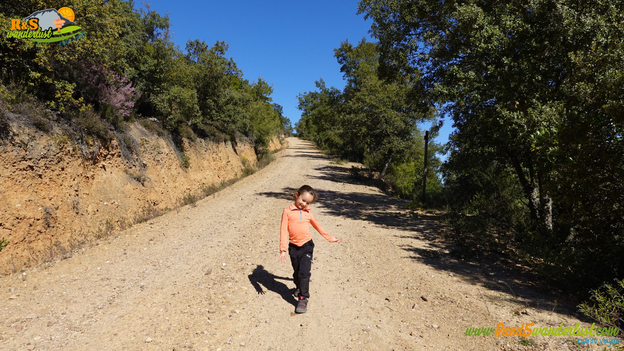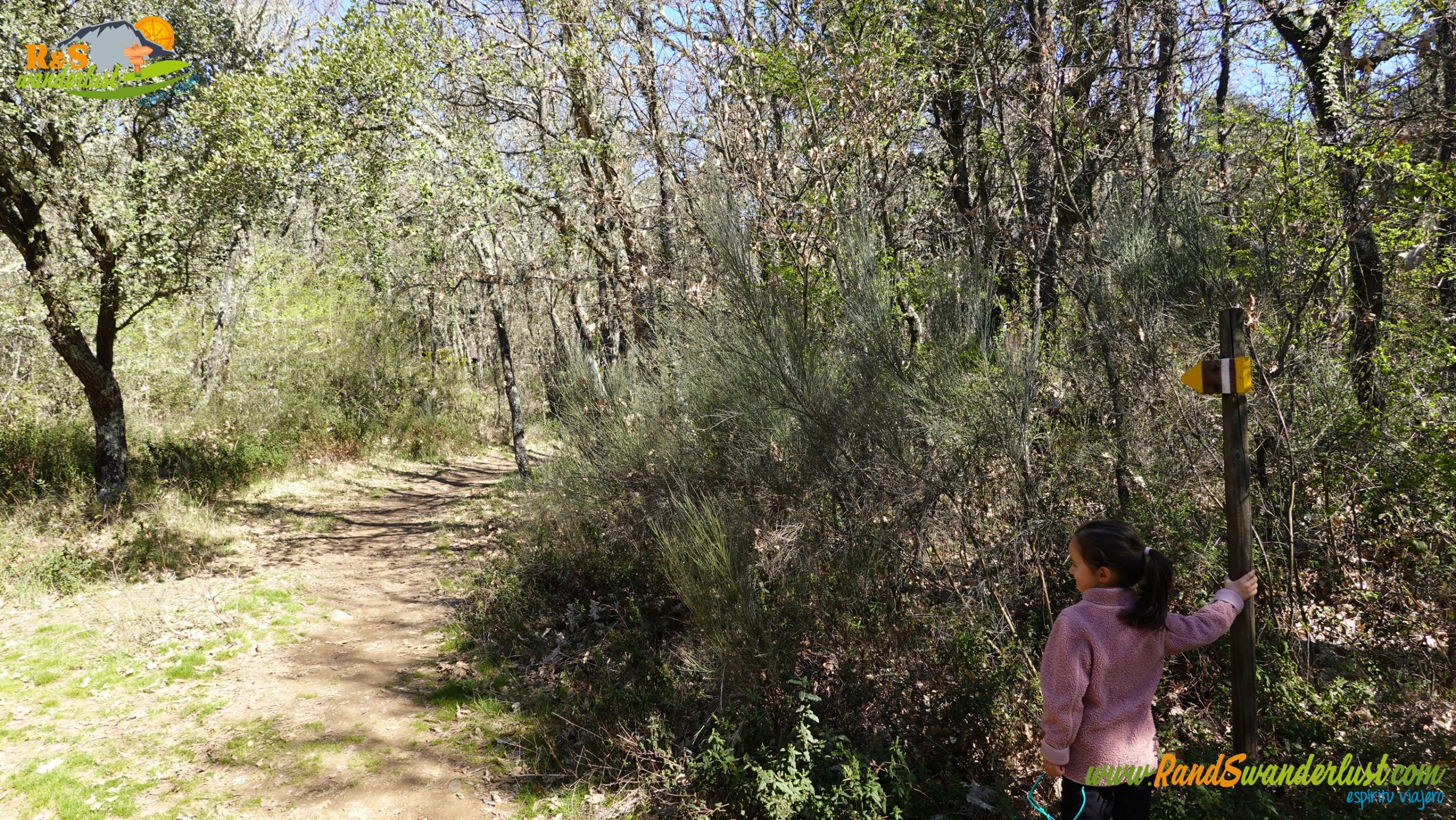 Elegimos la opción larga, pues hace un día estupendo y Dafne va disfrutando muchísimo. Seguimos más desvíos, todos bien señalizados, y volvemos a encontrar pequeñas masas boscosas de alcornoques. La ruta está siendo preciosa!