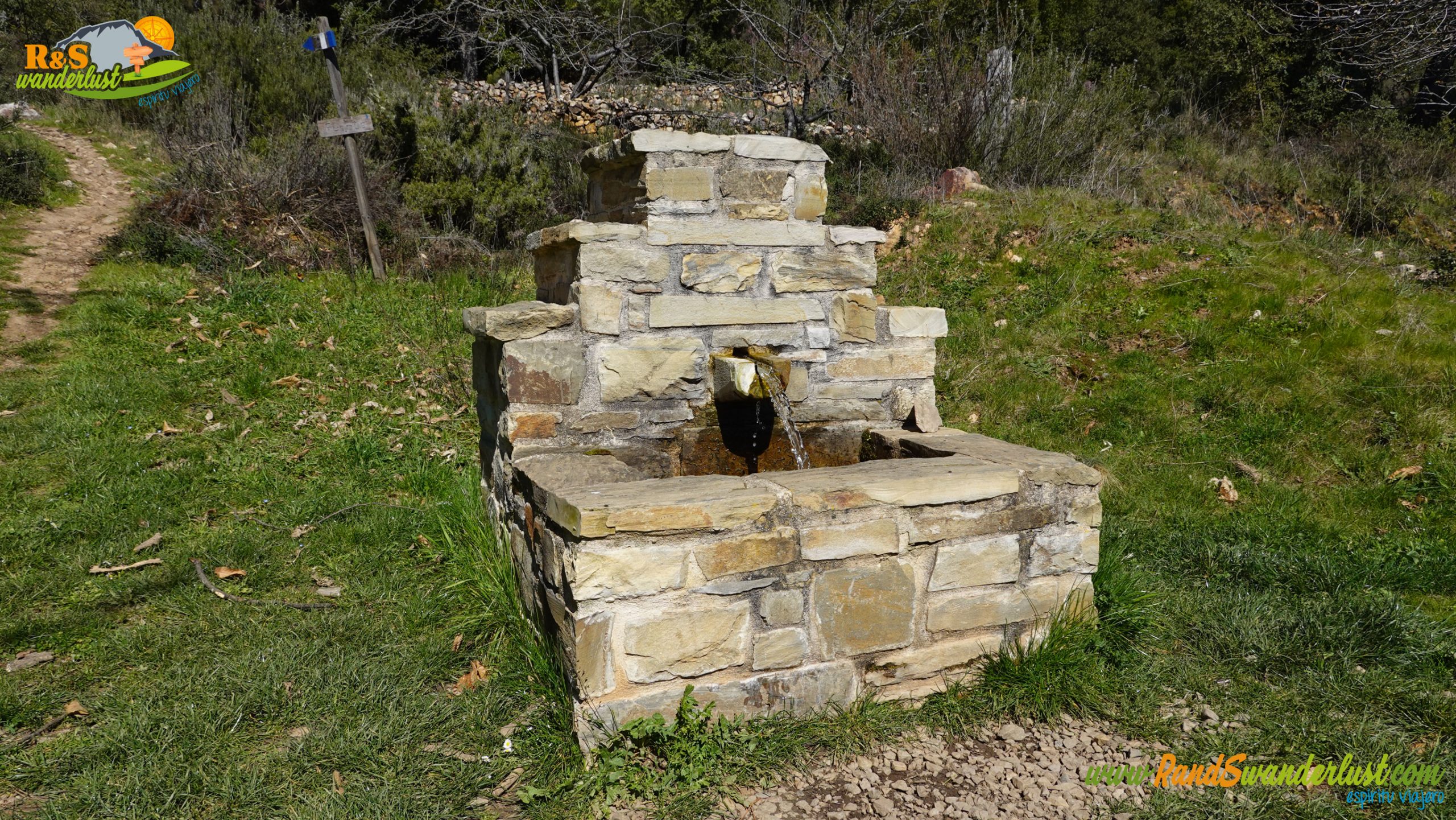 Completada esta segunda parte, llegamos a una ancha pista forestal, donde debemos desviarnos hacia el norte para llegar a un pequeño área de descanso, lugar donde encontramos una fuente, ideal para recargar agua fresca, Aquí nos tomaremos el primer respiro, con buenas vistas hacia los Montes Aquilianos!
