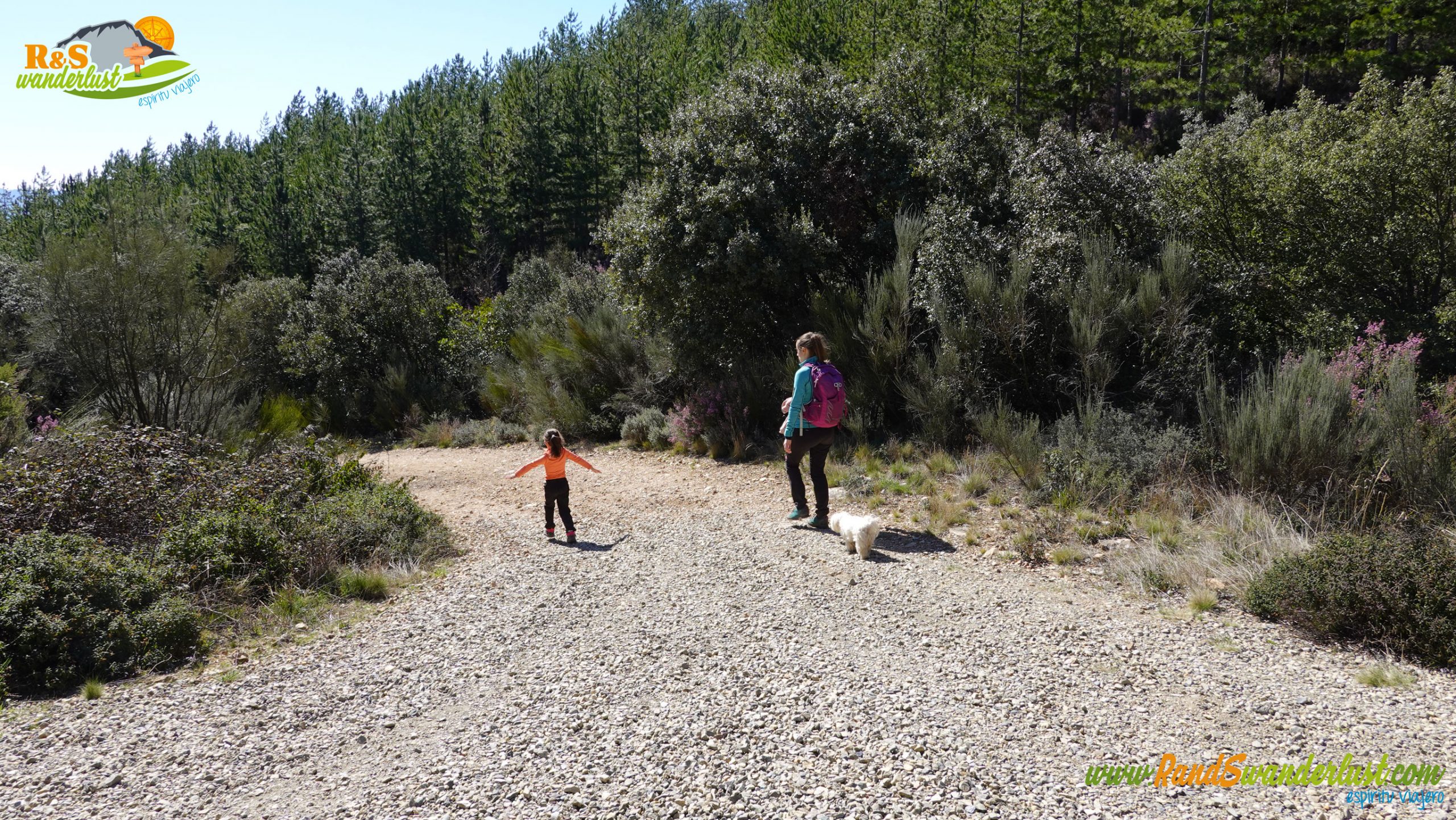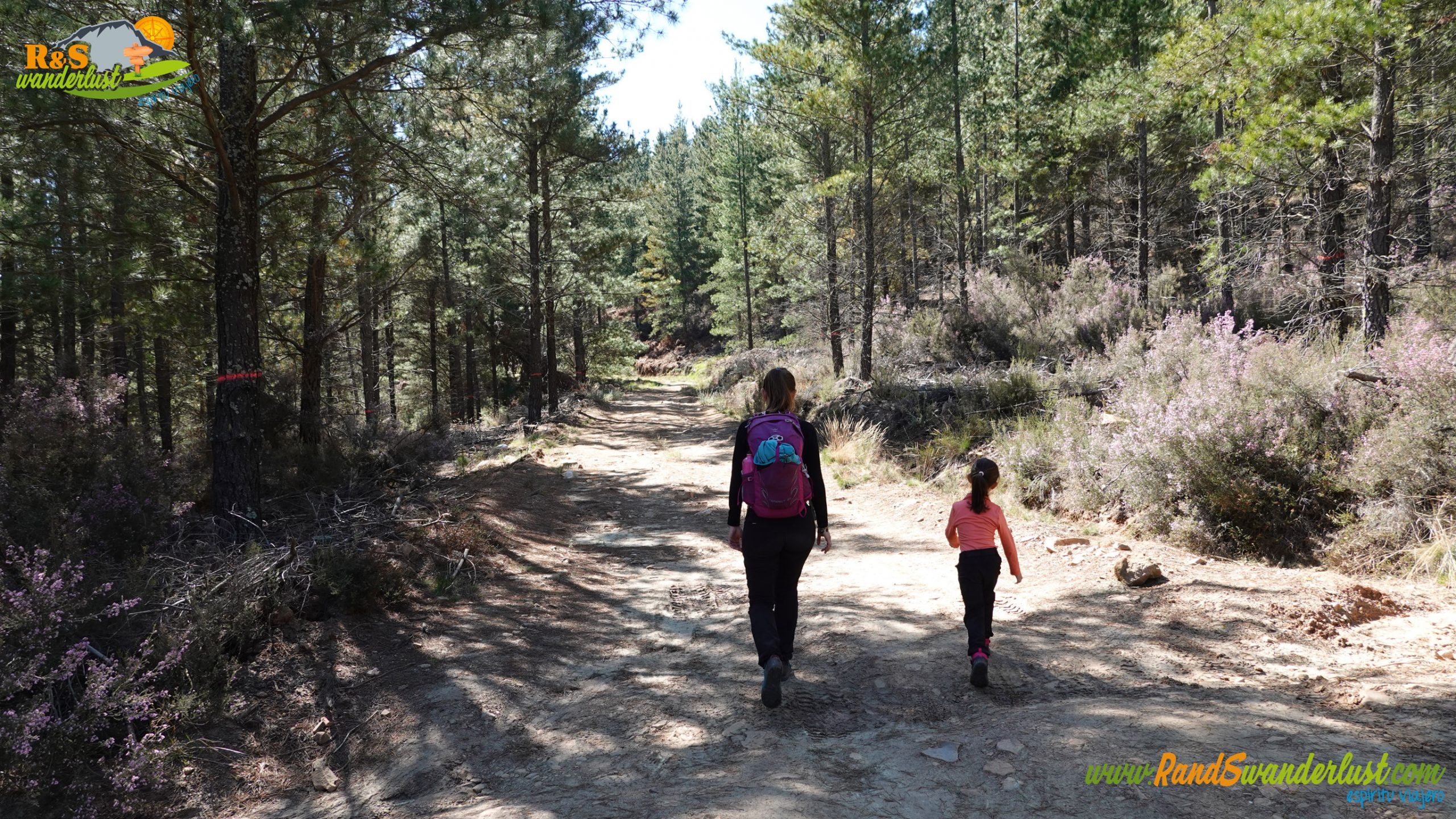 La siguiente parte de la ruta no tendrá demasiados alicientes. Debemos ir ganando metros por una pista forestal ancha y sin complicaciones, cruzando un extenso pinar. Eso sí, las vistas hacia el sur son preciosas! Seguimos algún desvío más!