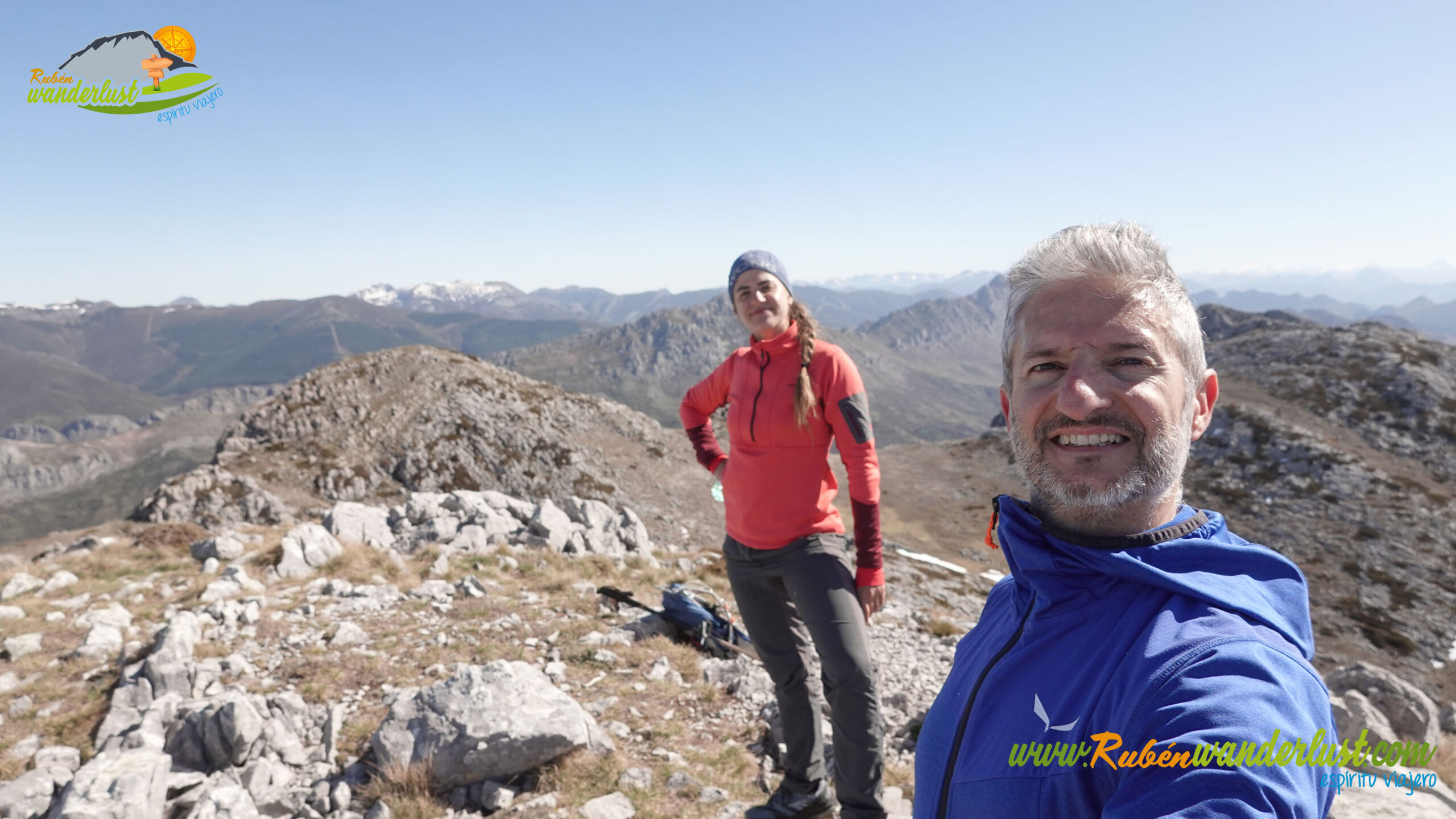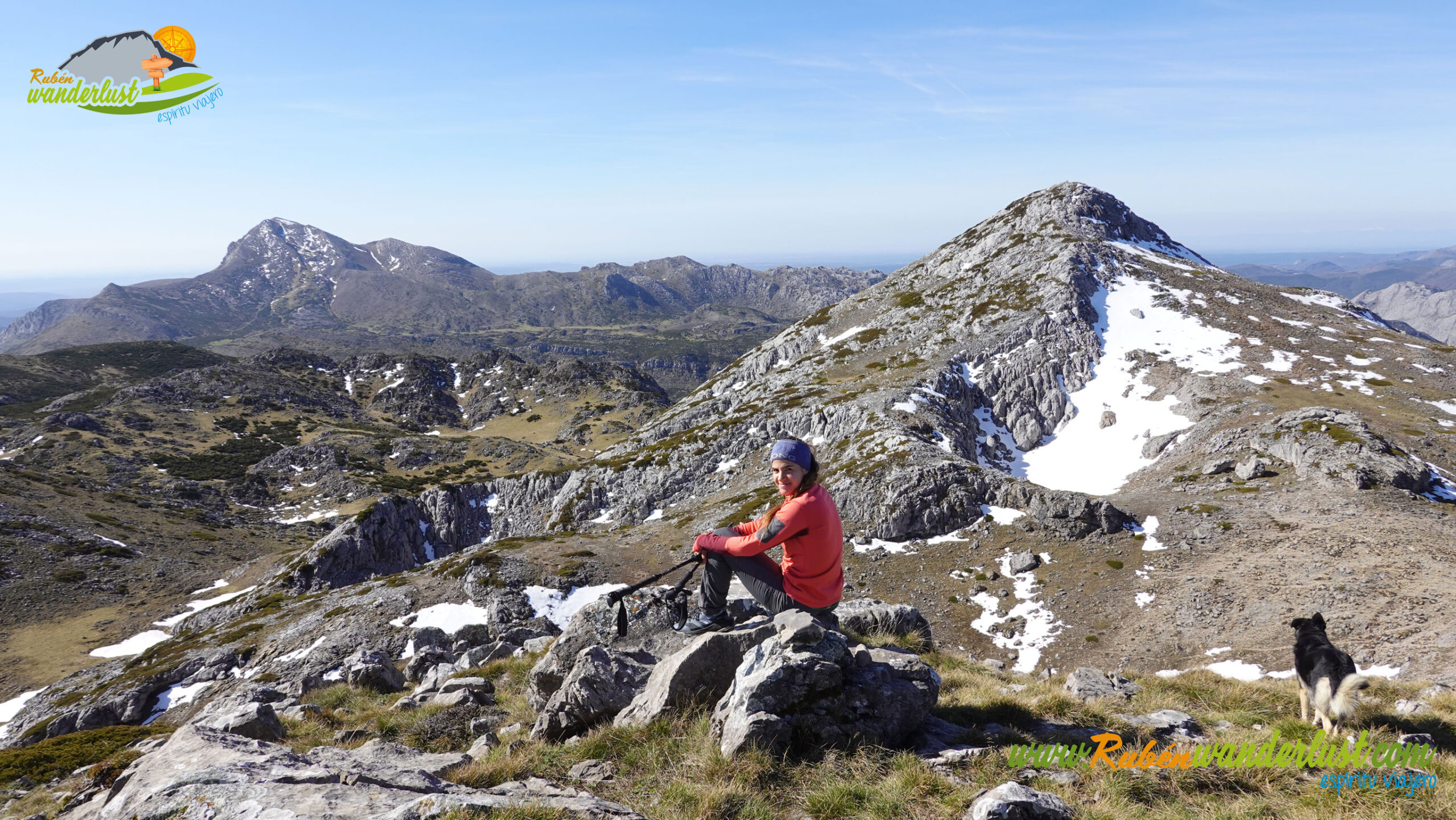 Llegamos a Peña del Mediodía (1.912 m). Otra cumbre espectacular y que nos regala unas vistas excepcionales y una panorámica hacia el Cueto del Calvo brutal. Paramos unos minutos, hacemos unas cuantas fotos y disfrutamos de la cumbre conseguida! Alba posa con el Cueto del Calvo detrás!