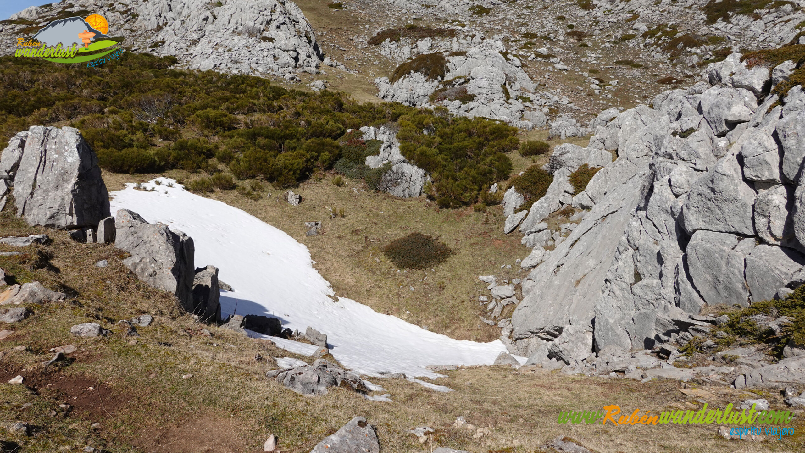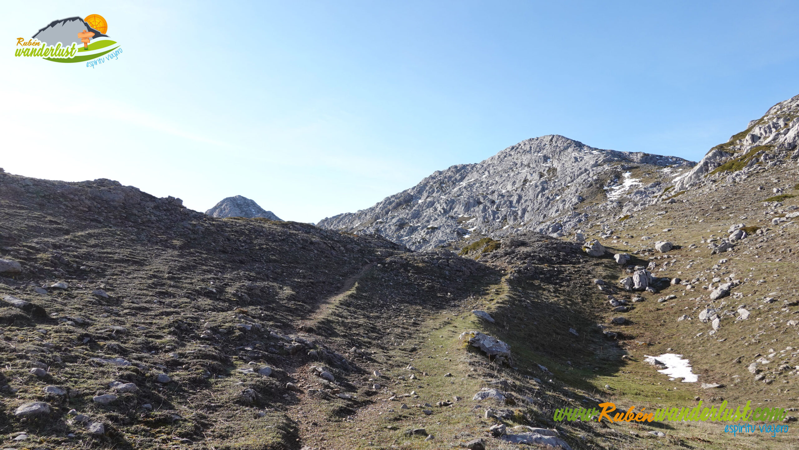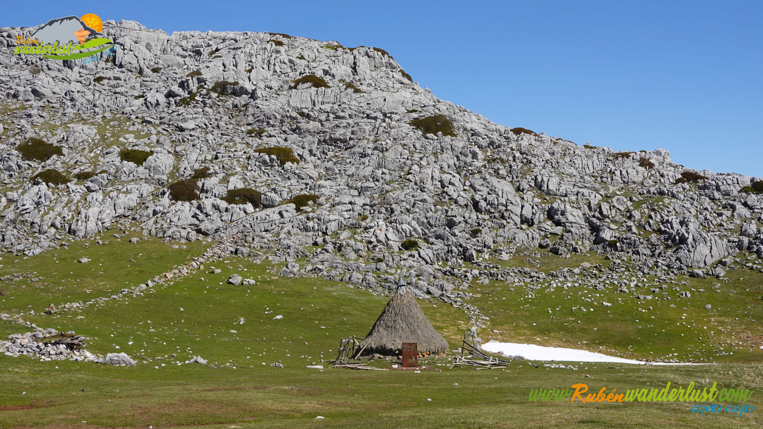 Descendemos del Cueto del Calvo por el mismo camino de subida y, en pocos minutos, llegamos al collado. Aquí giraremos a la derecha, buscando el descenso y el camino que se dirige hacia el chozo que se ubica a los pies del Pico Sancenas. Dejamos atrás tres dolinas y, con rumbo sur, llegamos al sendero que nos guiará de manera correcta. Giramos a la izquierda!
