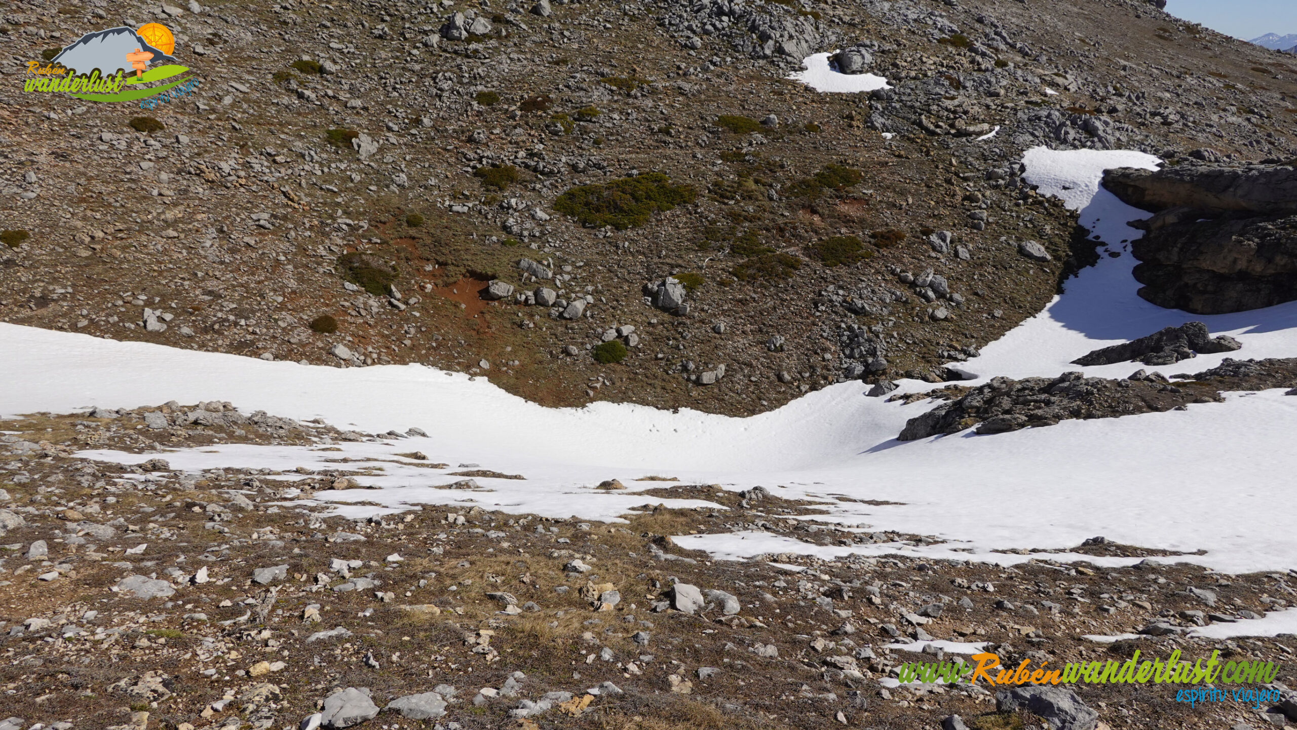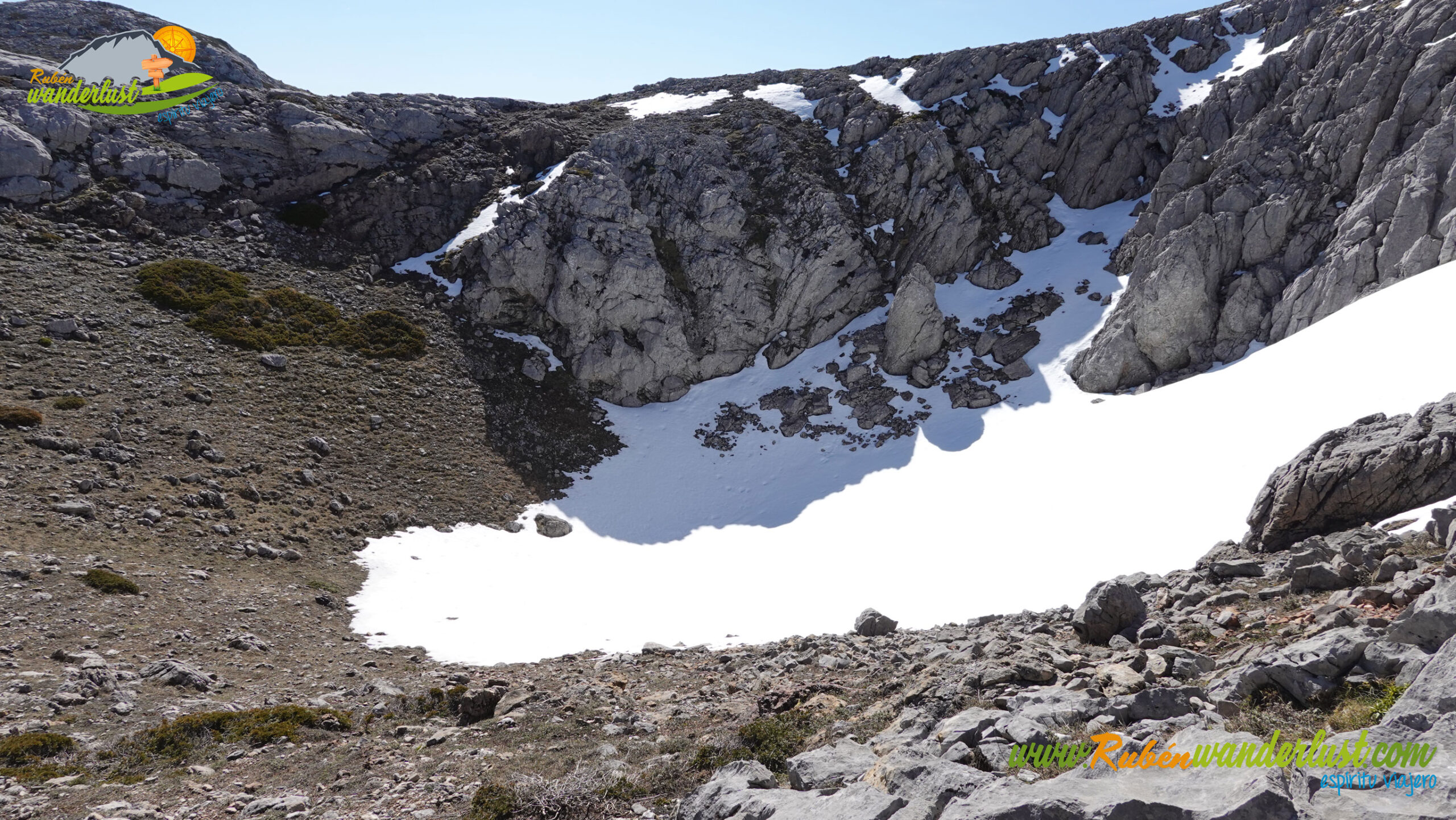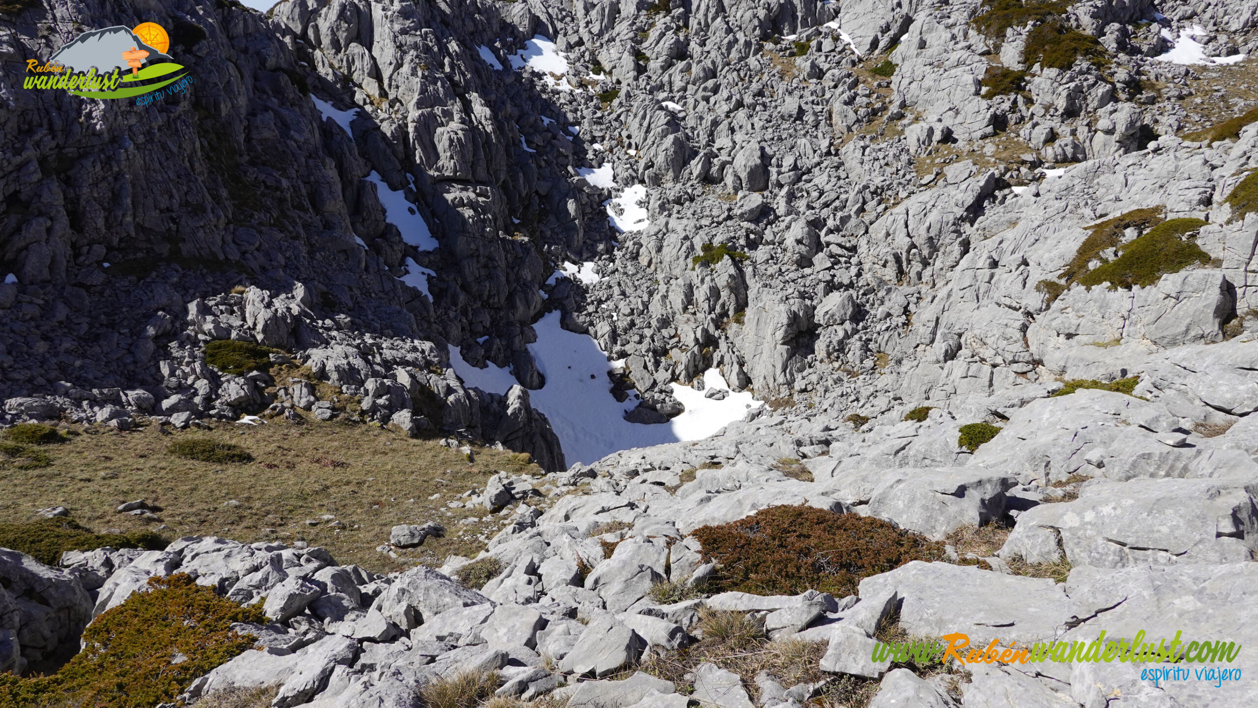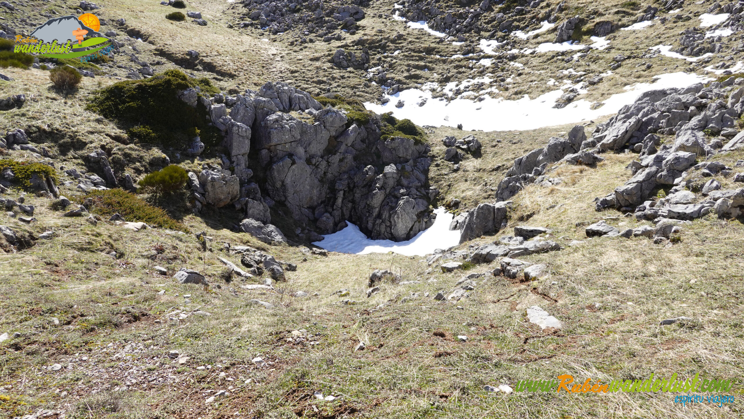 Descendemos del Cueto del Calvo por el mismo camino de subida y, en pocos minutos, llegamos al collado. Aquí giraremos a la derecha, buscando el descenso y el camino que se dirige hacia el chozo que se ubica a los pies del Pico Sancenas. Dejamos atrás tres dolinas y, con rumbo sur, llegamos al sendero que nos guiará de manera correcta. Giramos a la izquierda!