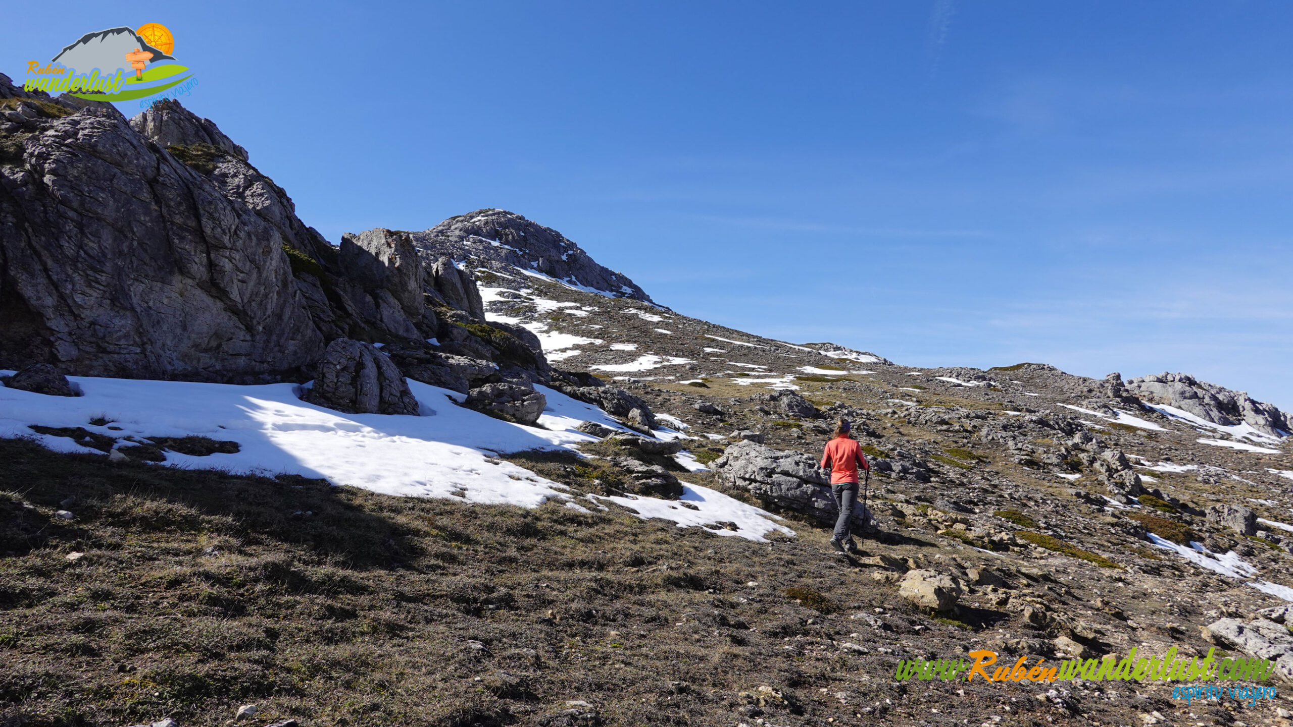 Descendemos con sumo cuidado de Peña Fucheros, siempre por su vía principal de ascenso, y ponemos el rumbo en Peña de las Tablas, tras conversar con Alba y decidir por dónde continuar, que el tiempo aprieta! Llegar a Peña de las Tablas será relativamente sencillo, buscando siempre el mejor paso por la parte más alta de la zona. Entre caliza y praderas, vamos ganando altura progresivamente!