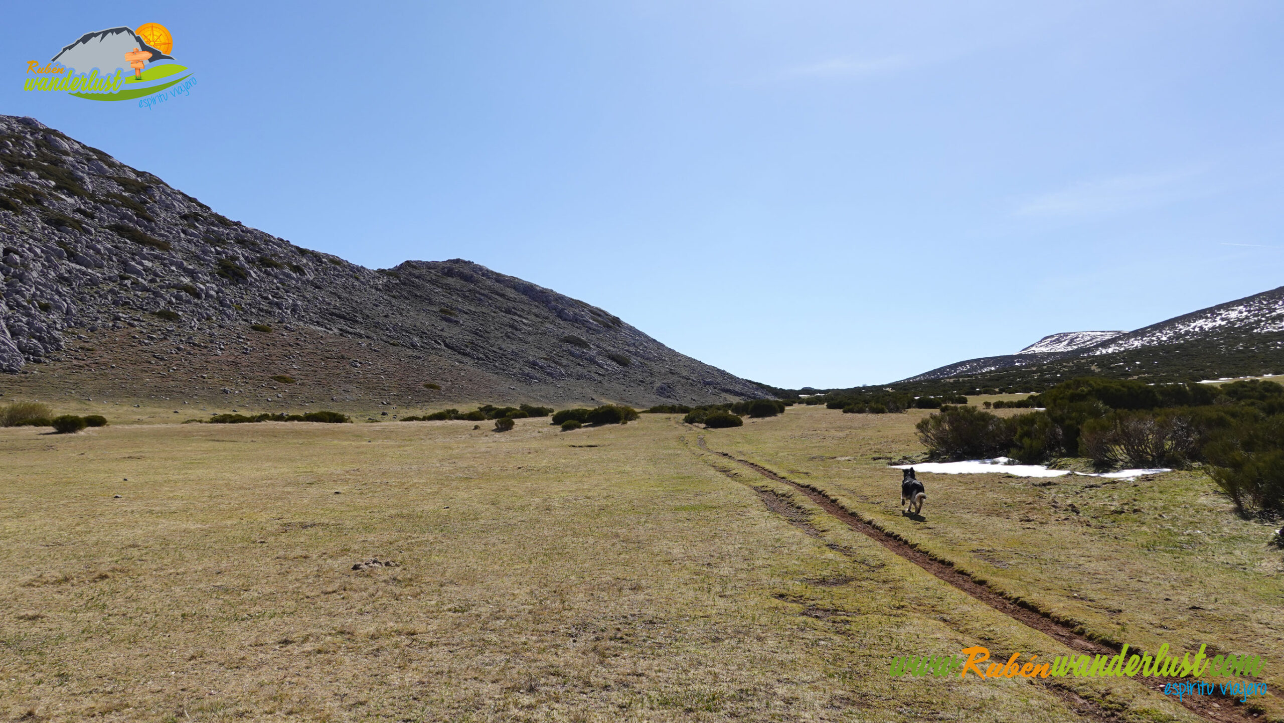 Comenzamos a caminar hacia el sur, hacia Sancenas, territorio que ya divisamos desde aquí. El primer objetivo será dar con la senda que asciende hasta Las Vizarreas, así que tendremos que navegar a lo largo de una pradera (nunca mejor dicho, porque la encontramos completamente encharcada) con cierta tendencia hacia la derecha, con el fin de cruzar el Río Valverdín y llegar a la citada senda. De momento, en suave ascenso y sin complicaciones.