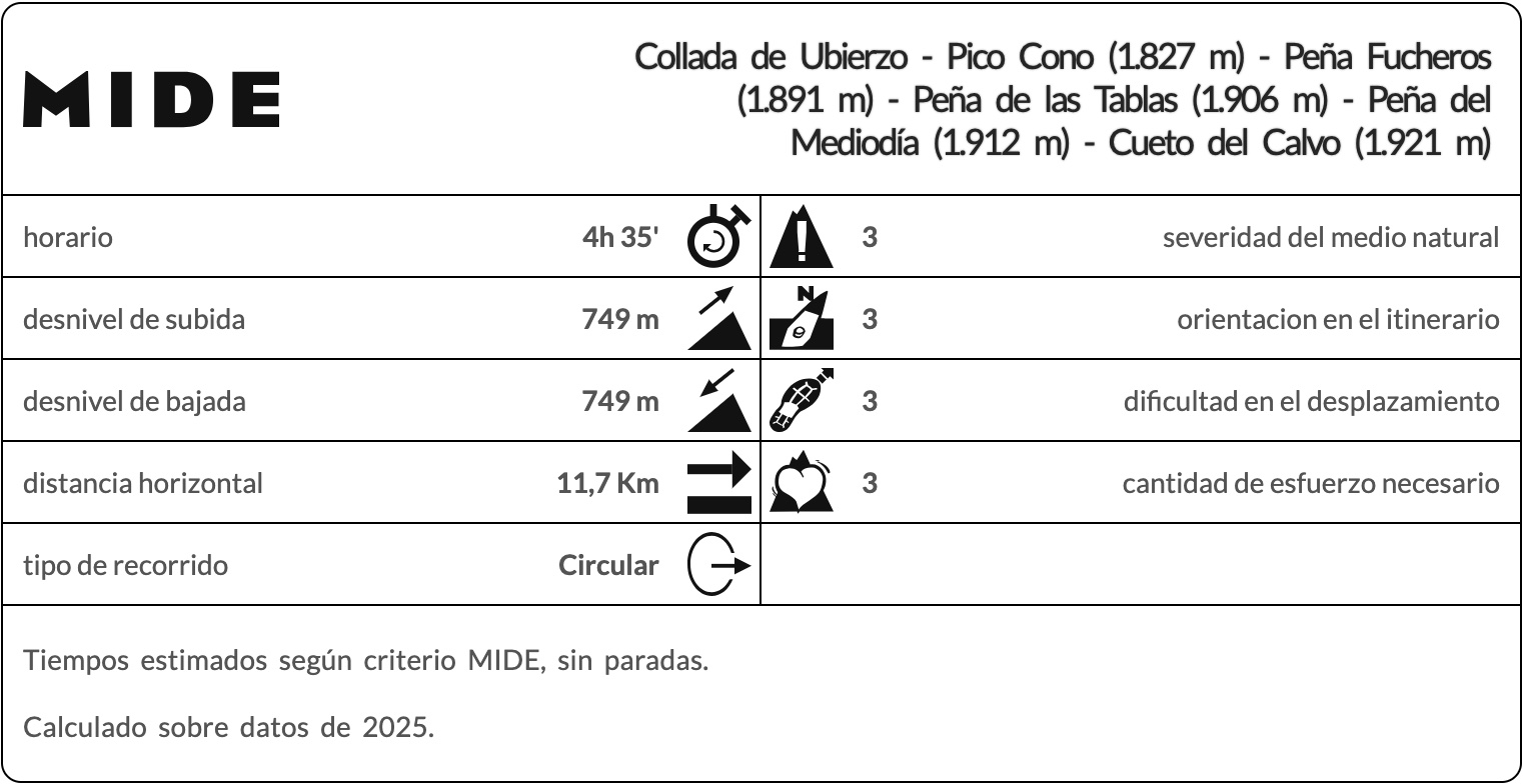 Collada de Ubierzo – Pico Cono (1.827 m) – Peña Fucheros (1.891 m) – Peña de las Tablas (1.906 m) – Peña del Mediodía (1.912 m) – Cueto del Calvo (1.921 m)