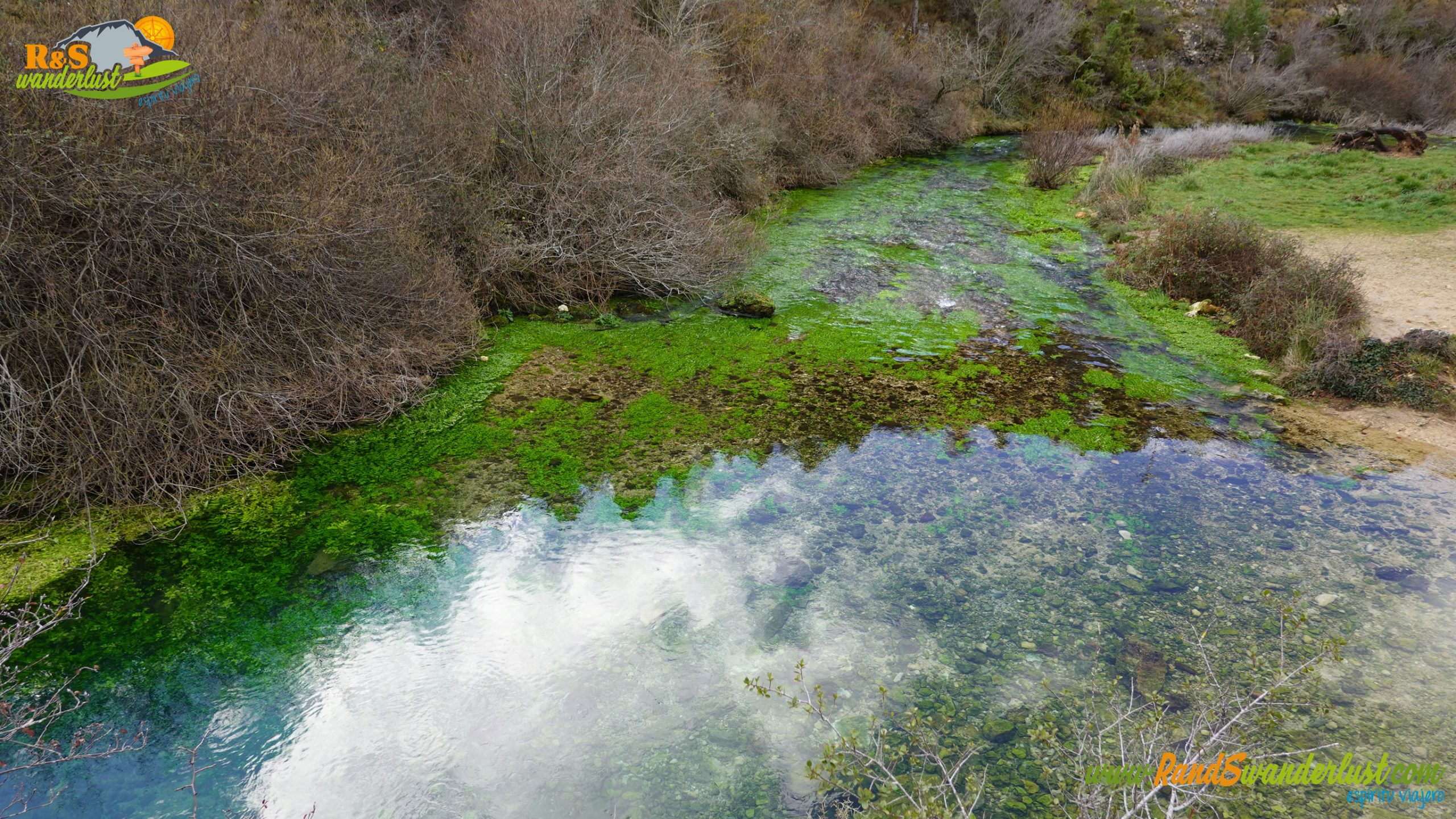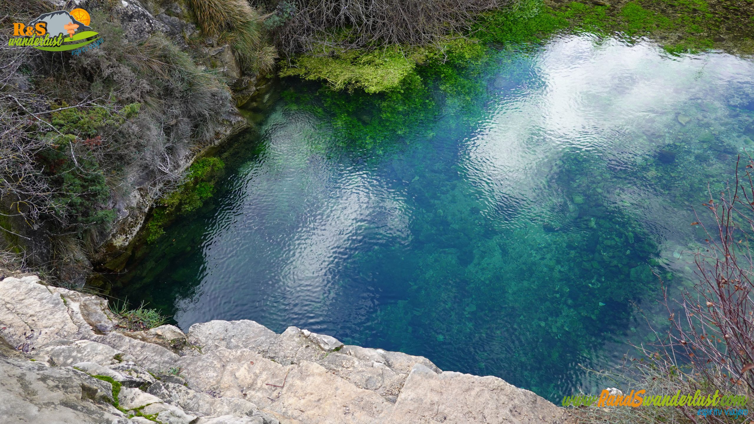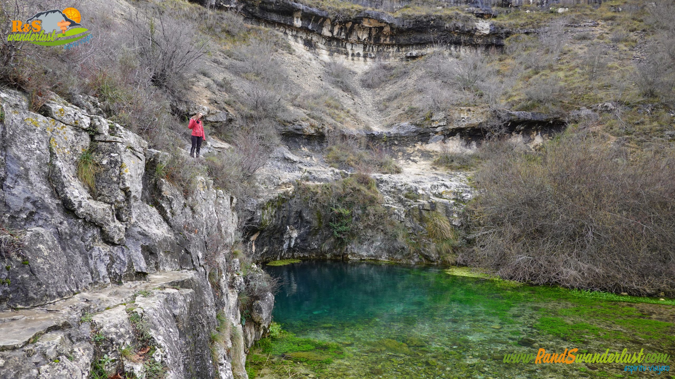 Finalmente, tras completar el sendero, llegamos al Pozo Azul. Visualmente es una pequeña laguna, nacimiento del arroyo que termina en el Río Rudrón. Una laguna de aguas turquesas y enclavada en un entorno precioso. Pero el Pozo Azul esconde más de 13 kilómetros de galerías subacuáticas, convirtiéndose en la cueva subterránea más larga del mundo! Sin lugar a dudas, un auténtico monumento natural y digno de conocer! Disfrutamos del Pozo Azul desde su orilla y desde la parte alta, donde obtenemos una bonita imagen del inicio de la cueva! Cuidado por aquí, que un resbalón nos pega un buen susto!