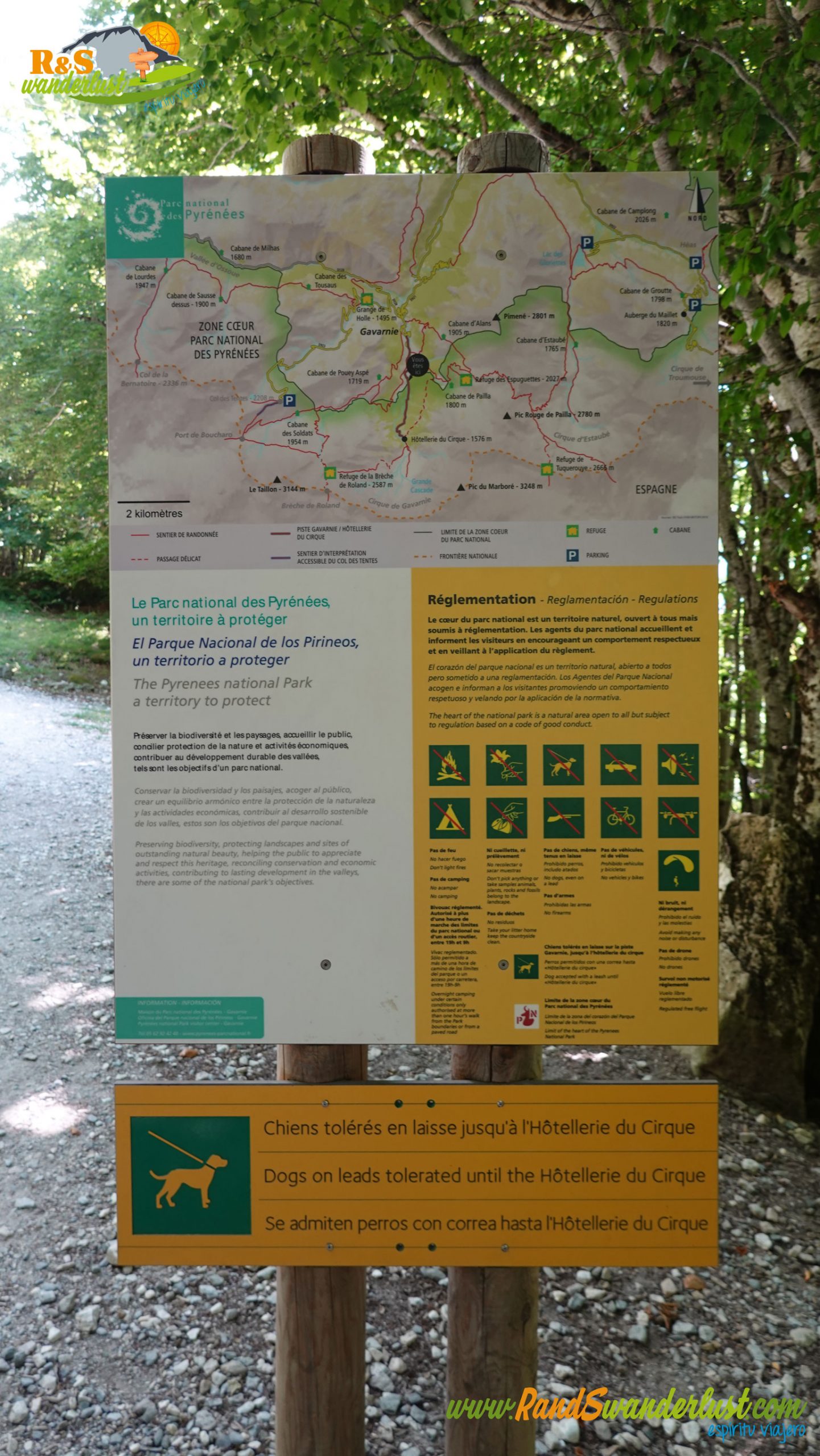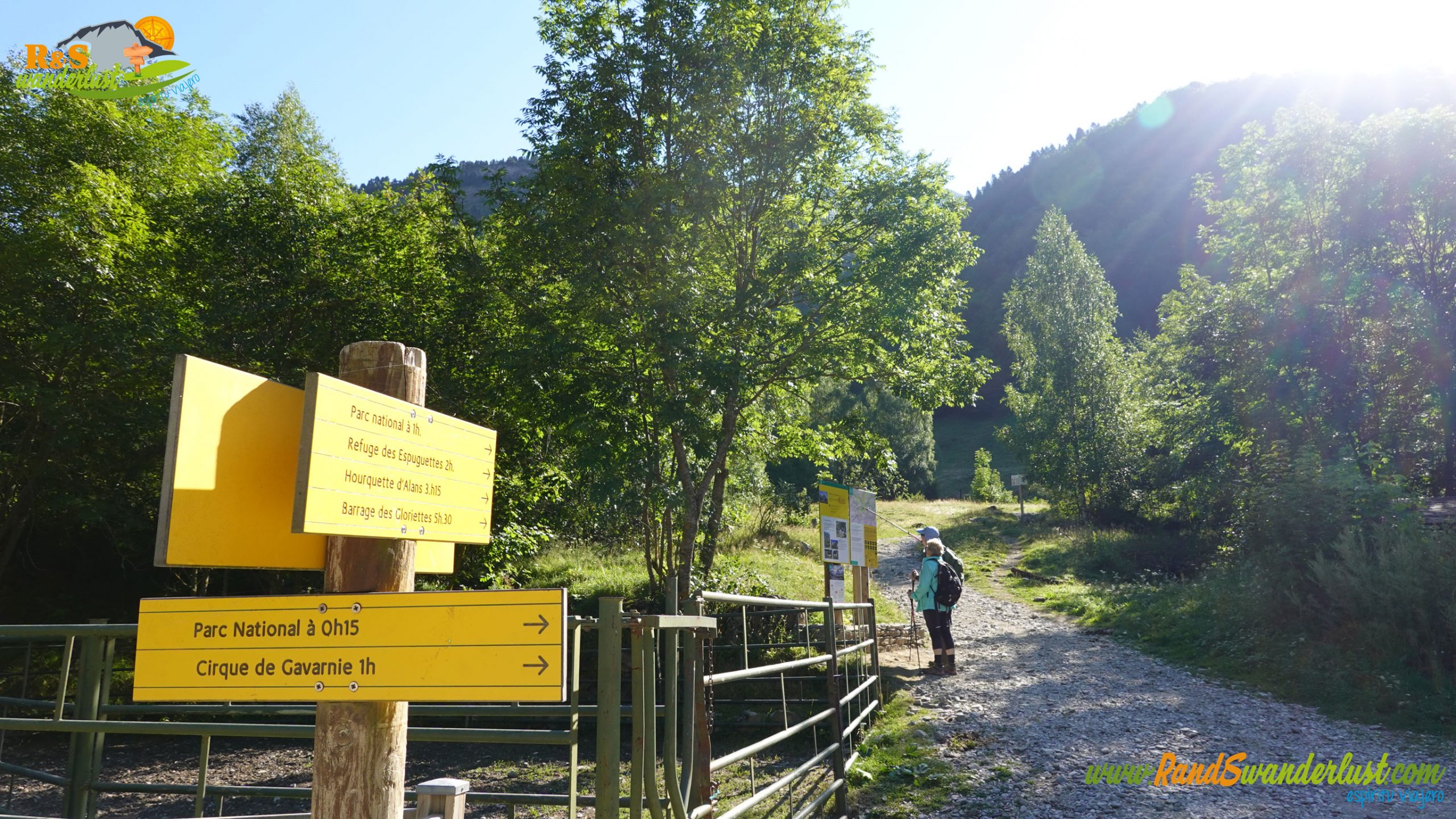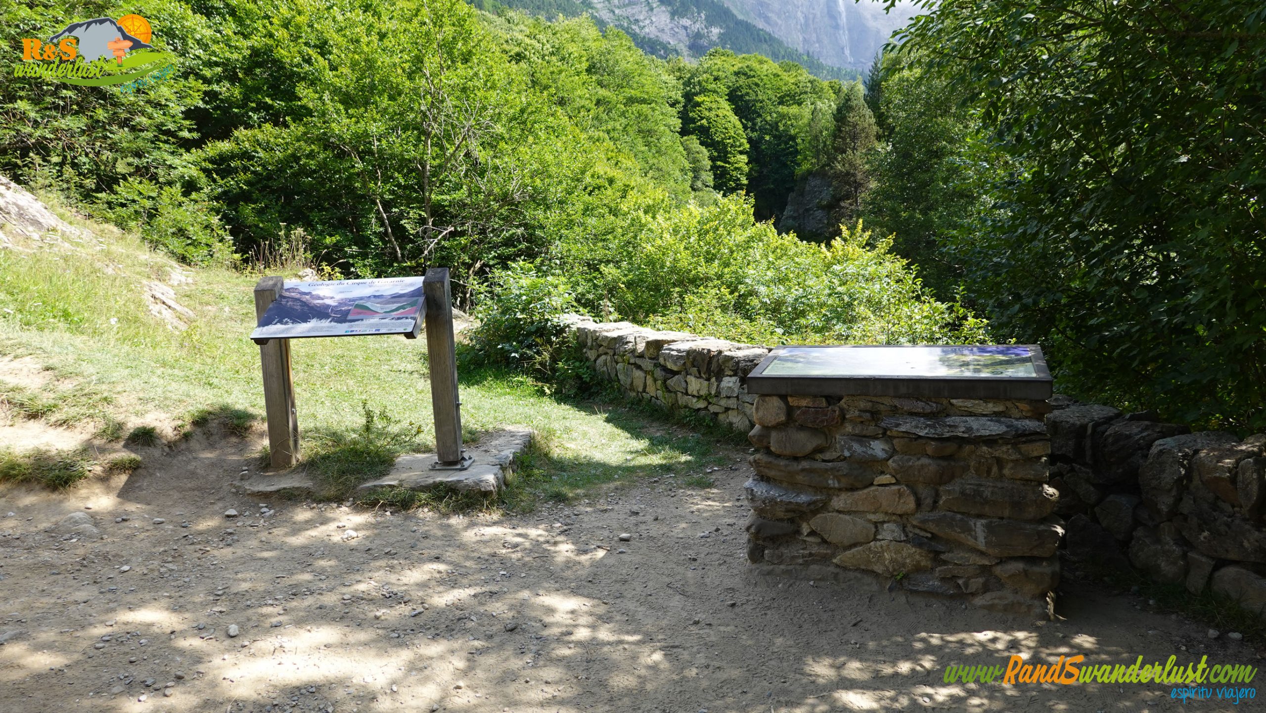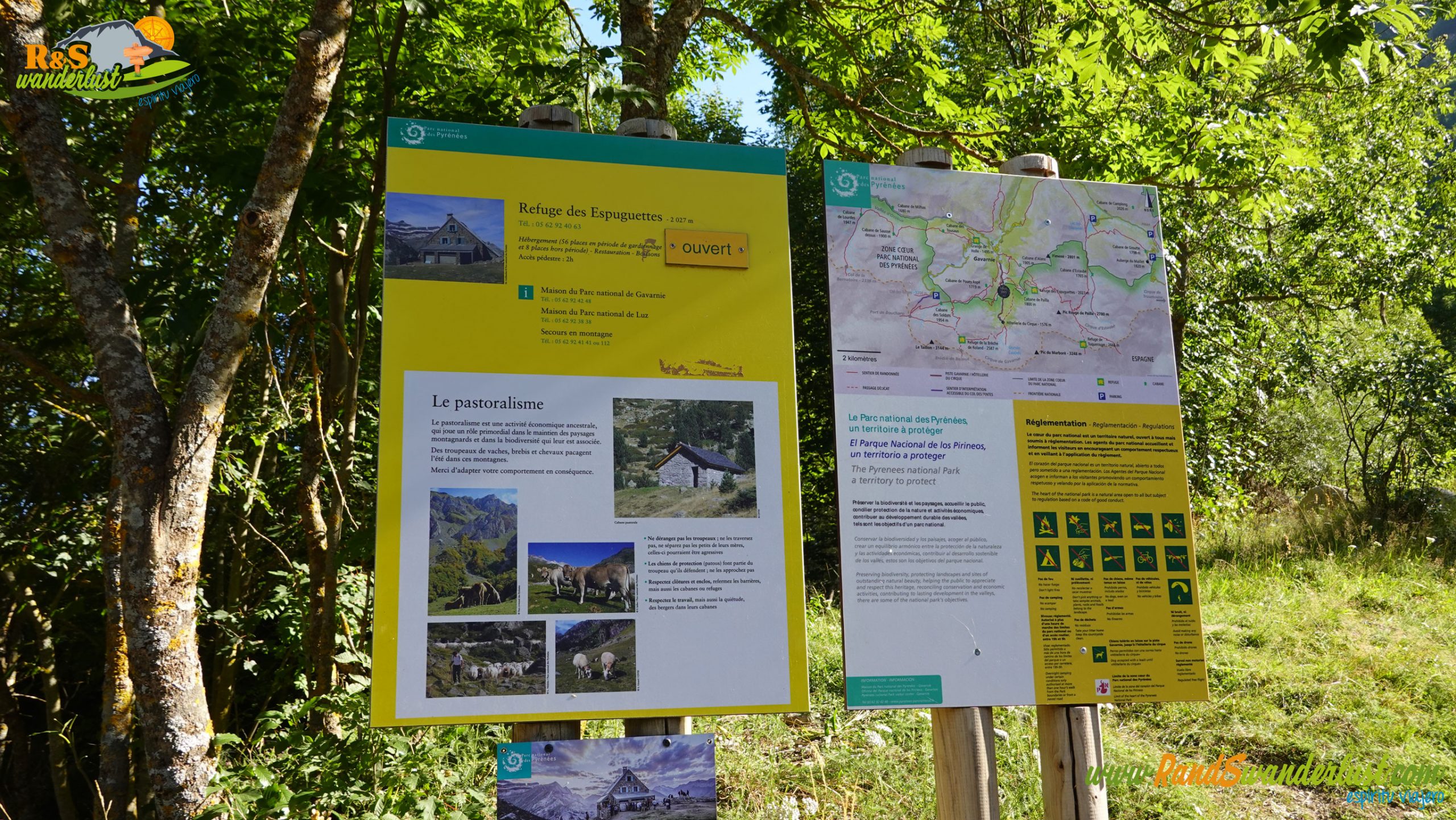 Salimos de Gavarnie y cruzamos un puente sobre el Gave de Gavarnie, río que da vida al valle. Ya llevamos algo más de un kilómetro y medio. Llegamos a la altura del desvío que nos permitirá iniciar el tramo circular de la ruta. Por el valle regresaremos del Cirque de Gavarnie, así que giramos hacia la izquierda para dirigirnos hacia el Refuge des Espuguettes. Aquí mismo encontramos varios carteles informativos interesantes.