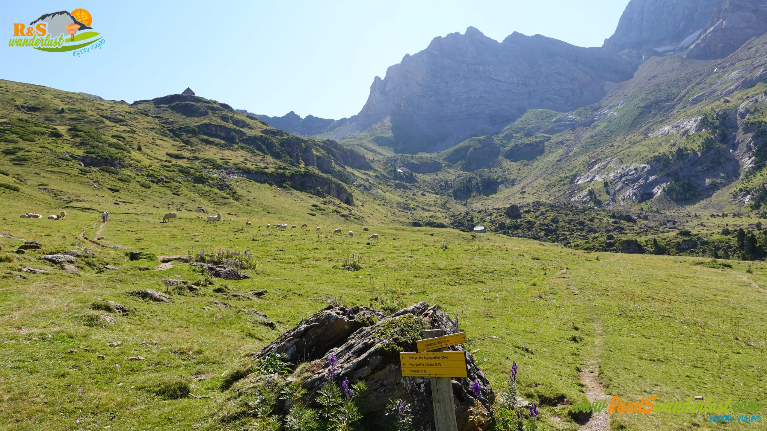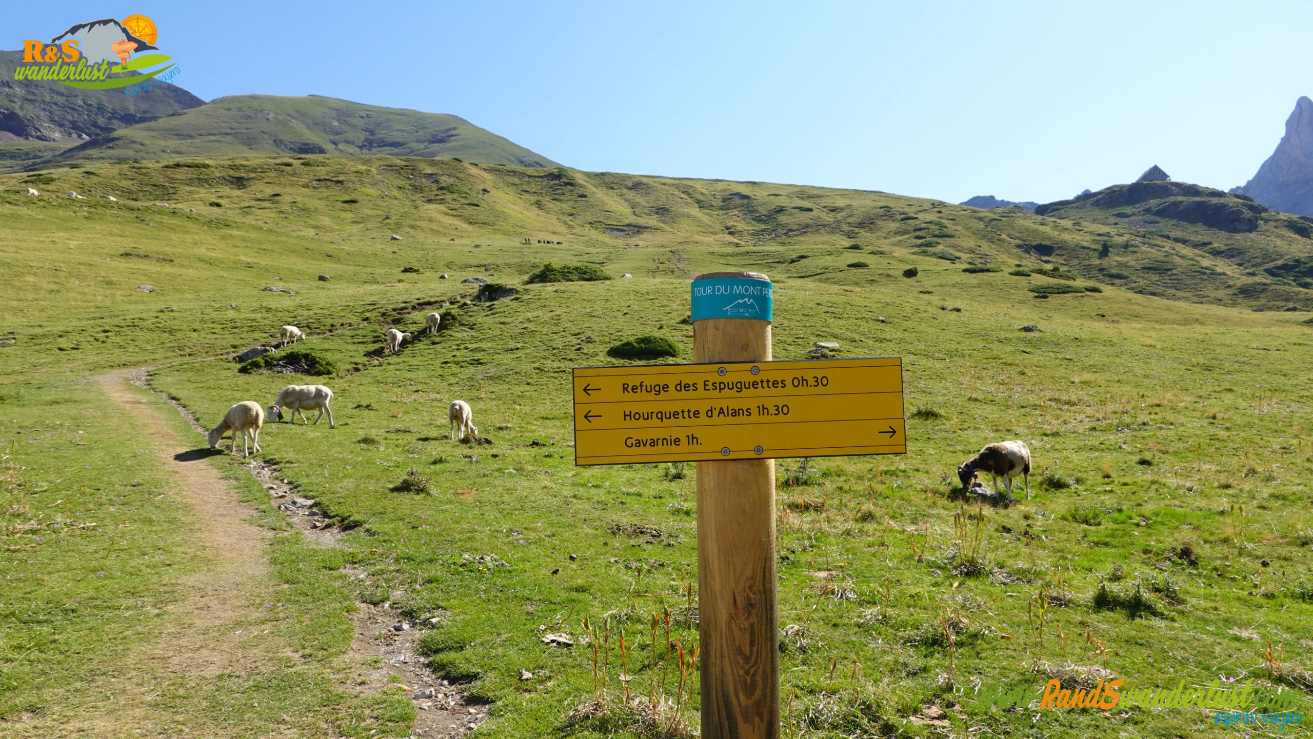 Tras un kilómetro y medio de subida, llegamos al desvío que nos indicará los diferentes rumbos a seguir. La idea inicial sería continuar a esta altura hacia el Cirque de Gavarnie. Sin embargo, tras barajar las distintas opciones, Sabri no duda en proponer llegar al Refuge des Espuguettes. Se encuentra desviado de la ruta planificada, pero seguro que merece la pena llegar hasta allí. Abandonamos la senda que nos llevará al Cirque de Gavarnie y giramos hacia la izquierda para visitar el refugio indicado!