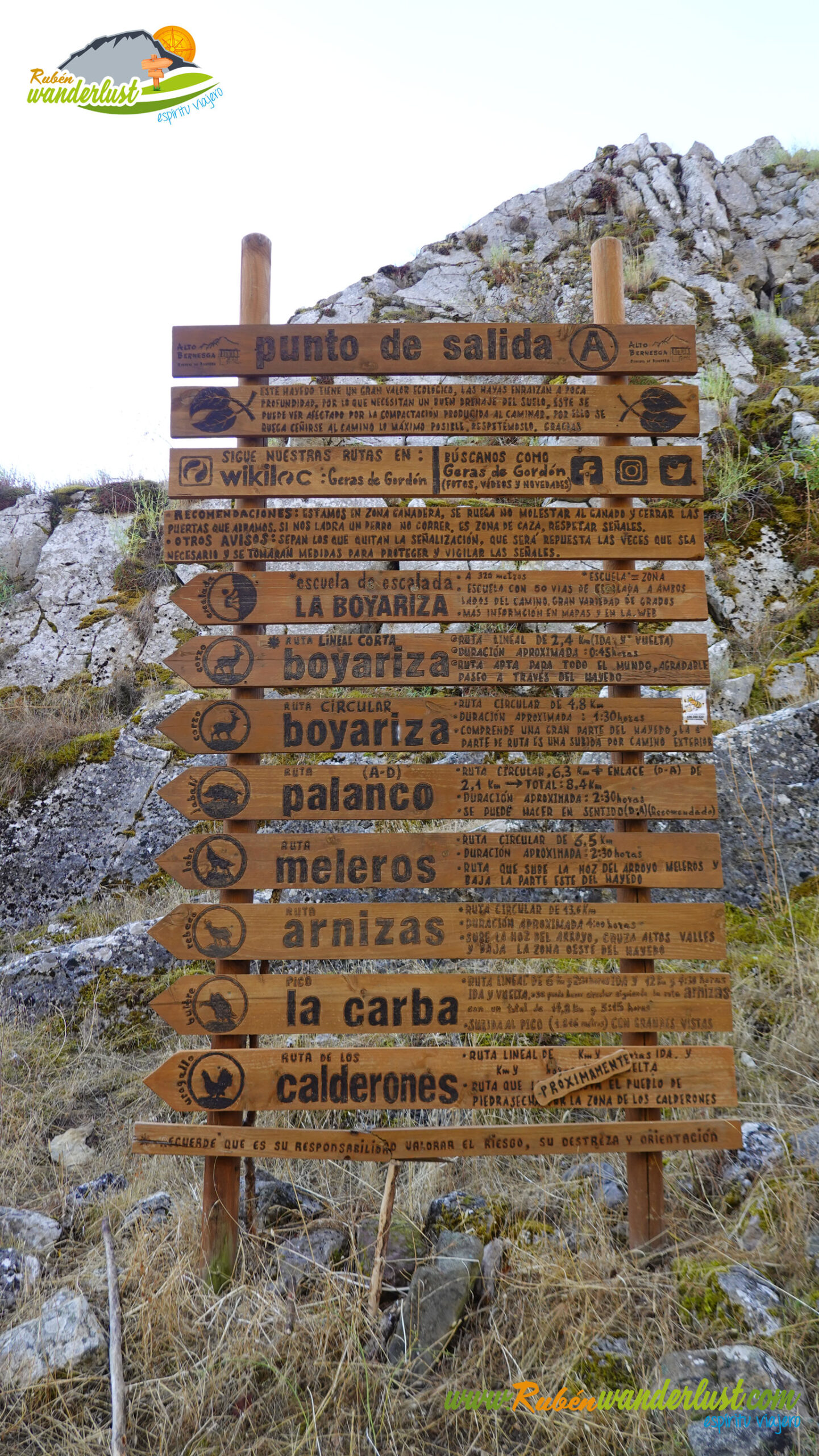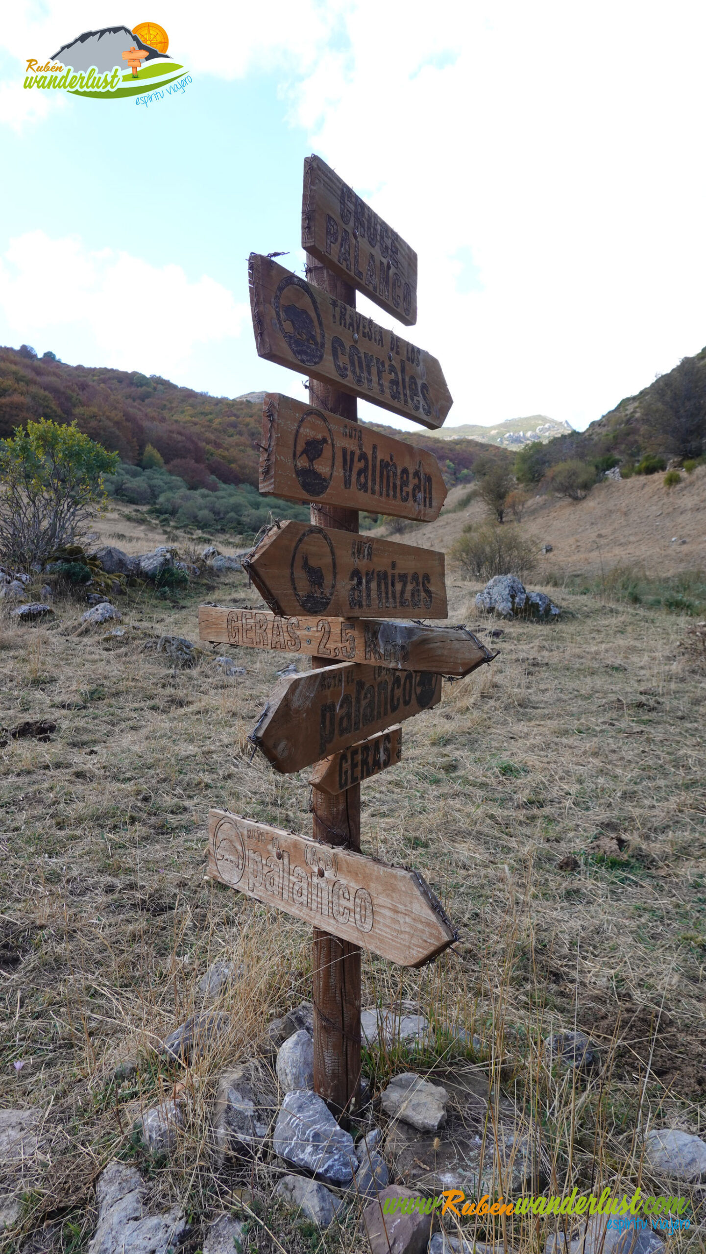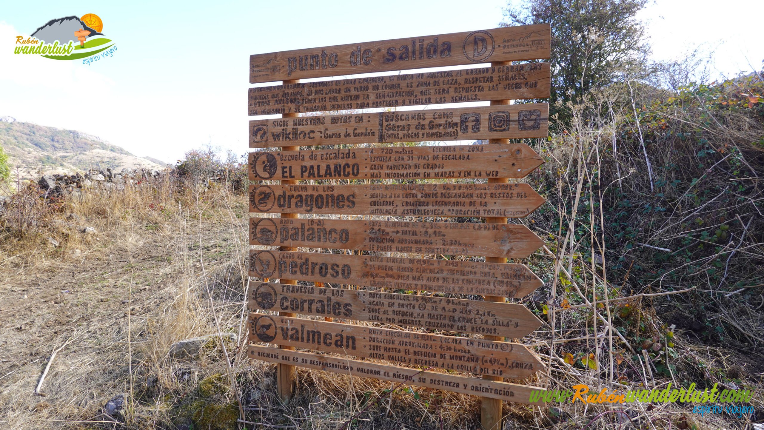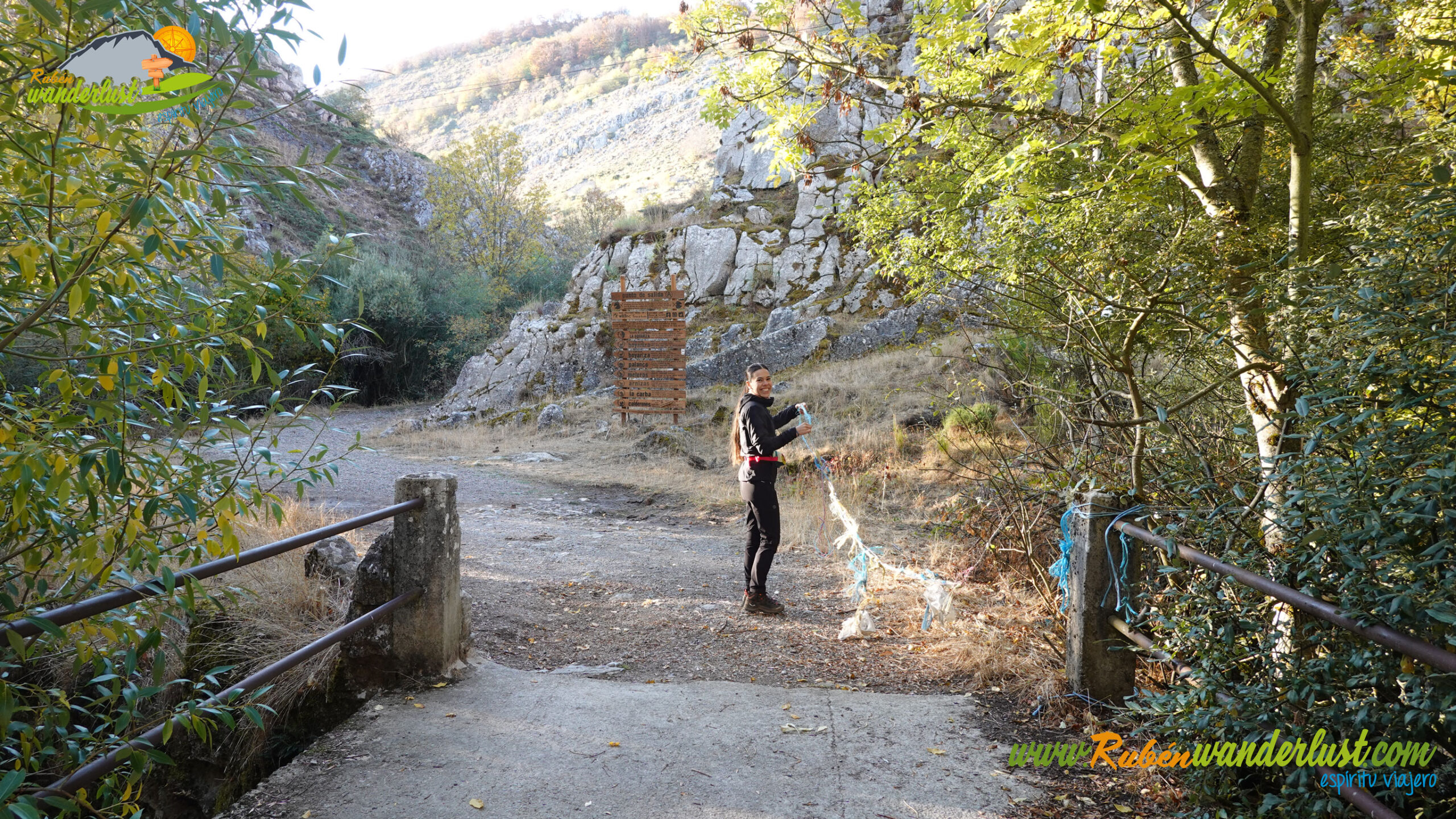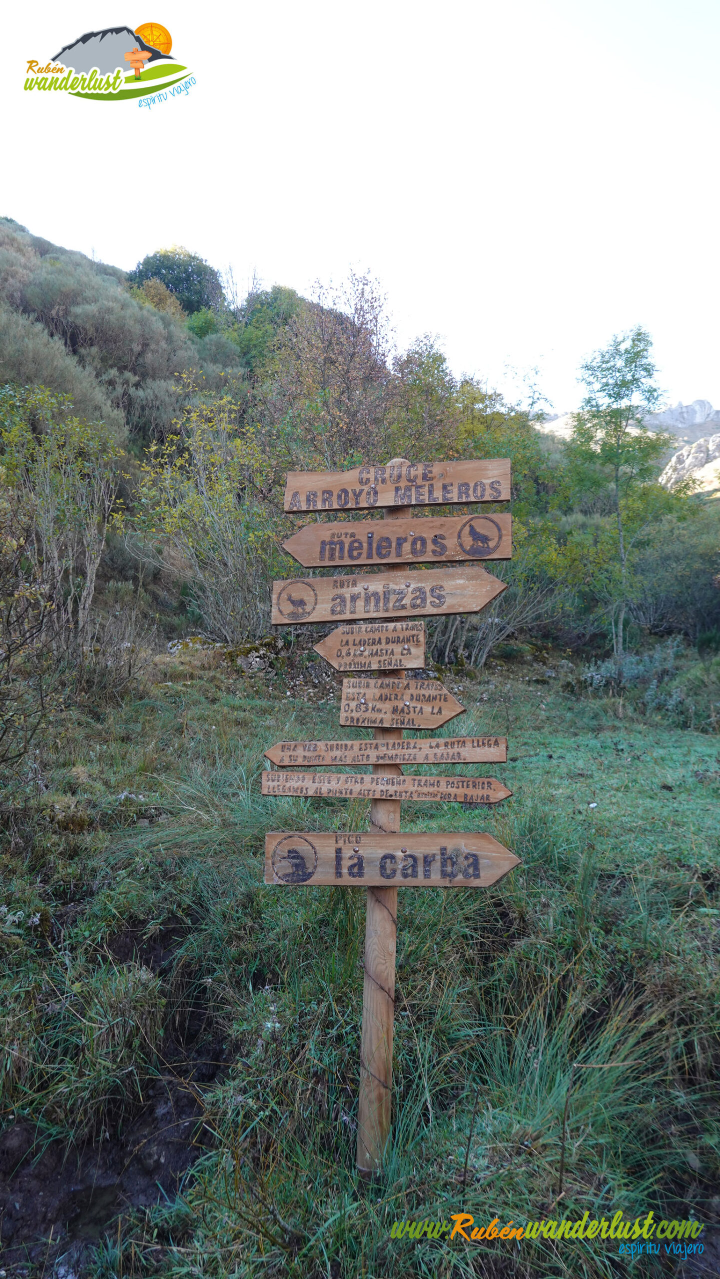 Comenzamos el recorrido desandando la carretera que nos trajo hasta Geras de Gordón, dejando un par de aparcamientos a nuestra izquierda y llegando a la altura del Puente Arnizas, donde nos desviamos a la derecha para cruzarlo y comenzar el verdadero trazado. Aquí mismo encontramos un cartel informativo de madera sobre las distintas opciones de ruta que hay, que son muchas y variadas!