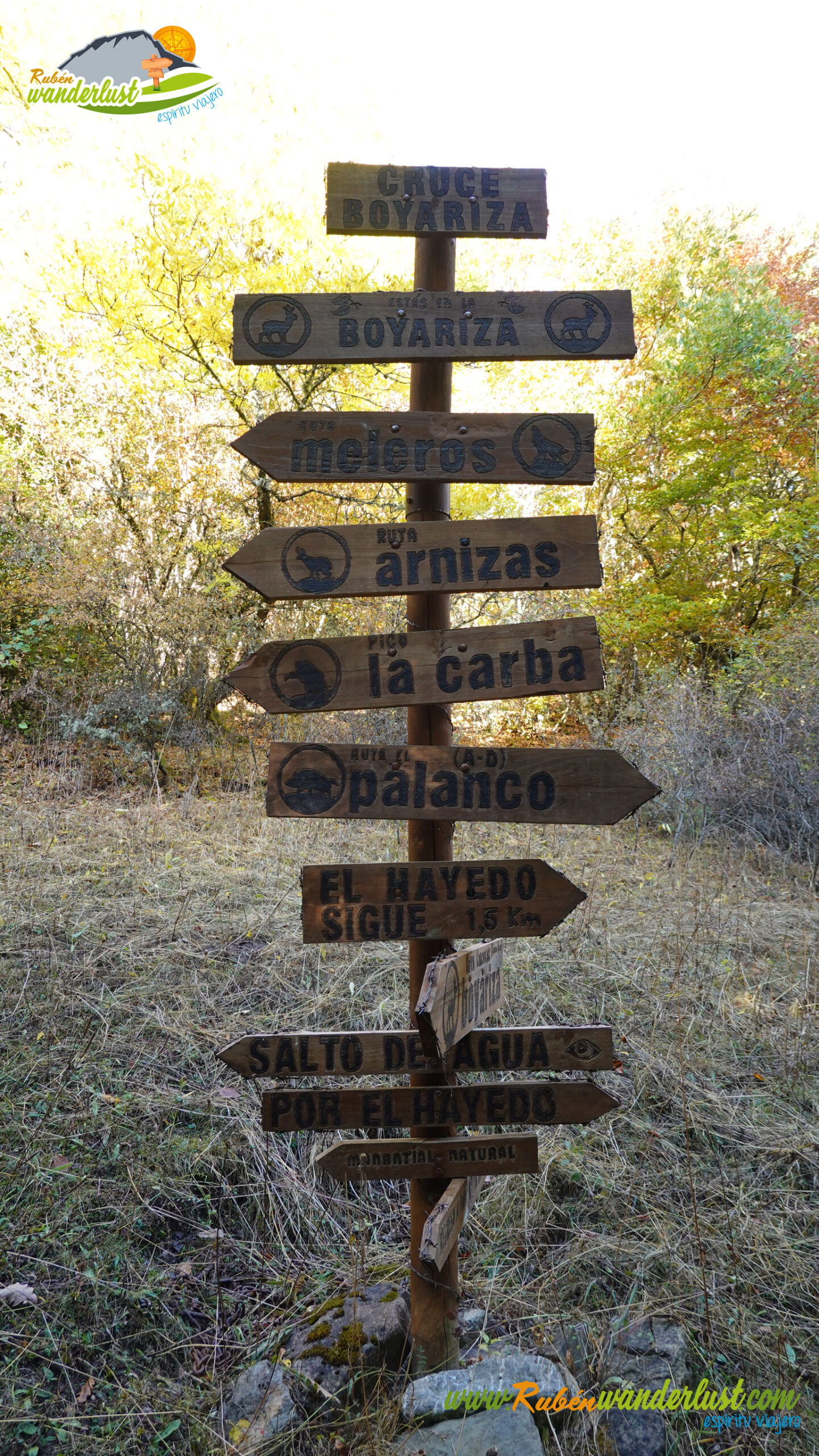 Tras el avellanar, llegamos a la intersección en la que podemos iniciar un pequeño tramo circular alrededor del Hayedo de la Boyariza, una de las rutas más visitadas del lugar. En nuestro caso, nos dirigimos hacia la Foz de Meleros, así que tomamos el camino de la izquierda.