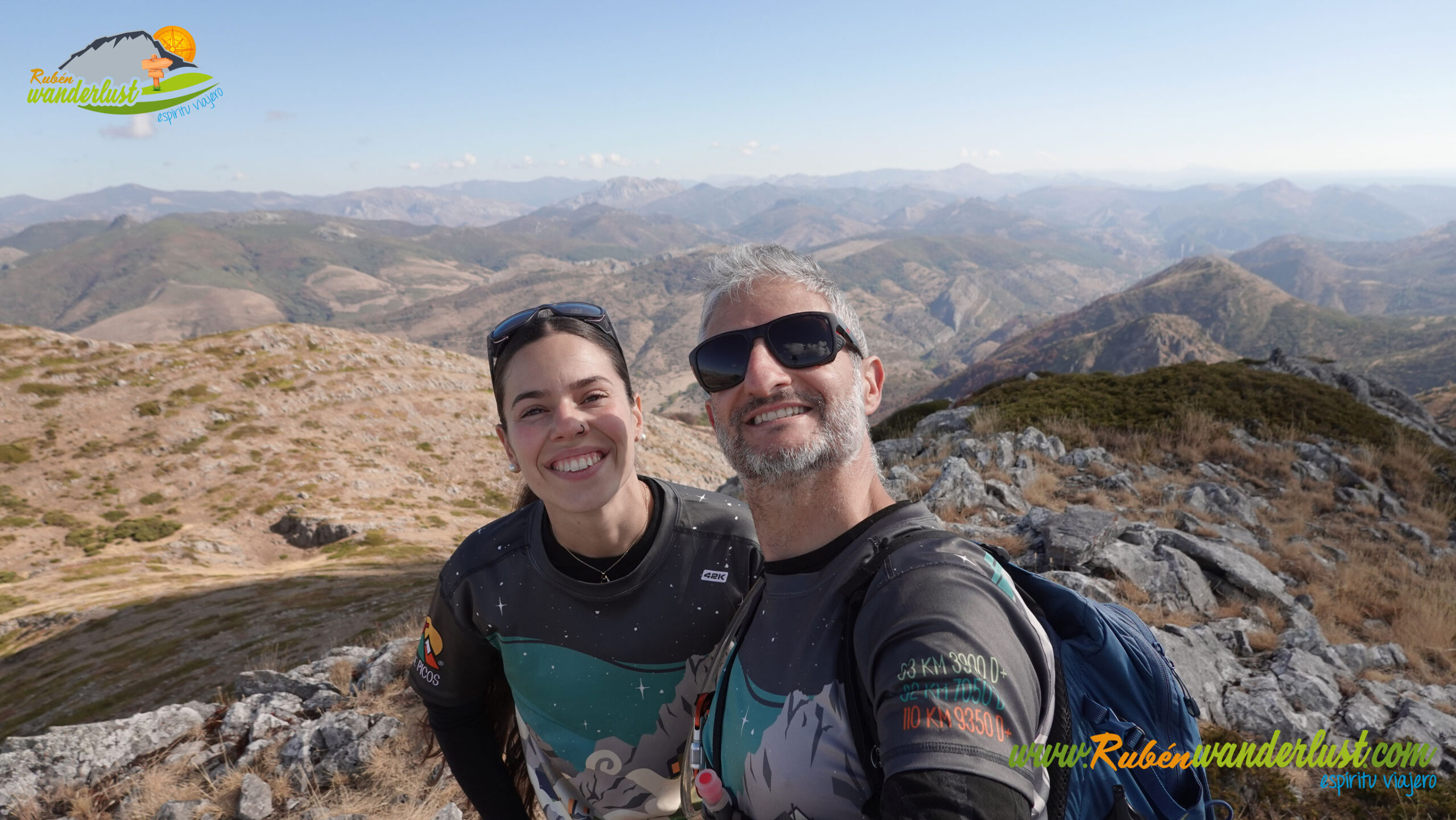 Llegamos a la cima del Pico La Silla (1.852 m). Las vistas son sublimes y nos brinda una panorámica excepcional! Cumbres emblemáticas de nuestro alrededor, destacando el Cerro Pedroso, el Pico de Lamazo, el Pico de Vega Cercada, el cercano Pico La Carba, el Pico Feliciano, el Alto de la Viesca o el Pico Amargones. También divisamos el Pico Fontún, el Pico Brañacaballo, el Pico Polvoreda, el Macizo de Ubiña, las montañas del Valle de Arbas, etc. Unas vistas sublimes y que disfrutamos durante un buen rato!