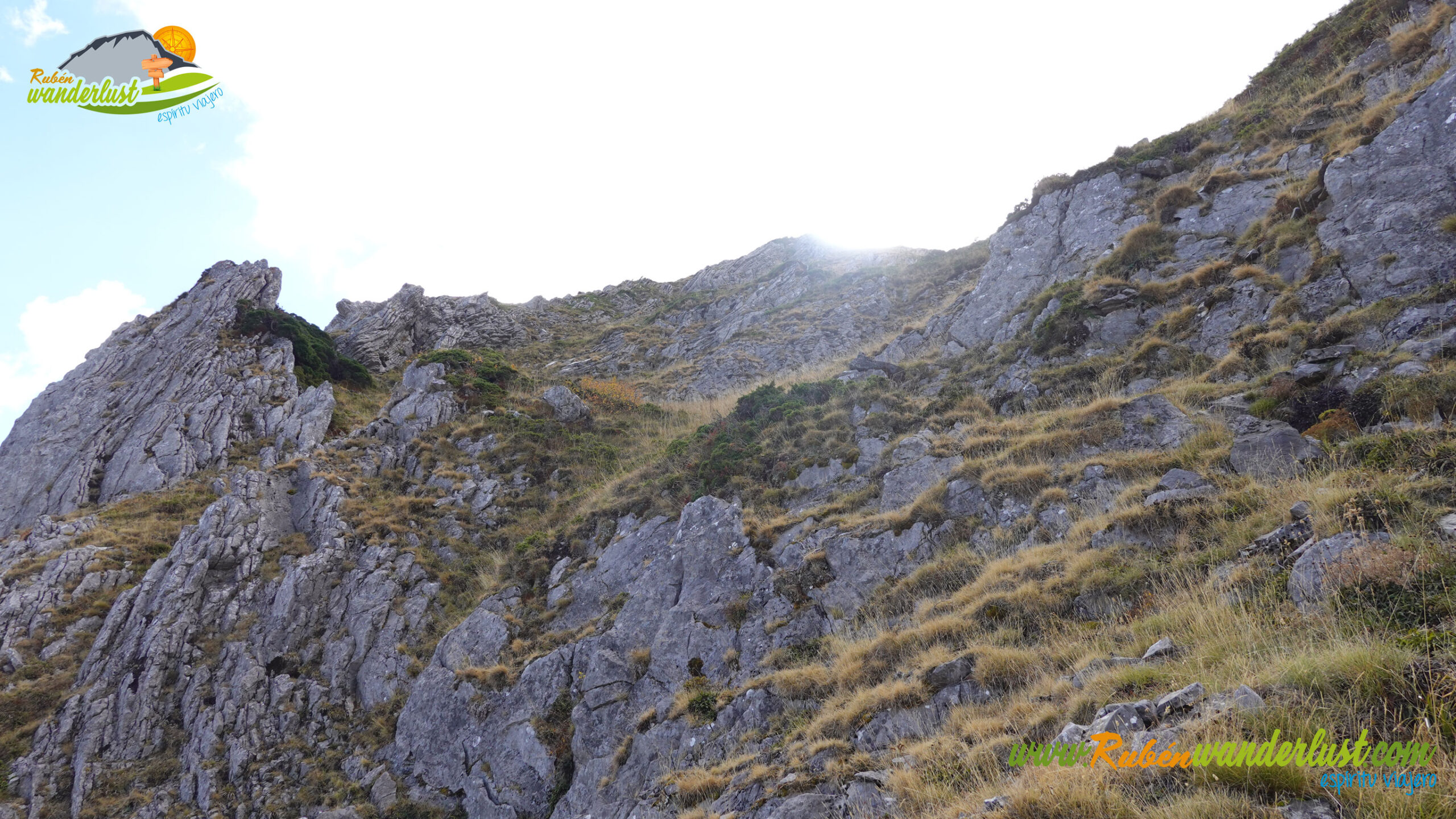 Descender del Pico La Carba hacia el Hayedo de la Boyariza no es tarea sencilla, aunque hay que elegir bien la canal por la que bajaremos. Cabe destacar que existen multitud de opciones que descienden tras completar la arista cimera hacia el este. Sin embargo, a media arista, existe una canal herbosa que nos permitirá bajar hacia el bosque de manera cómoda. Un pequeño sendero y varios hitos nos permitirán perder altura sin problemas. El camino serpentea y está pindio, pero creemos que es la mejor opción para bajar hacia el Hayedo de la Boyariza!