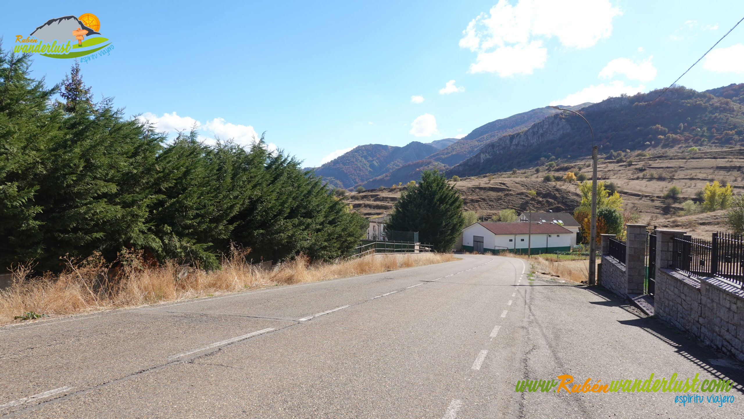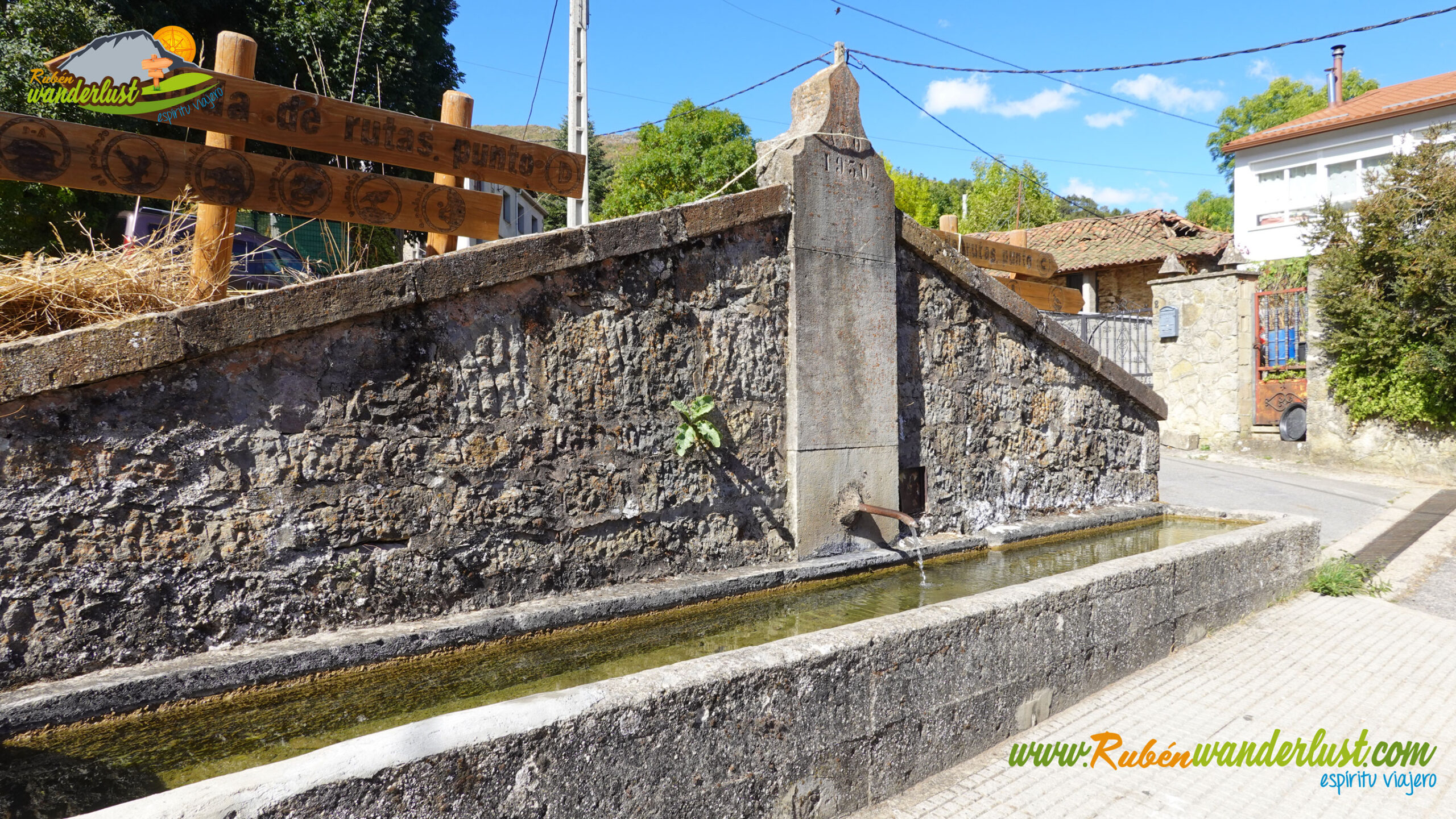 Salimos de la Foz de Palanco y vamos completando la ruta hacia Geras de Gordón, ya a la vista desde aquí. Nos queda caminar por una senda sin complicaciones, dejando atrás un cartel informativo de madera, similar al que ya vimos al inicio de la ruta. Ya en el pueblo, vemos varias fuentes y nos desviamos a la derecha a la altura de la carretera, con el fin de llegar al centro del pueblo.