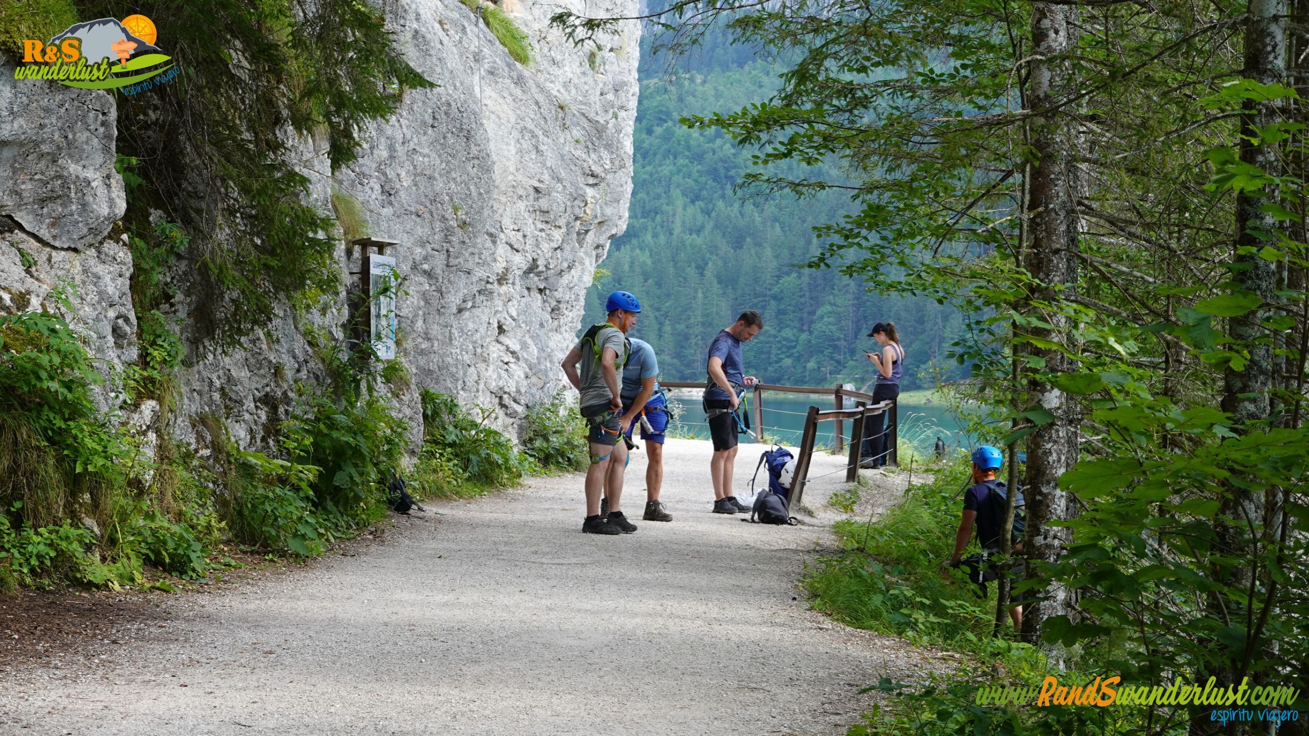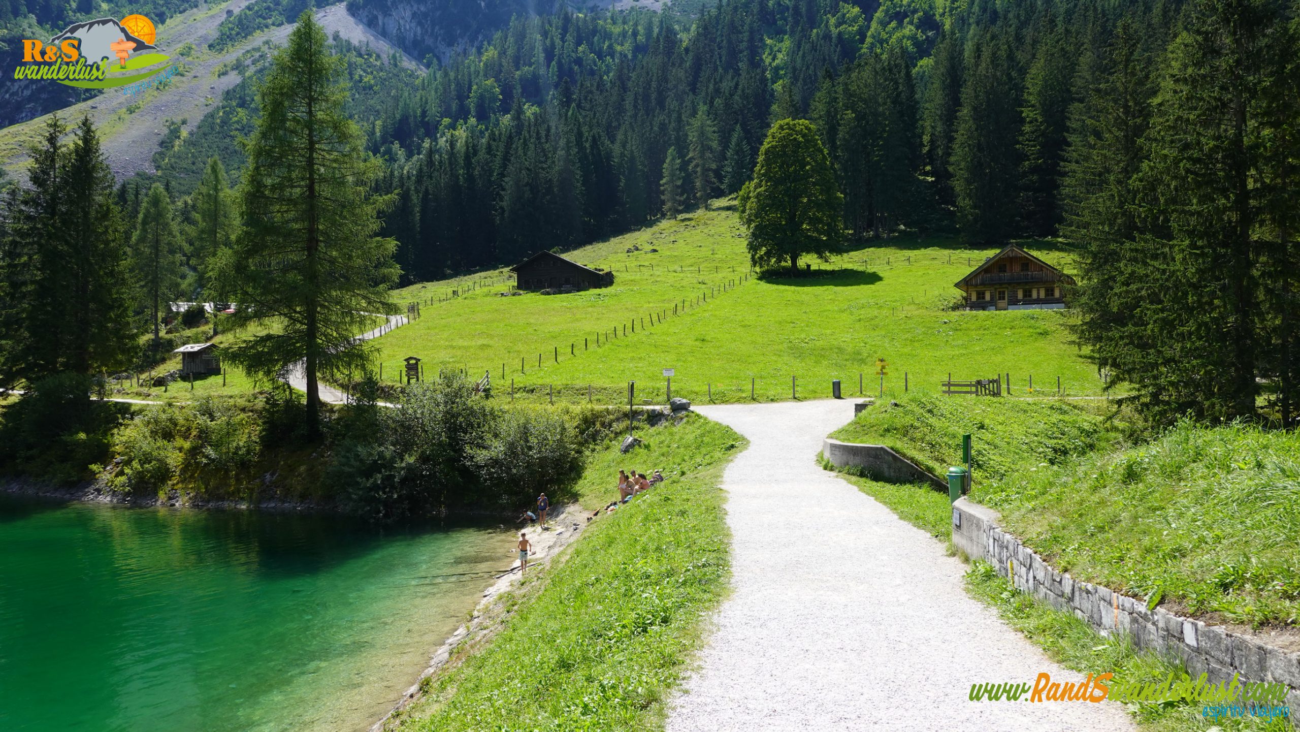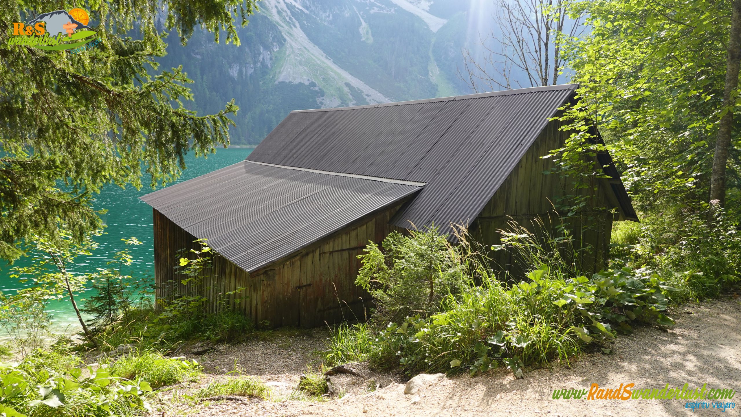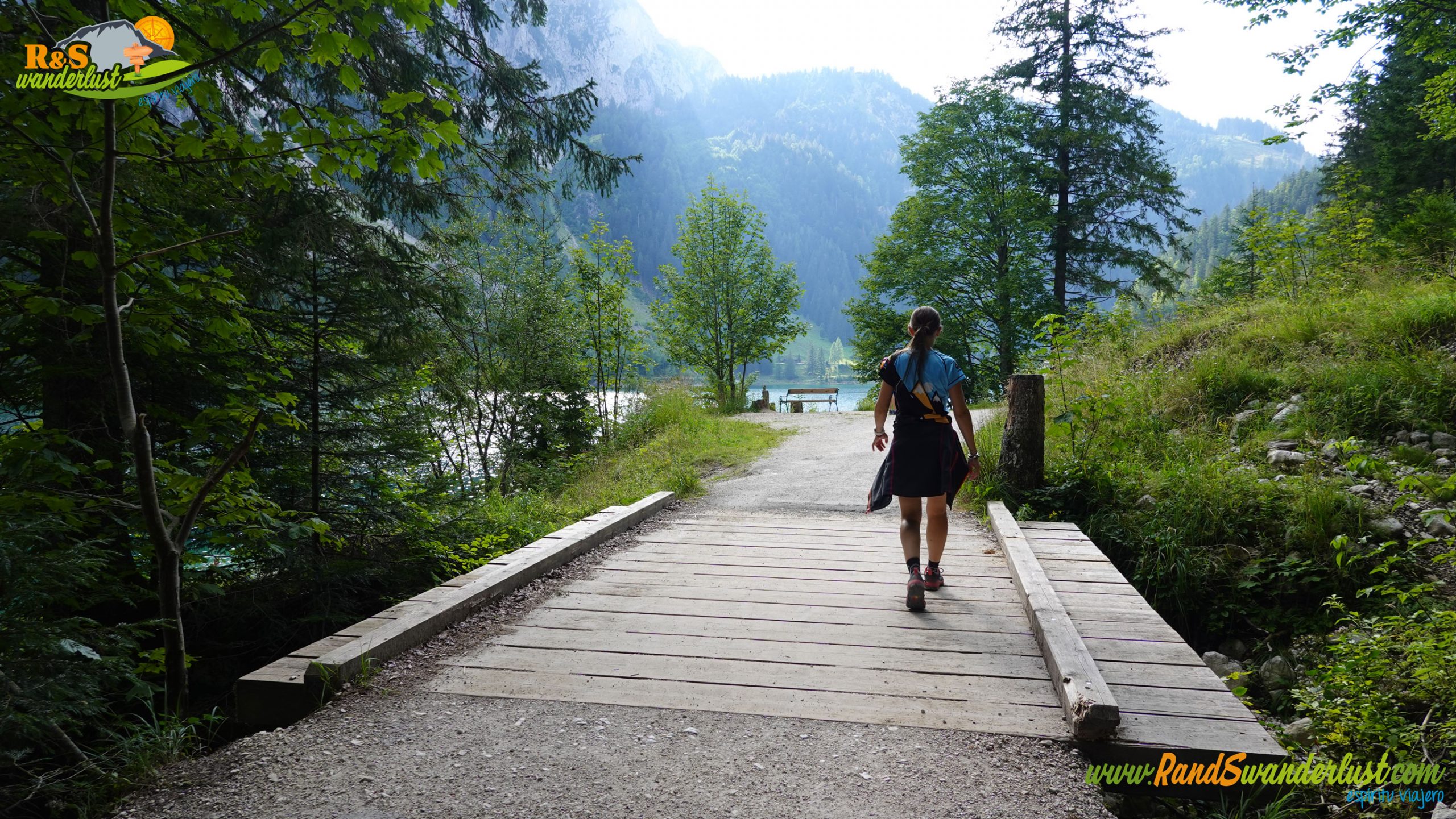 Nos queda completar la última parte alrededor de Gosausee. Dejamos atrás Laserer Alpin Klettersteig, una de las vías ferratas de la zona, un puente, una cabaña y un desvío. Buenos momentos a la altura del puente, viendo cómo saltan unos cuantos intrépidos jóvenes!