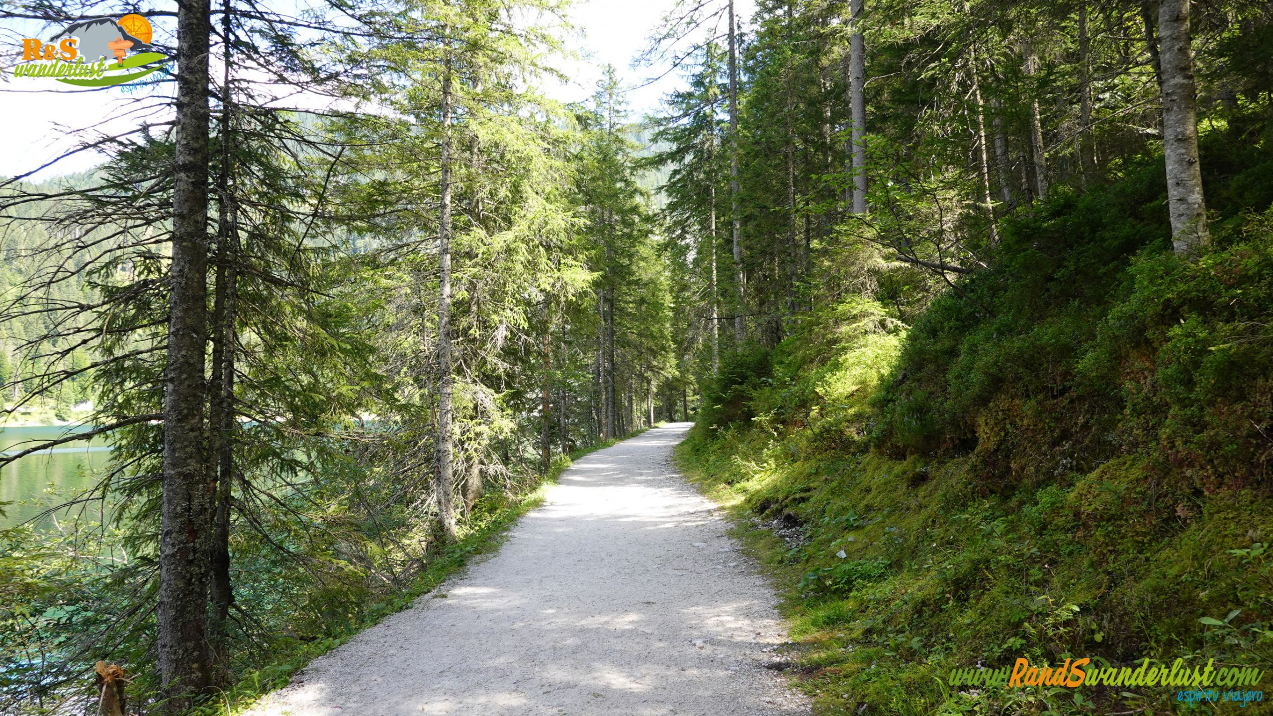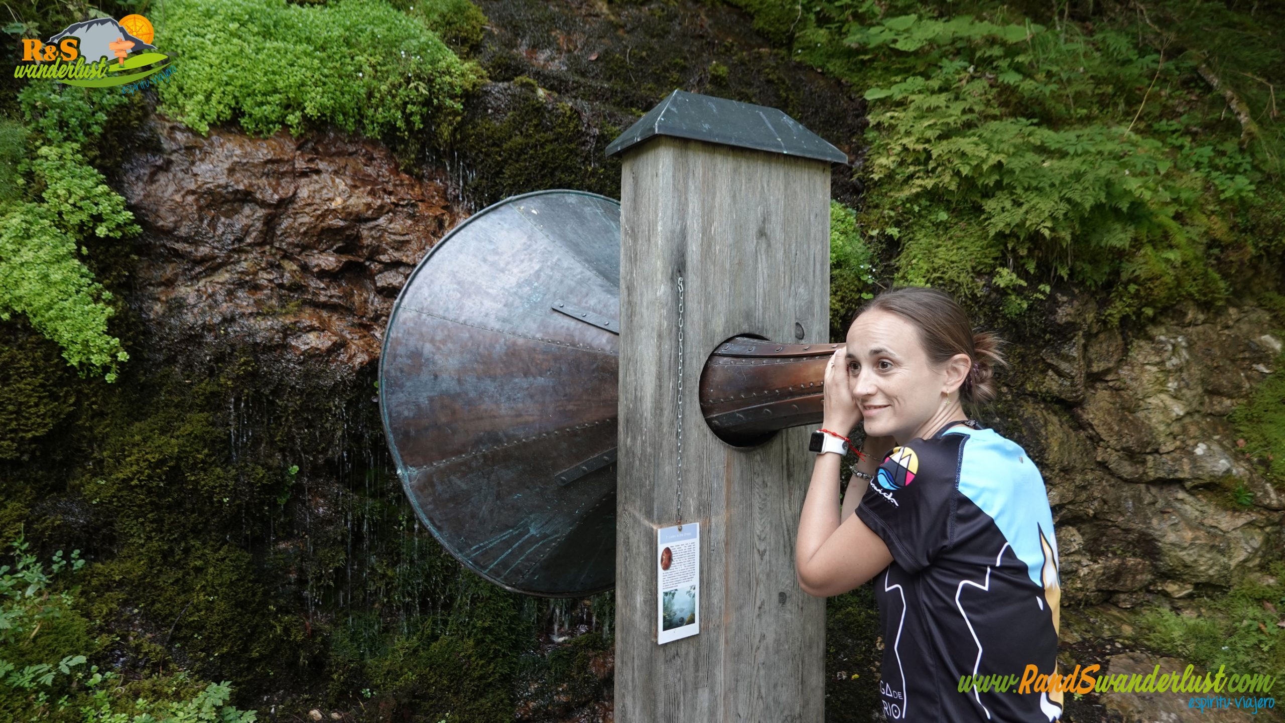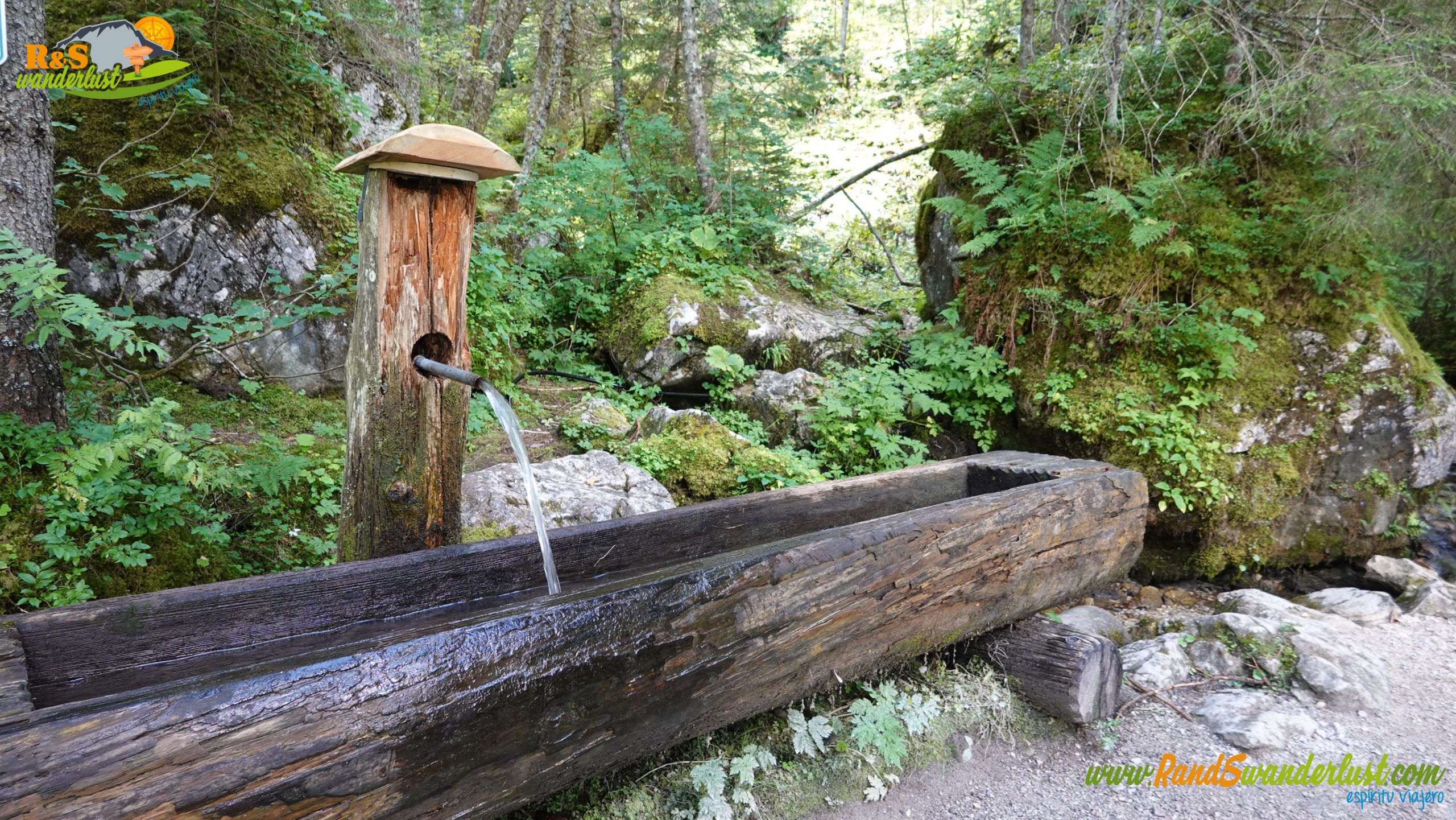 Las vistas hacia Gosausee son muy bonitas y el entorno nos permite disfrutar a cada paso. Caminamos a lo largo de un pinar, aunque también encontramos ejemplares de haya. Disfrutamos de Wasserlauschen, un bonito y curioso objeto, y dejamos atrás una fuente.
