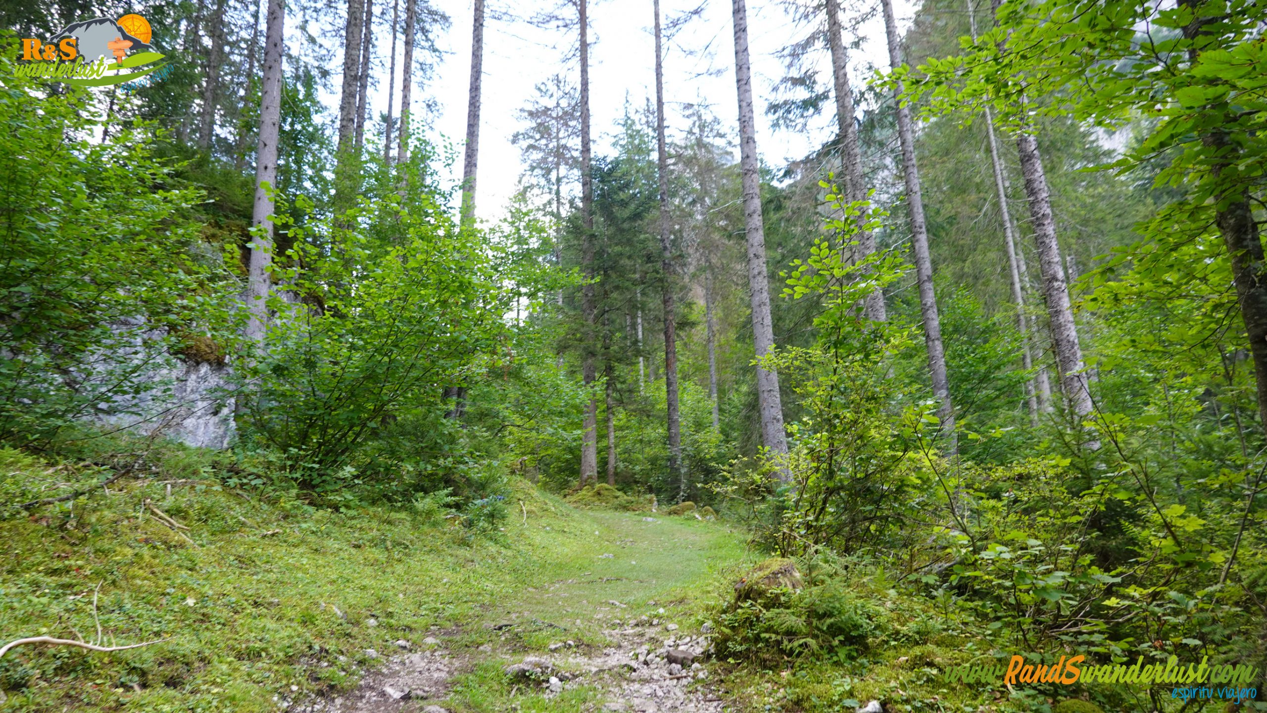 Hasta aquí, la ruta no ofrece grandes desniveles ni complicaciones. Seguimos un desvío más y comenzamos el ascenso hacia Hinterer Gosausee, una senda ancha y muy sencilla de transitar. Eso sí, por momentos se pone la cosa pindia! Vemos una bonita cascada y nos adentramos en un pequeño hayedo, muy bonito!