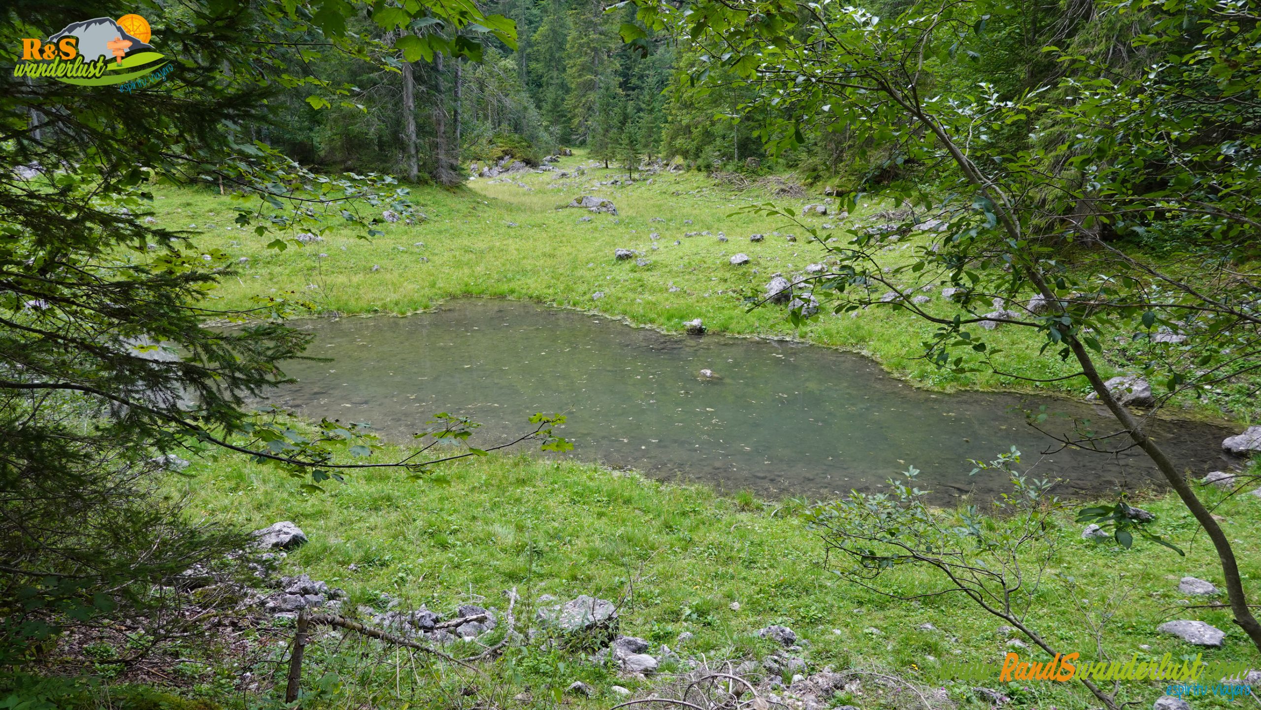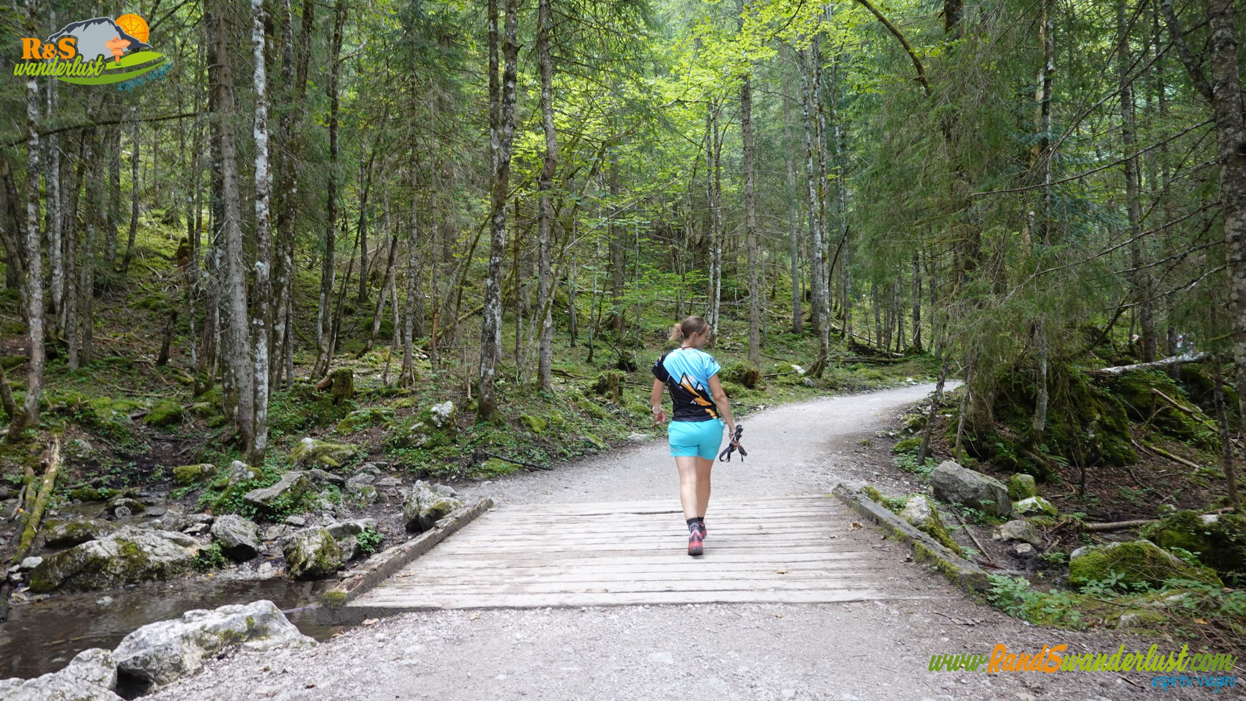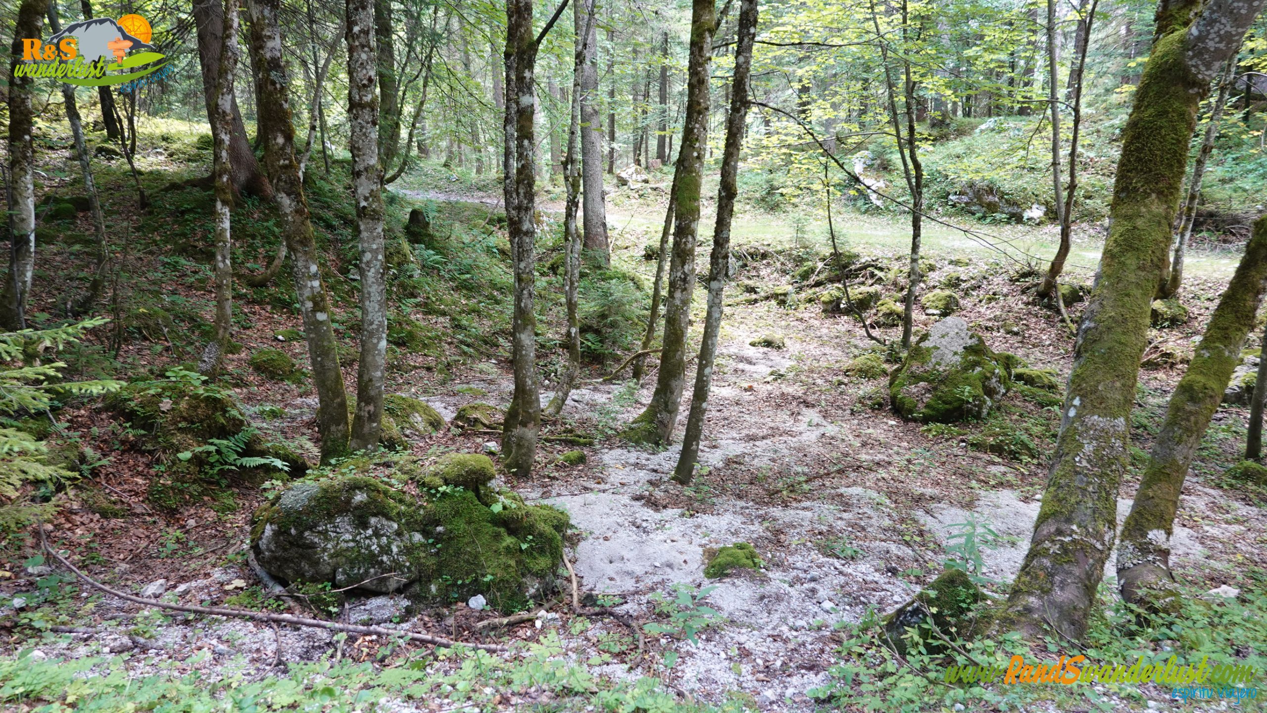 Completada la primera parte alrededor del lago, seguimos el trazado hacia el lago superior, siguiendo un desvío y abandonando el sendero circular alrededor de Gosausee. El nuevo camino nos vuelve a adentrar en un pinar, antesala de una fotogénica majada, lugar en el que tendremos que cruzar un pequeño puente para continuar la ruta.