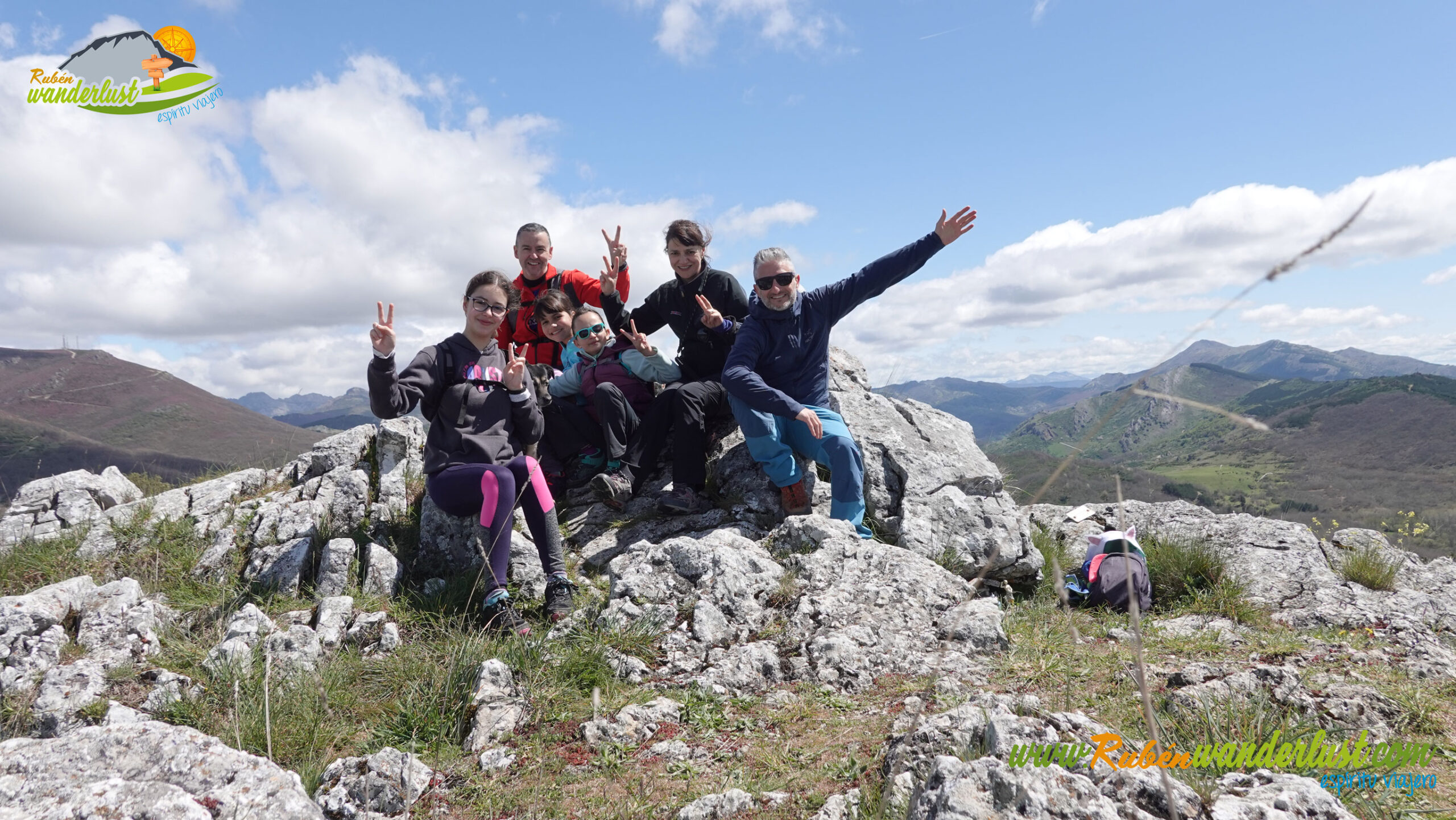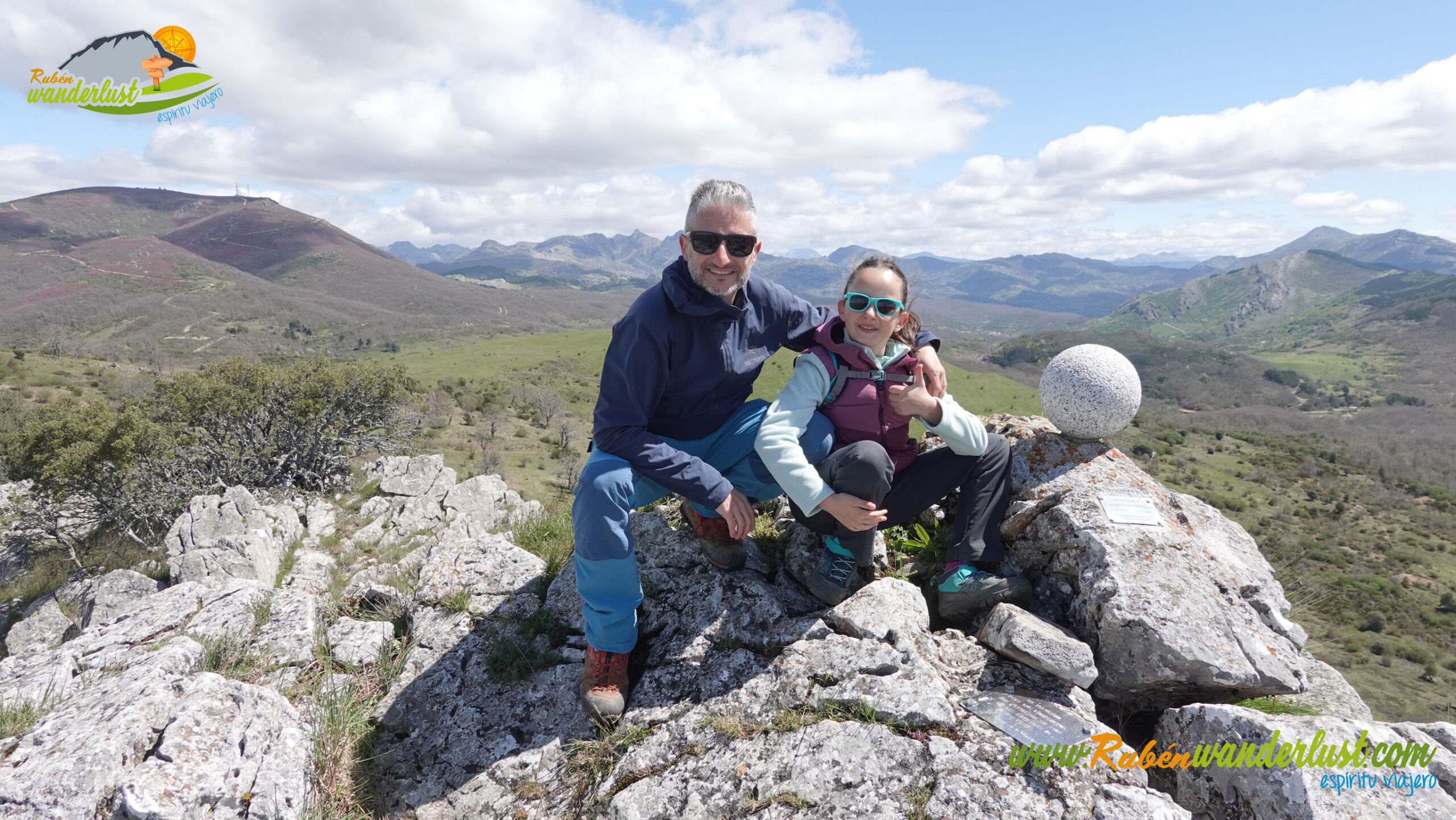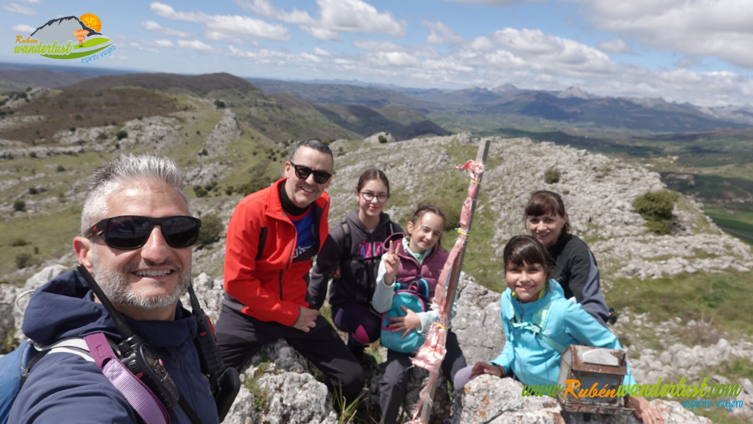 Estamos en la cumbre de Peña del Castro (1.328 m). Unas vistas de todo el entorno privilegiadas y unos minutos disfrutando de la panorámica, que es muy guapa! Vemos Peñacorada, La Camperona, el Pico Cerroso, el Pico Espigüete y un sinfín de montañas más a nuestro alrededor, incluida Las Peñotas, cima que conquistaremos pronto! Sopla bastante el viento, así que no paramos mucho! Eso sí, las fotos de rigor y algunas risas por el logro conseguido!