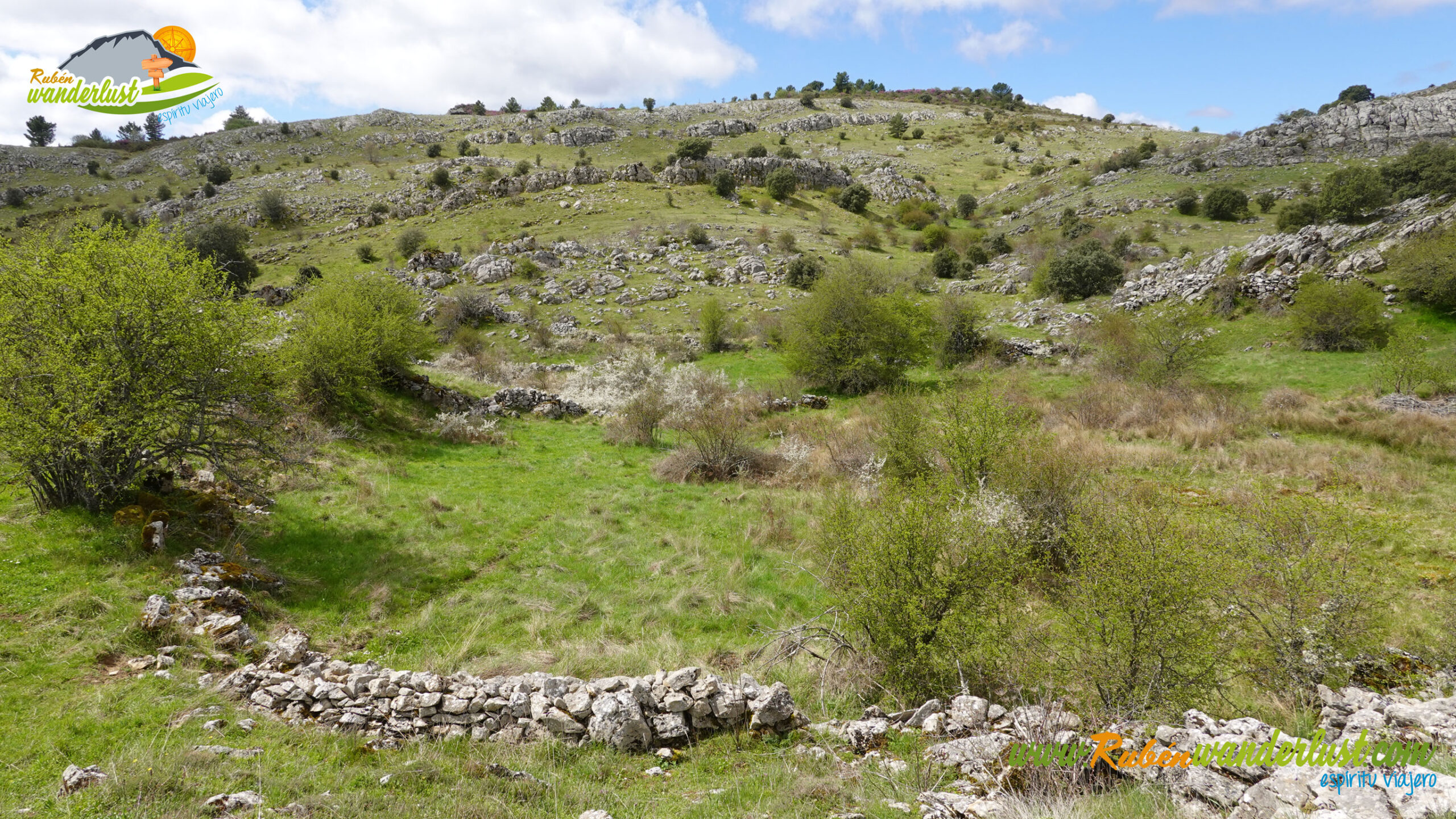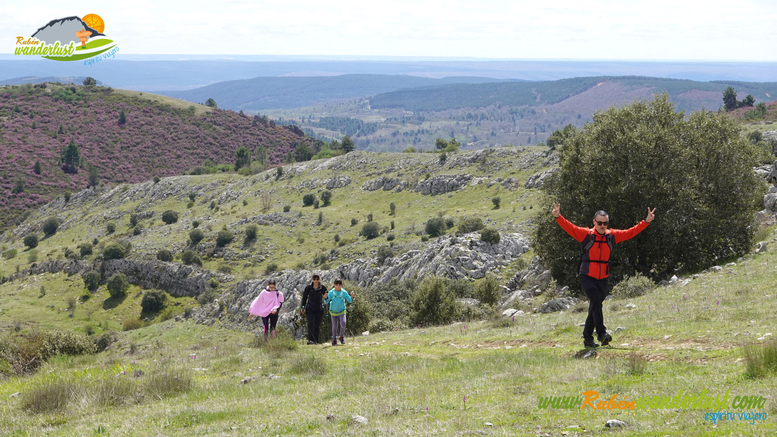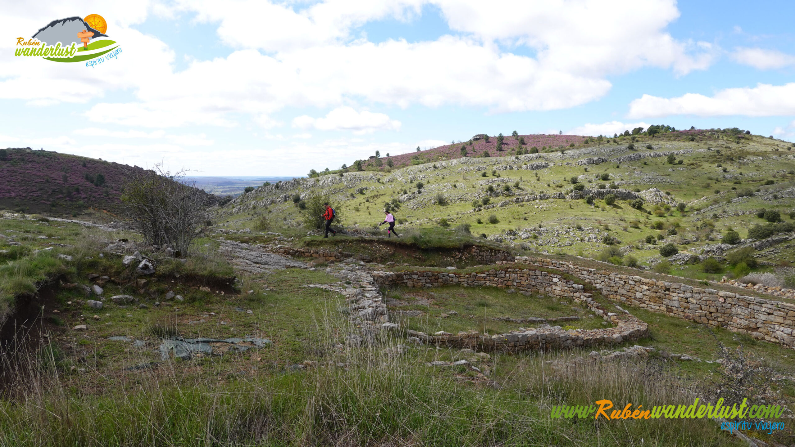 Llegamos a la cumbre de Las Peñotas (1.353 m). Cumbre de altura y vistas similares a las ya obtenidas desde Peña del Castro, pero otra imagen muy guapa del Yacimiento Arqueológico Peña del Castro. Panorámica para no perdérsela y mucho menos viento, lo que hace que agradezcamos mucho más la estancia en esta otra atalaya. Unos minutos disfrutando de las bonitas vistas que tenemos desde Las Peñotas!