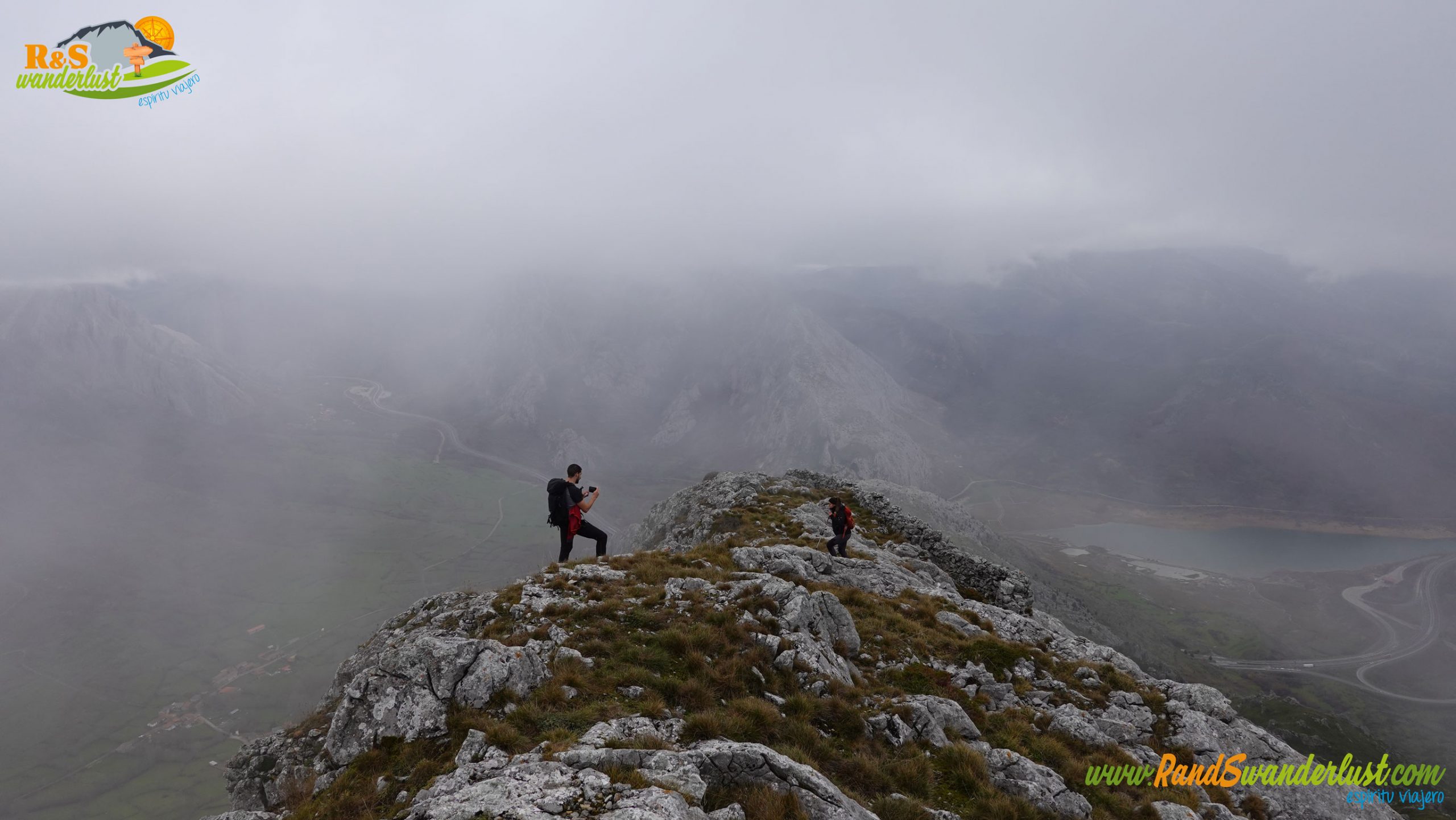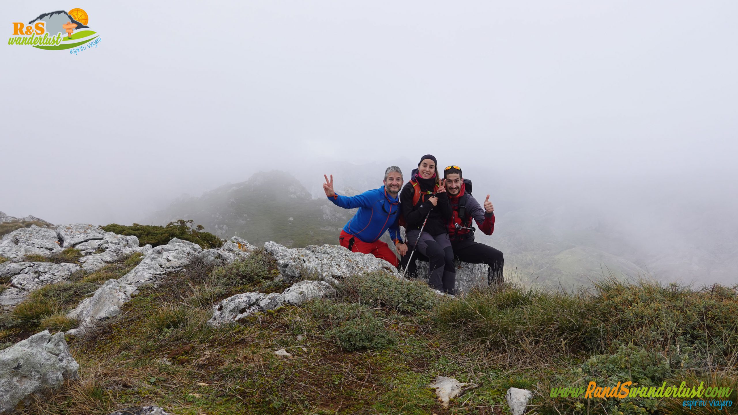 Finalmente, tras recorrer los pocos metros de arista, llegamos al Pico Cabachín (1.729 m). El tiempo empieza a despejar y la niebla a disiparse. Sin embargo, el viento sopla notablemente, así que aprovechamos unos minutos para disfrutar de la cumbre. Las vistas son preciosas y, sin duda, merece la pena llegar hasta arriba! Volvemos a distinguir las bonitas montañas que nos separan del Valle de Arbas, el pueblo de Robledo de Caldas y un buen número de cimas de la comarca de Luna. También es visible el Embalse de Barrios de Luna y el Puente Ingeniero Carlos Fernández Casado. Buenos momentos haciendo fotos y muchas risas posando y disfrutando de una cumbre más!