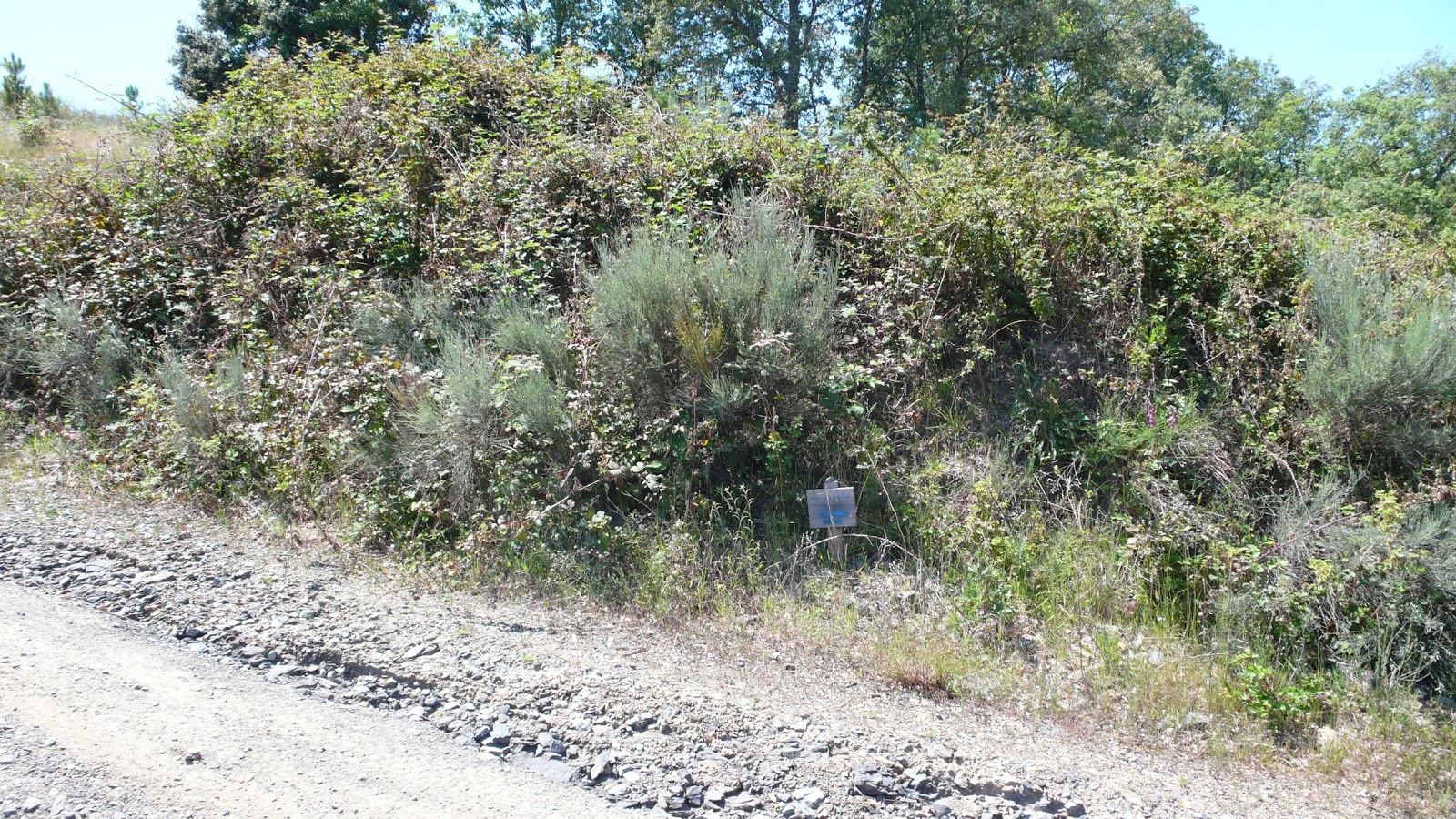 El camino finaliza a la altura de una mina abandonada, donde la pista se abre. En teoría, el camino continúa haciendo un giro de 180 grados a la izquierda, justo antes de la boca de la mina. Sin embargo, nos resulta muy complicado encontrar el cartel o poste indicativo de la ruta. Tenemos la suerte de que íbamos con GPS, por lo que logramos encontrar dicho desvío, completamente tapado por la vegetación que seguía invadiendo la zona.