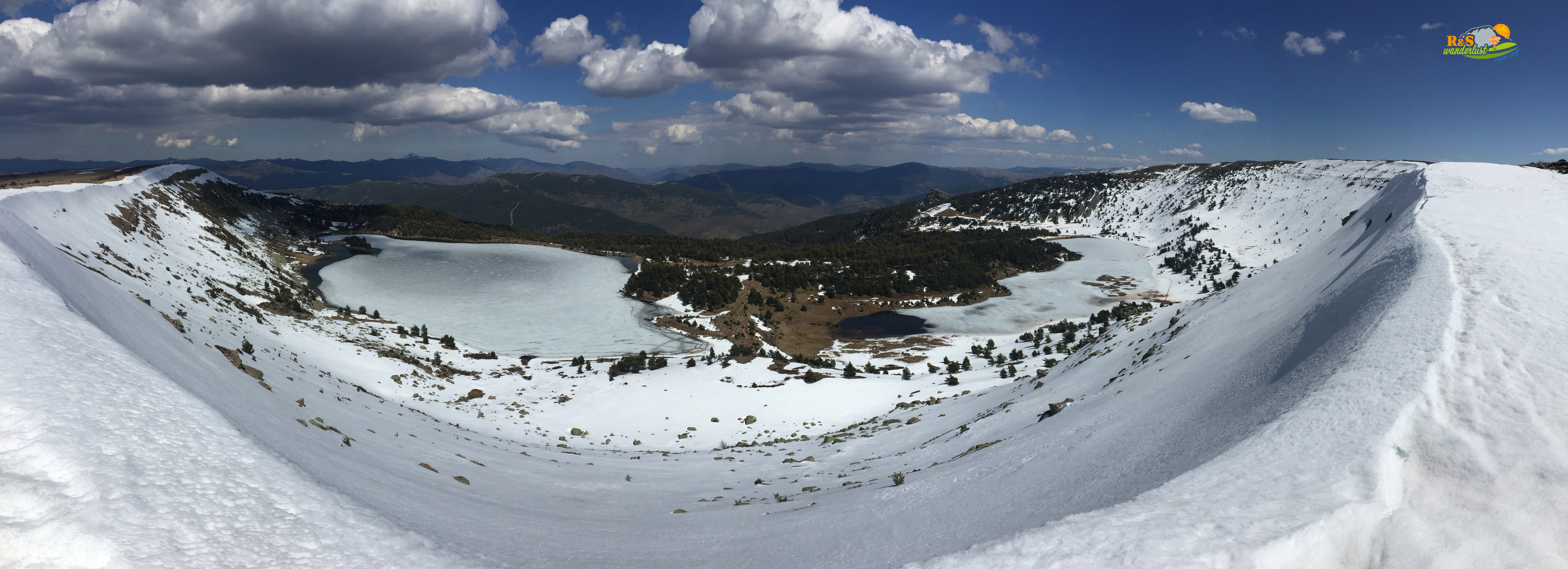 Continuamos por el cordal sin complicaciones ni grandes desniveles, siempre moviéndonos sobre los 2.000 metros de altura. Tan sólo exigirá un poco más la última parte, llegando al Pico Campiña. El cordal nos brinda bonitas panorámicas de la Laguna Negra y de la Laguna Larga, dos espectáculos para la vista! Ambas lagunas se encuentran heladas, dando un punto extra de belleza al lugar. Durante todo el cordal, somos testigos de la gran cornisa que ha formado la nieve caída, debiendo tener precaución en no acercarnos demasiado. Aún así, el cordal es perfectamente transitable sin necesidad de pisar nada de nieve.
