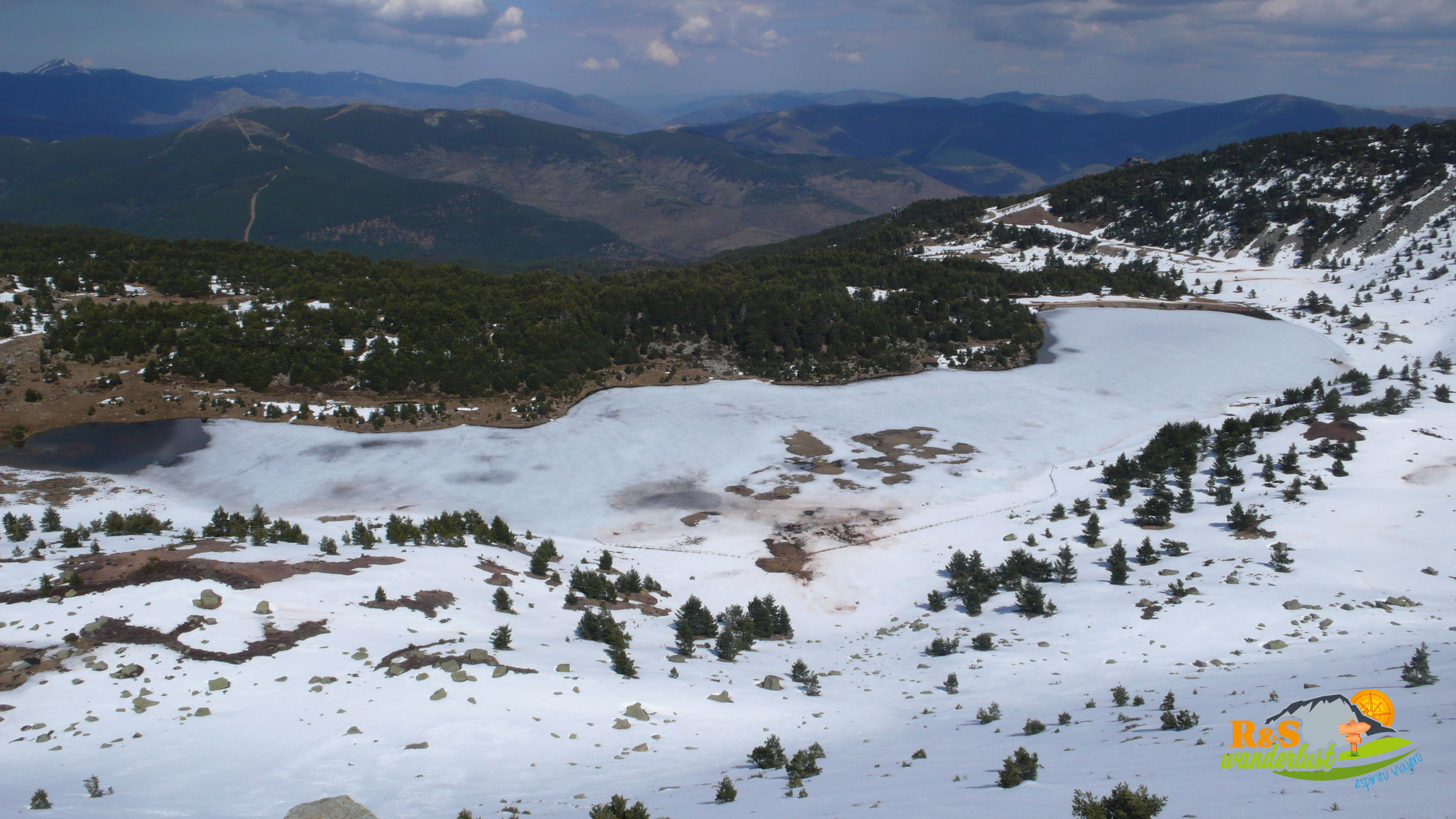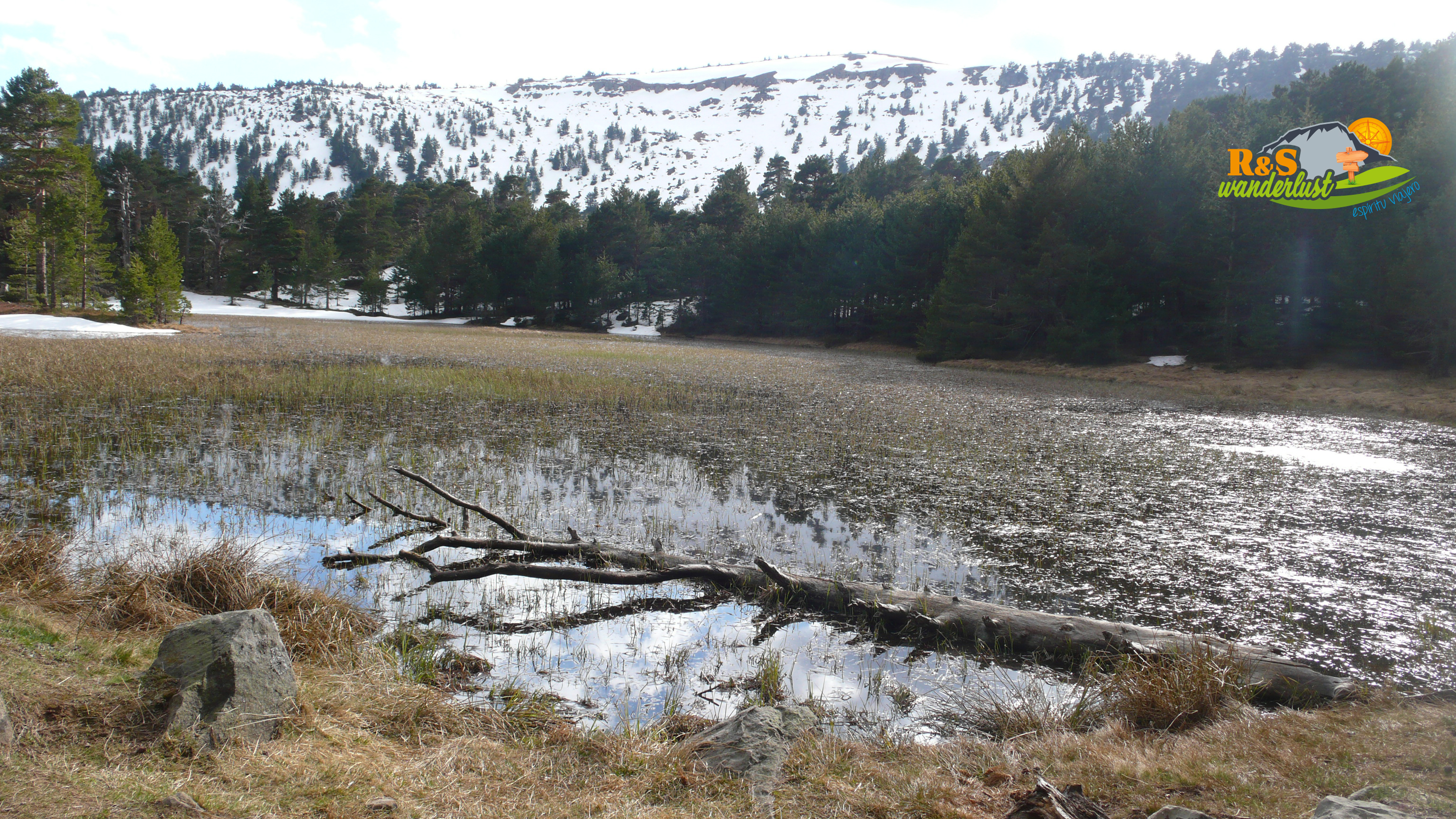 Seguimos por la carretera y llegamos a la primera laguna que encontramos, Laguna de las Pardillas, invadida por la vegetación que asoma. La Laguna de las Pardillas nos permitirá tener una primera idea de lo que nos encontraremos. De momento, sin demasiada nieve, pero al fondo podemos ver que la ruta no será tan cómoda como pensábamos.