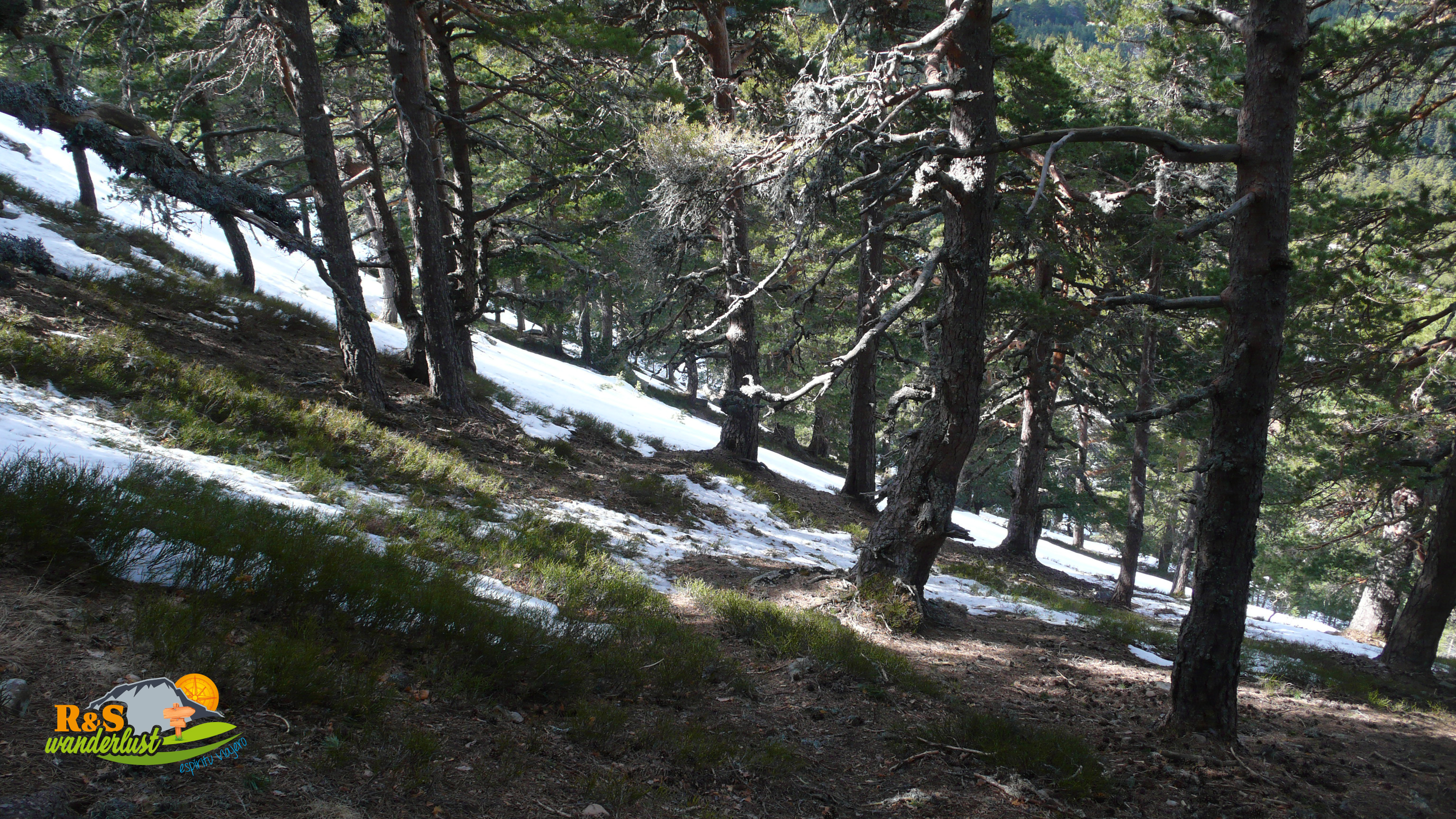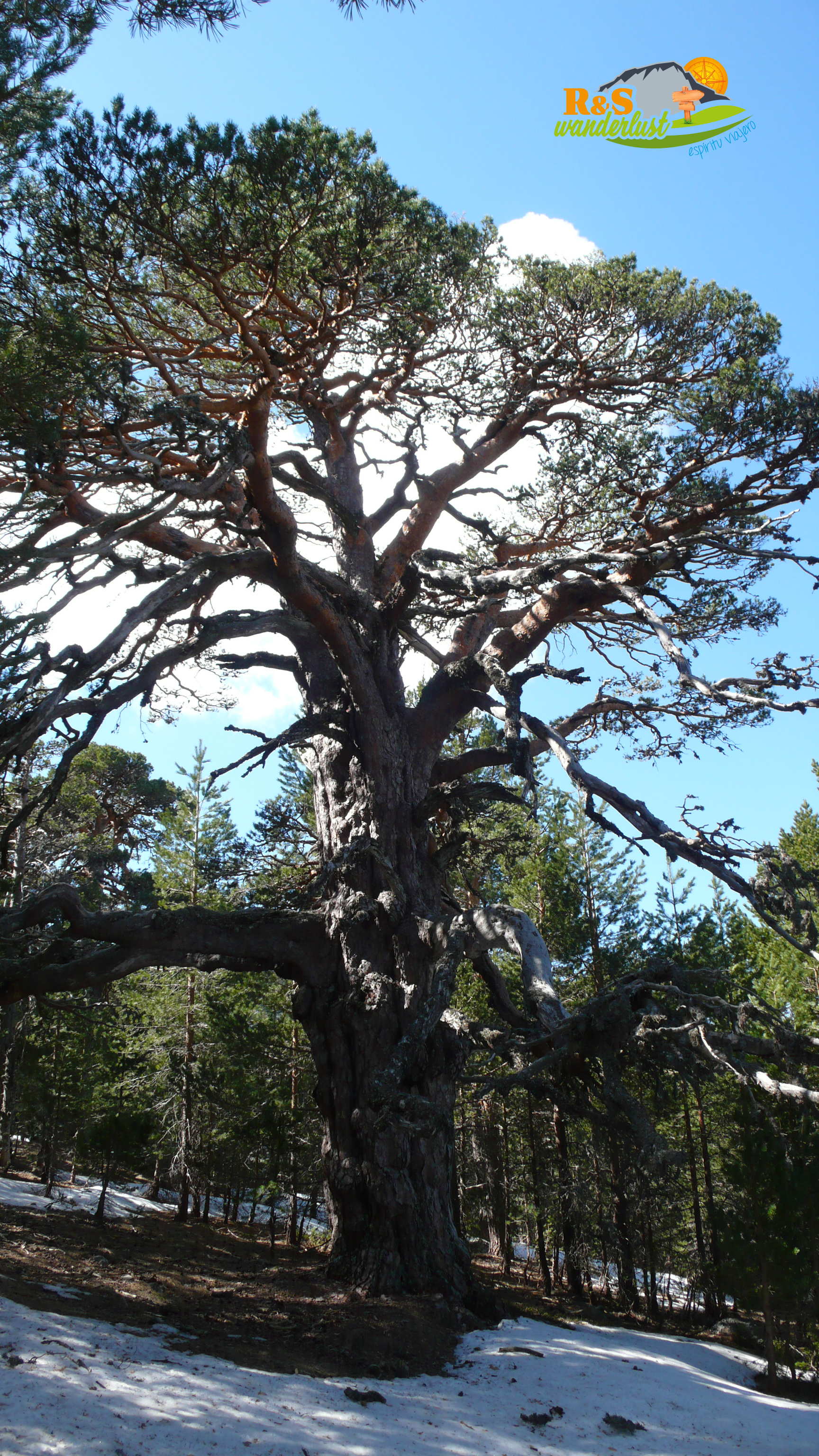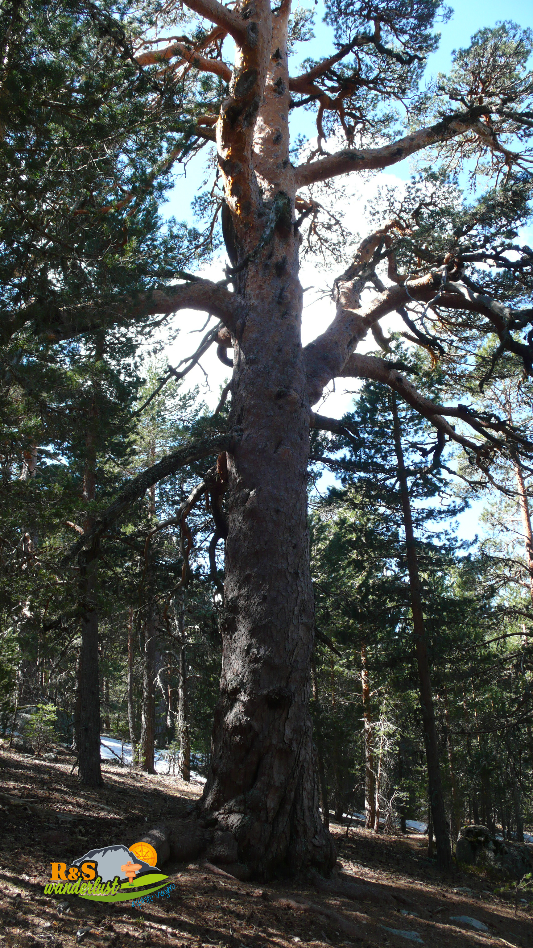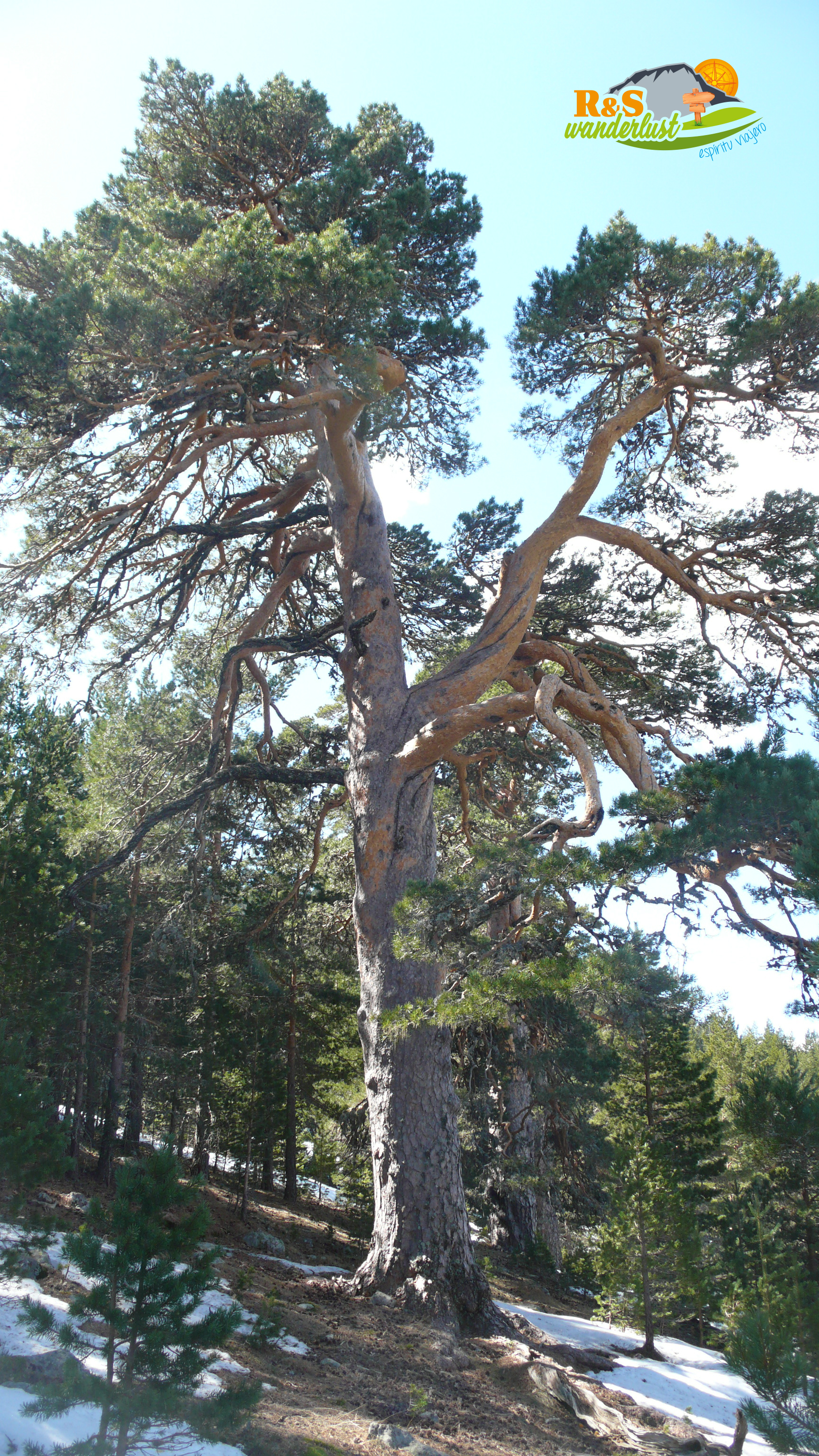 La primera parte descenderá, sin grandes complicaciones, a lo largo de la Majada Encimera de Peña Aguda. El camino es claro y combinamos tramos de sendero con tramos con nieve. Por el camino, varios ejemplares de pinos centenarios preciosos!