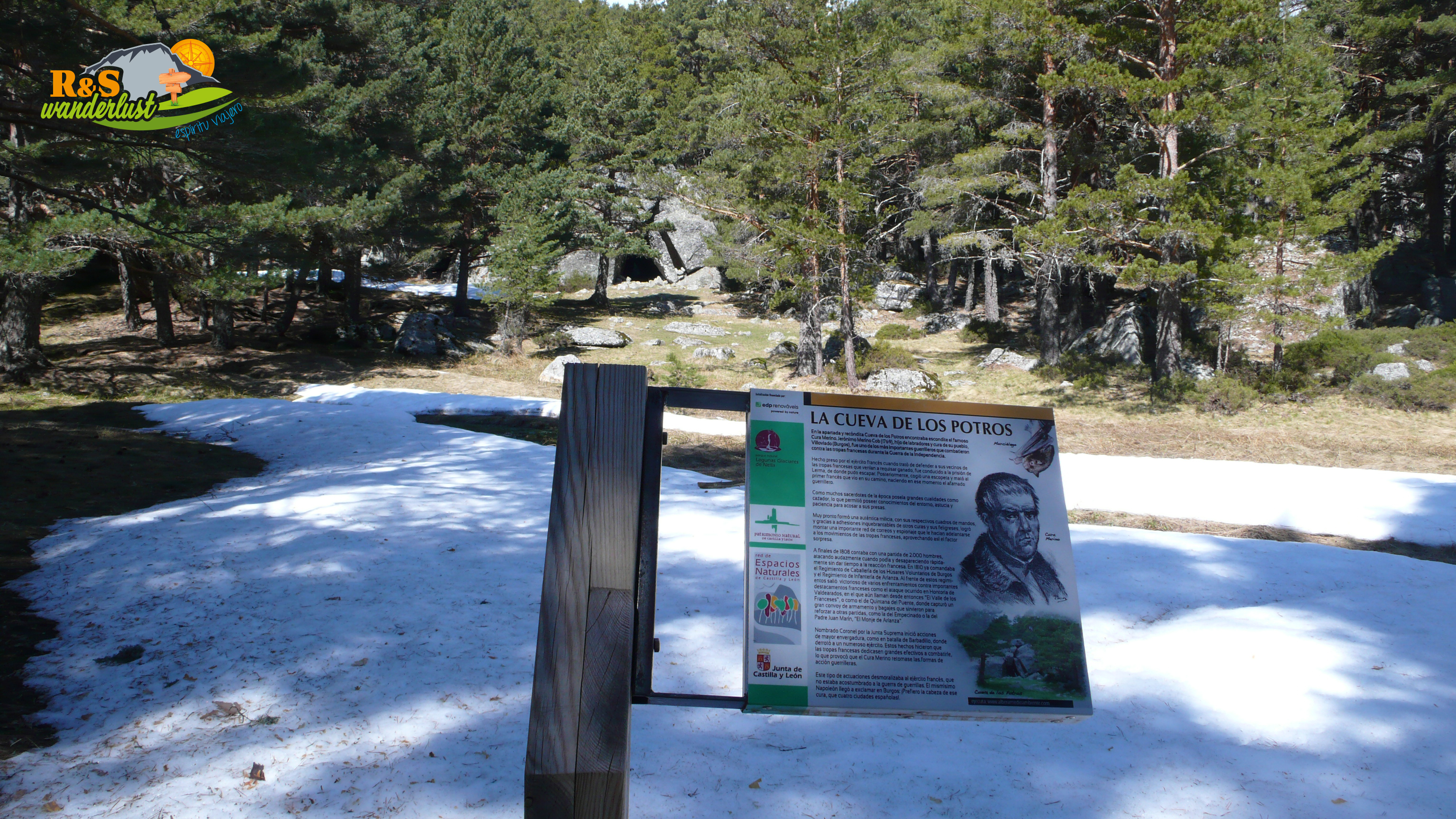 Antes de iniciar la variante, visitaremos la Cueva de los Potros, una pequeña cueva que seguro que serviría de refugio a antiguos visitantes. En la zona, un pequeño cartel informativo sobre la misma.