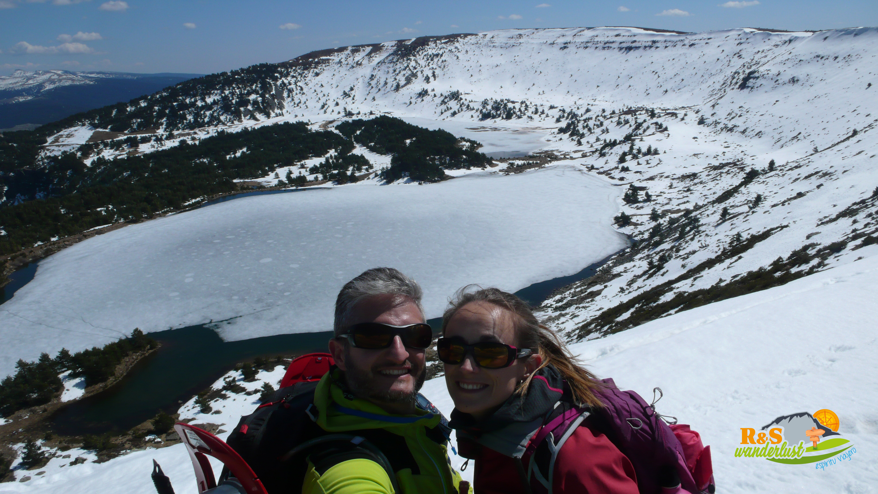 Continuamos la ruta atravesando zona de pinos, como es costumbre en este paraje. Pronto iniciamos el ascenso hacia el cordal, a lo largo de un sendero perfectamente marcado y pisado, algo más exigente. Las vistas hacia la Laguna de la Cascada van siendo cada vez más bonitas. A nuestra izquierda, vamos dejando los grandes farallones de roca. Comienza a aparecer la nieve, tapando el sendero y debiendo prestar atención a cómo continuar. Según vamos ganando altura, ya más cerca del mirador, la nieve es continua, debiendo ascender con mucha más precaución. La nieve se encuentra en bues estado y permite hacer buena huella. Aparte, la ruta se encuentra muy pisada y no tenemos problemas en ir ganando metros de manera rápida! Las vistas son espectaculares!
