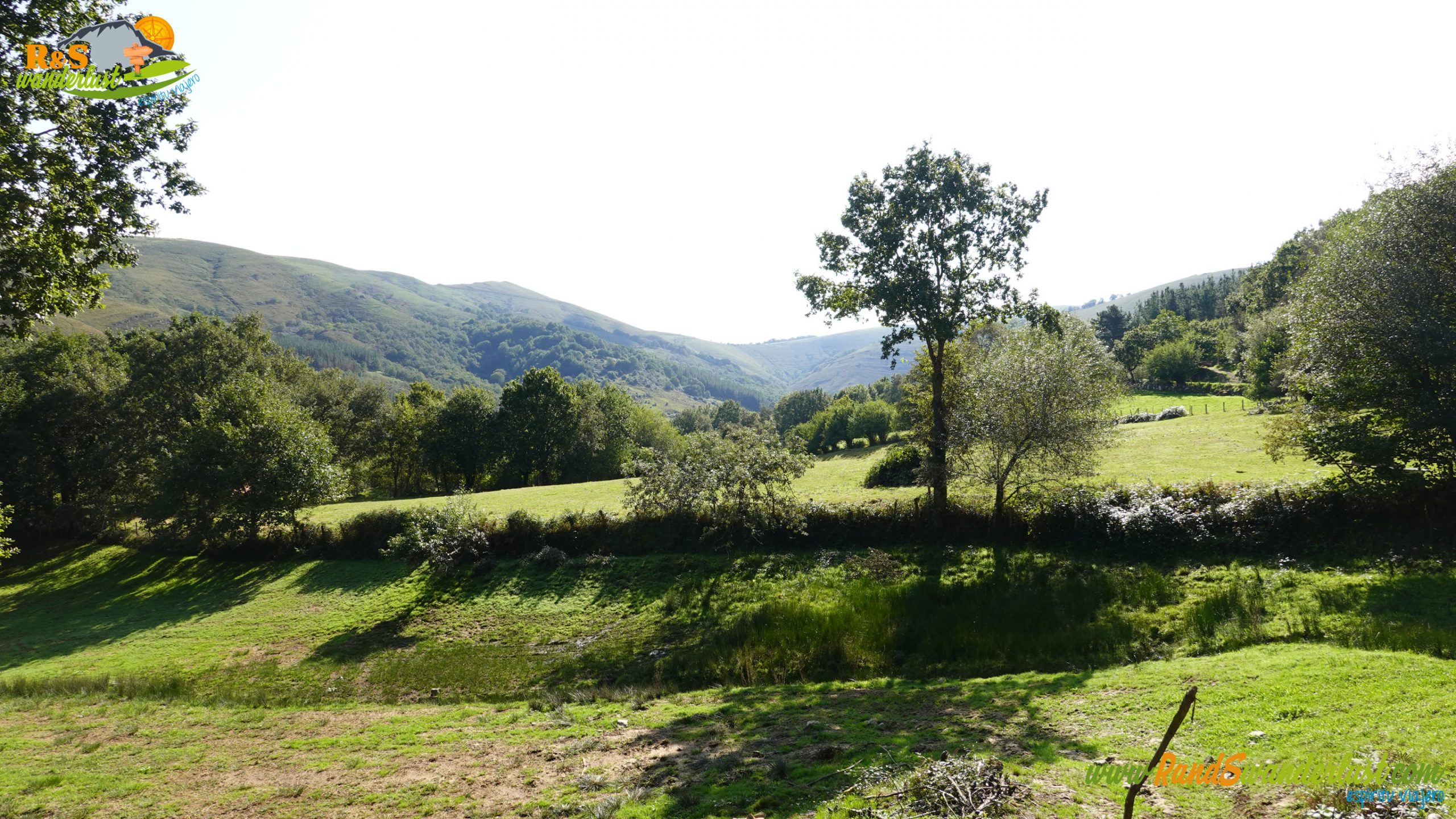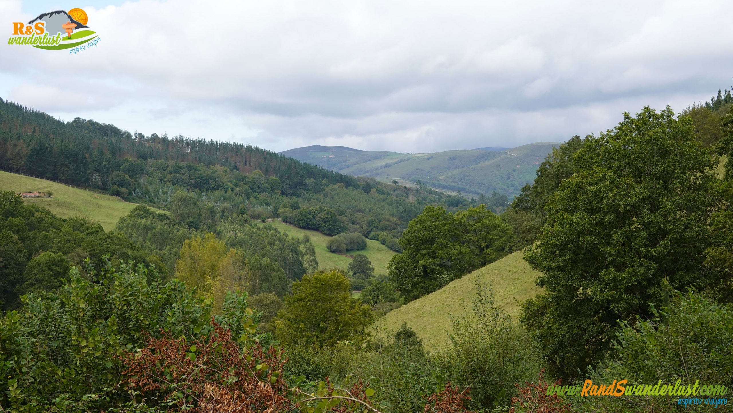 Completada esta pequeña subida, nos desviamos a la altura de una pista forestal que nos dejará en Lamiña en pocos minutos. Durante dicha pista, podemos tener buenas panorámicas de los valles que nos rodean y del pueblo al que nos dirigimos.