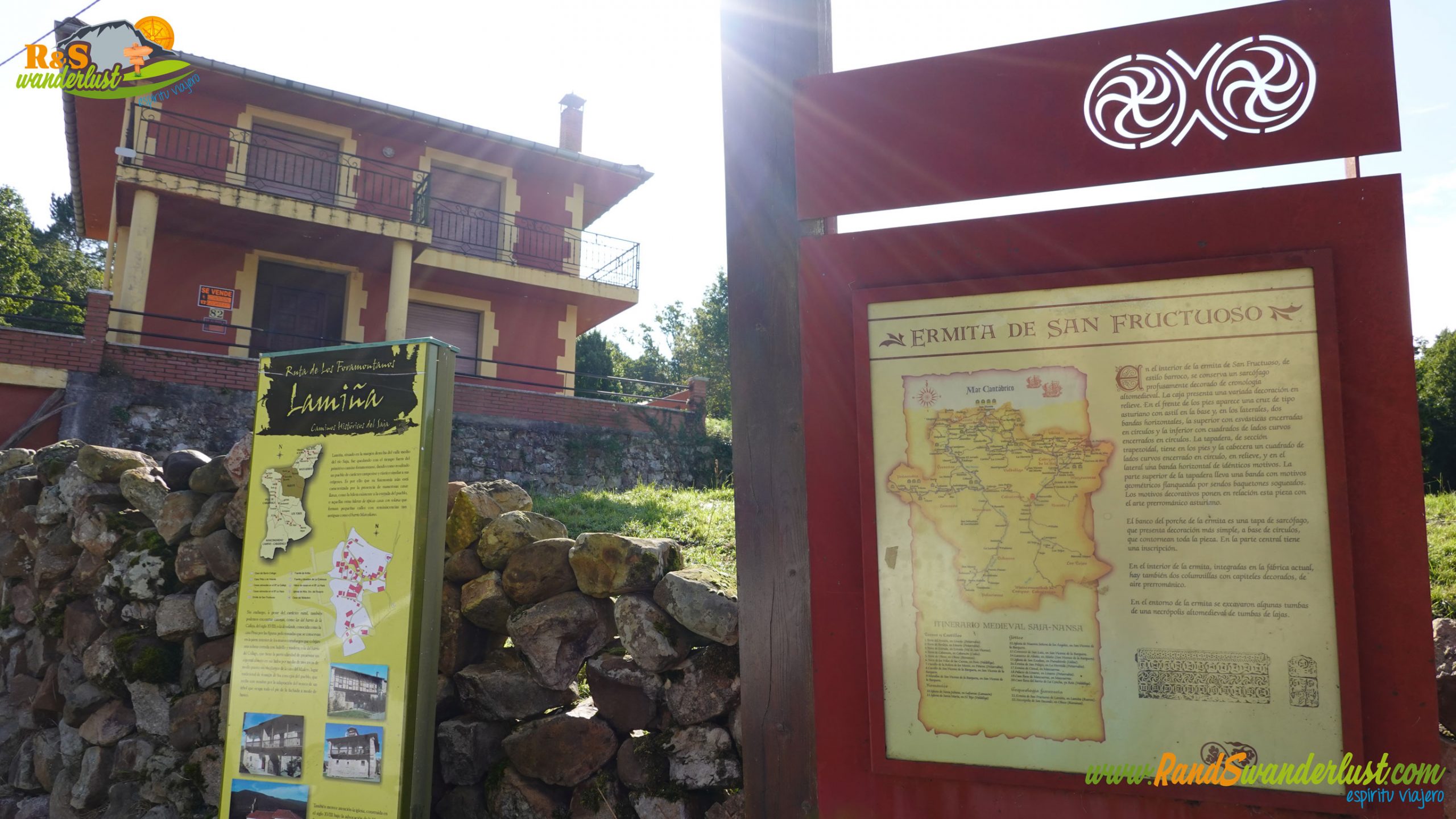 La primera parte de la ruta avanza sin demasiados desniveles a superar. Pronto distinguimos la Ermita de San Fructuoso, enclavada en un lugar precioso! Tenemos que seguir un desvío para continuar por la pista forestal por la que vamos caminando. Es una ruta muy sencilla de caminar y agradable, pues el valle que vamos recorriendo es muy bonito. Vamos bien acompañados por multitud de árboles, destacando el eucalipto.