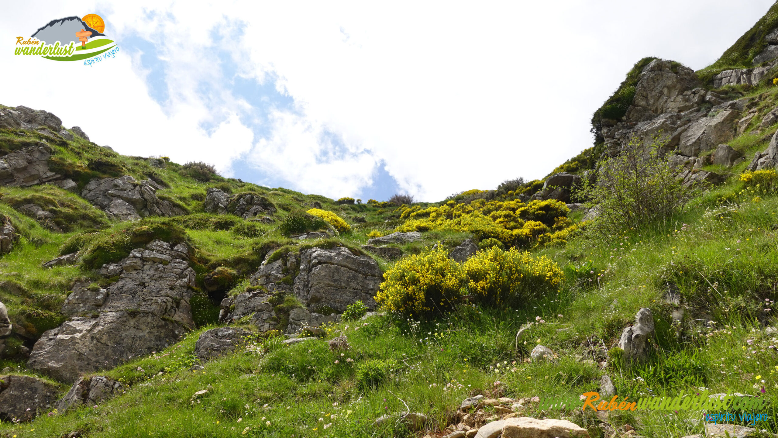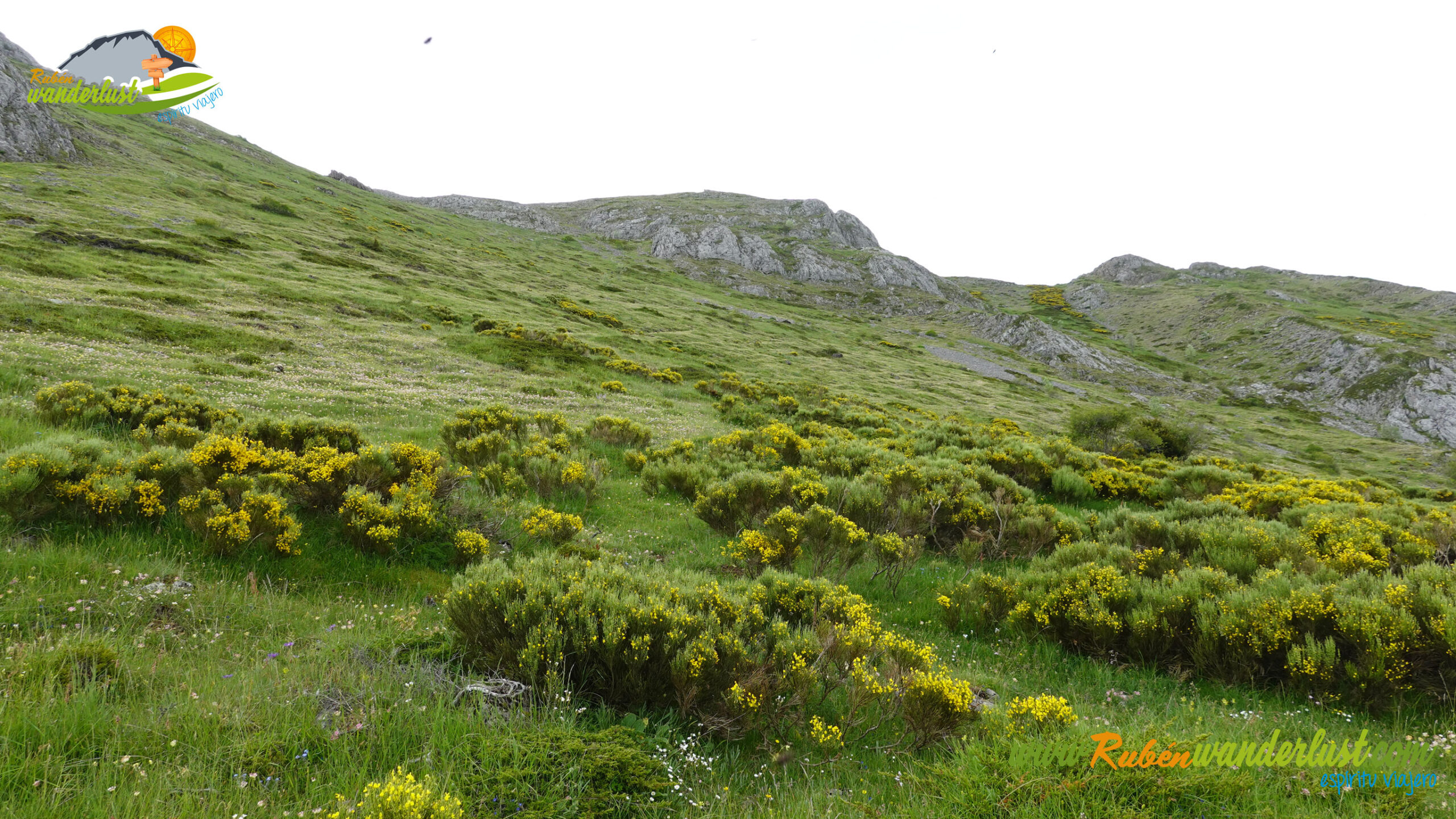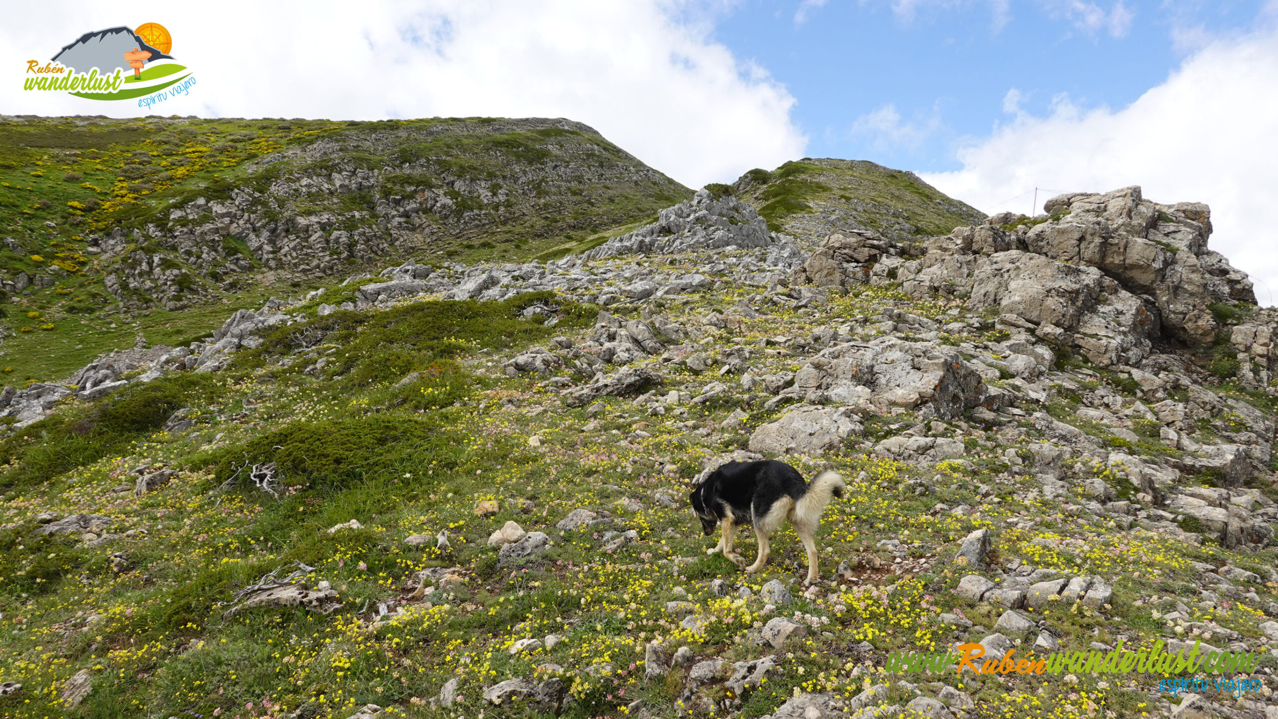 Vamos ganando altura por algún indicio de sendero, aunque no se trata de un camino evidente ni señalizado. Por donde mejor vemos, vamos subiendo y buscando el mejor paso. Eso sí, la ladera se pone pindia! Qué vistas!