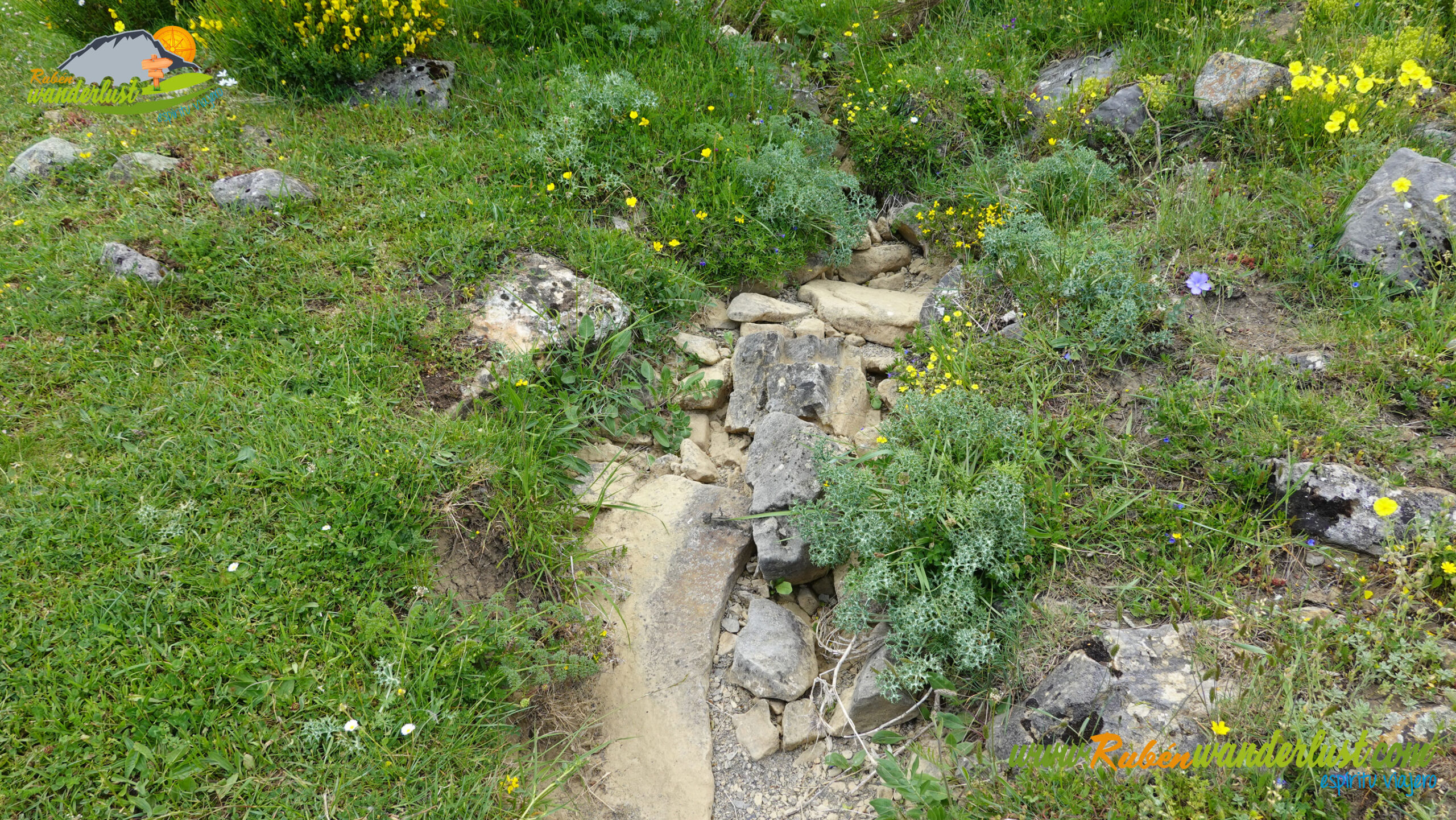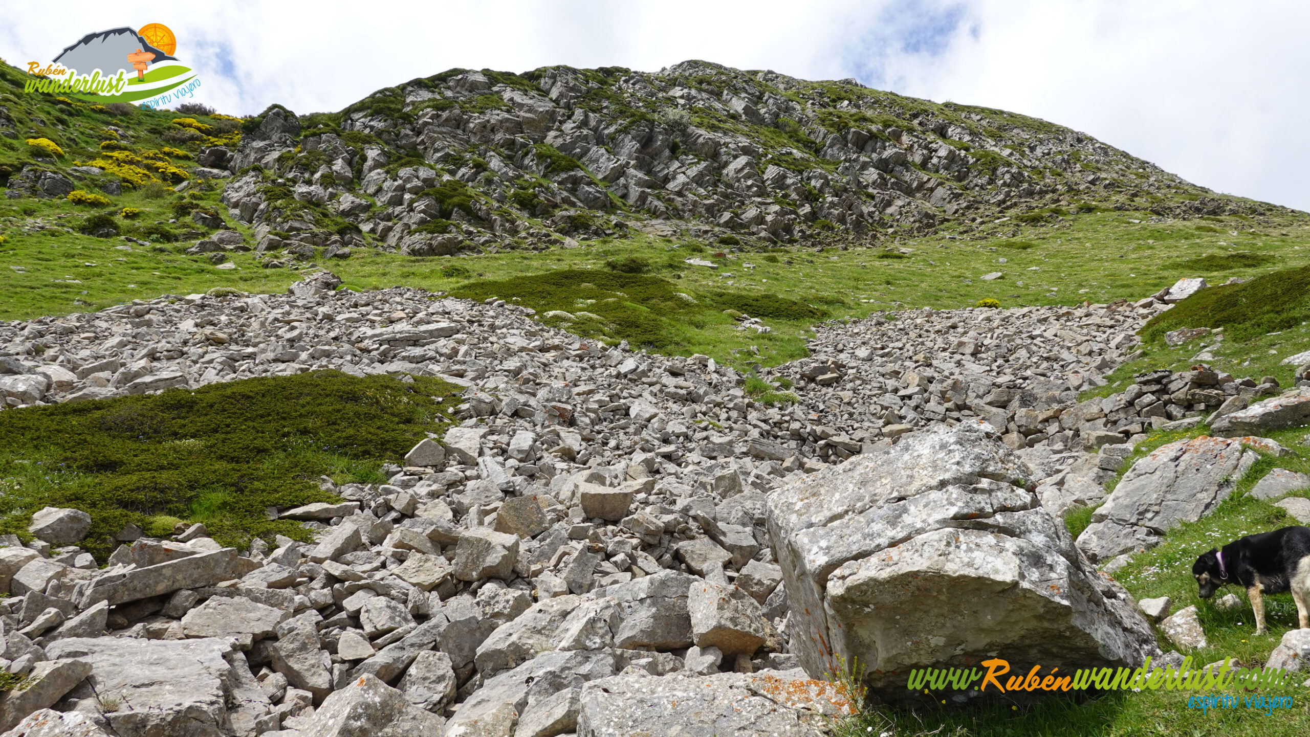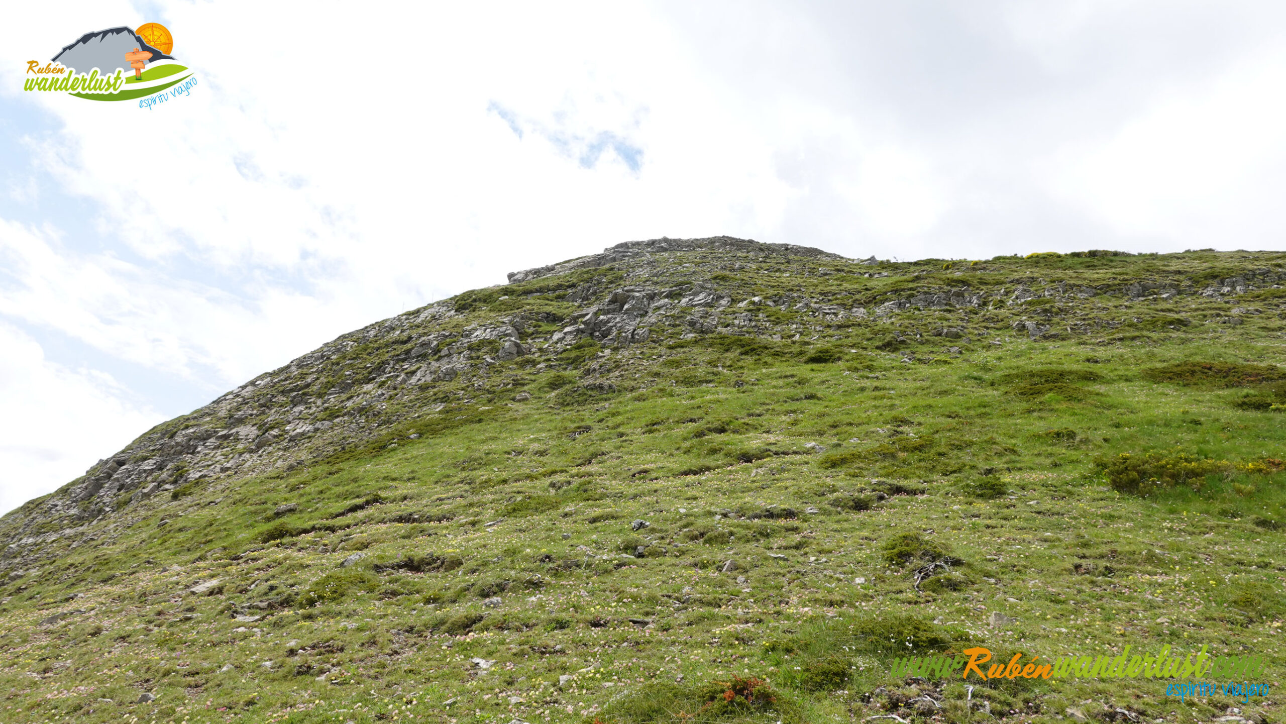 Unos metros más y llegamos a otro pequeño collado, donde giraremos a la izquierda para afrontar los últimos metros de subida, parte que realizaremos por la cara norte de la montaña y sin mayores complicaciones. Ya estamos cerca, aunque antes tendremos que cruzar un canchal y dejar atrás un par de trincheras!
