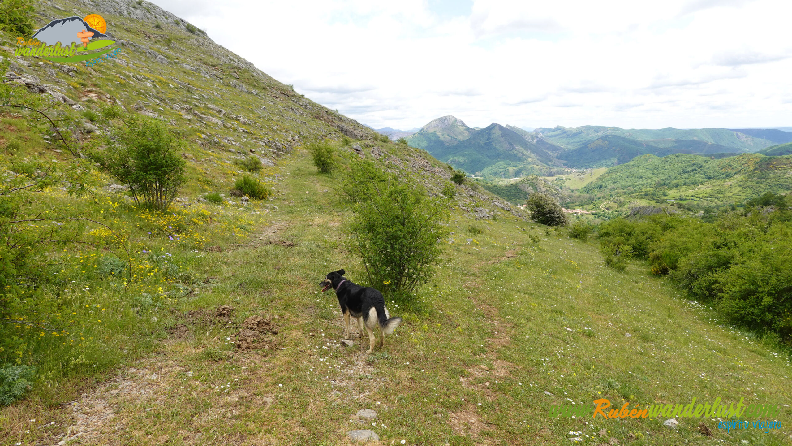 Continuamos por el camino principal, ganando altura de manera más exigente. Toca afrontar y remontar el valle que nos llevará hasta El Collado, por donde llegaríamos a la Majada Santa Cruz. Esta parte no ofrece ninguna complicación, debiendo descartar varios desvíos que aparecen por nuestra izquierda. Vemos un abrevadero y seguimos subiendo, disfrutando de una panorámica excepcional! Una mirada atrás nos permite disfrutar de la silueta del Cueto San Mateo!
