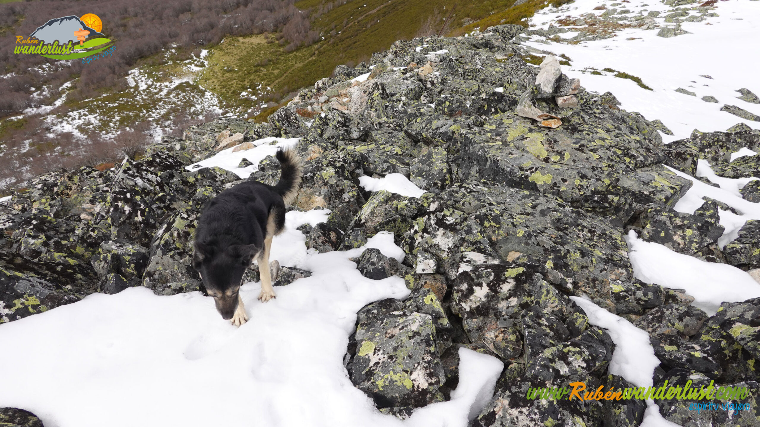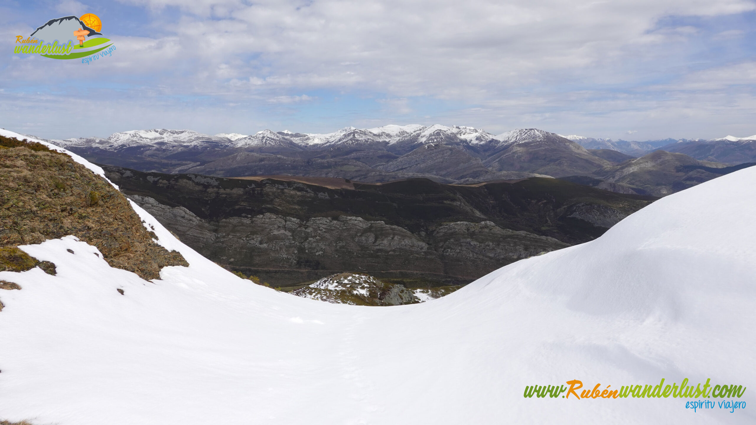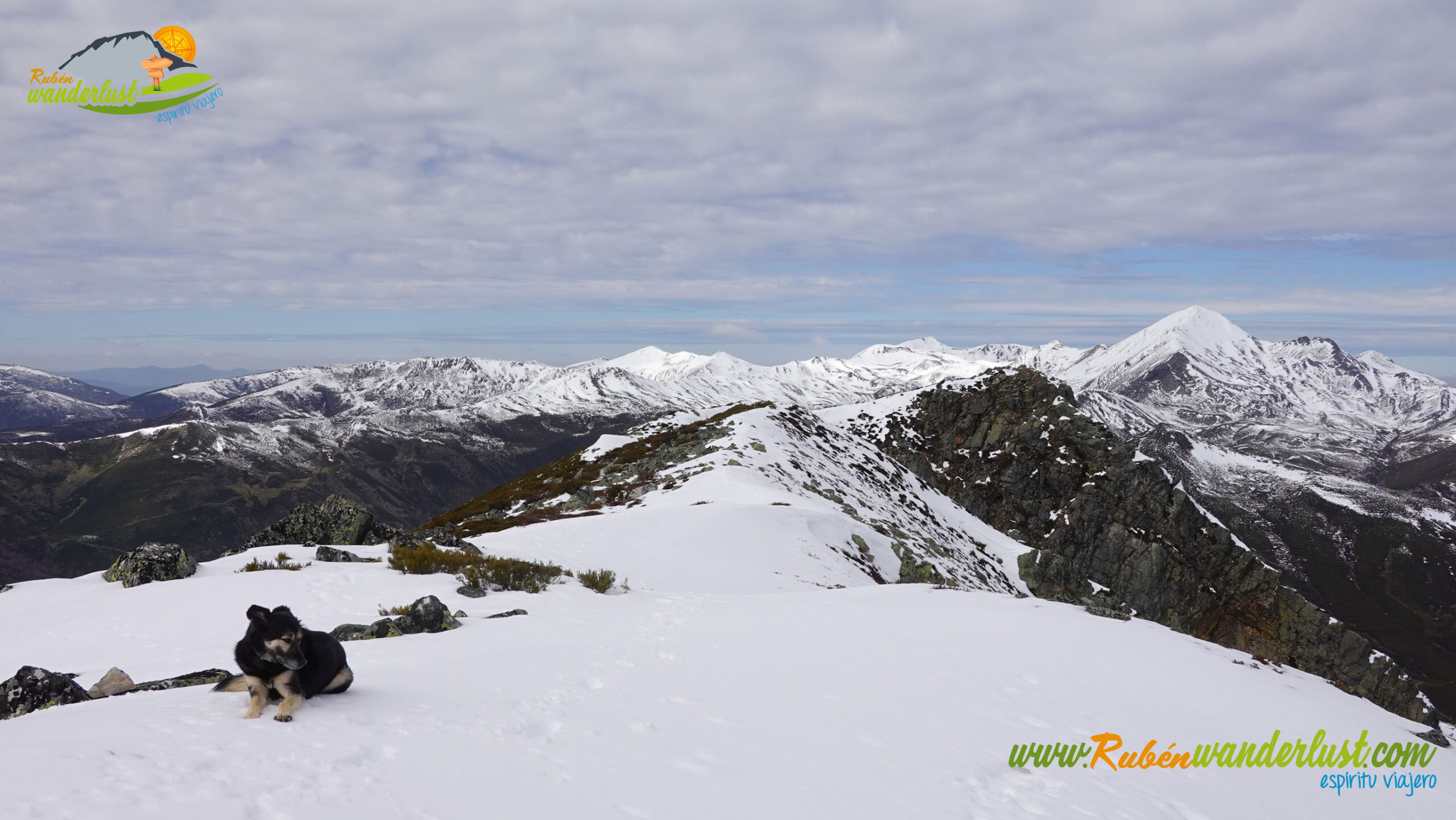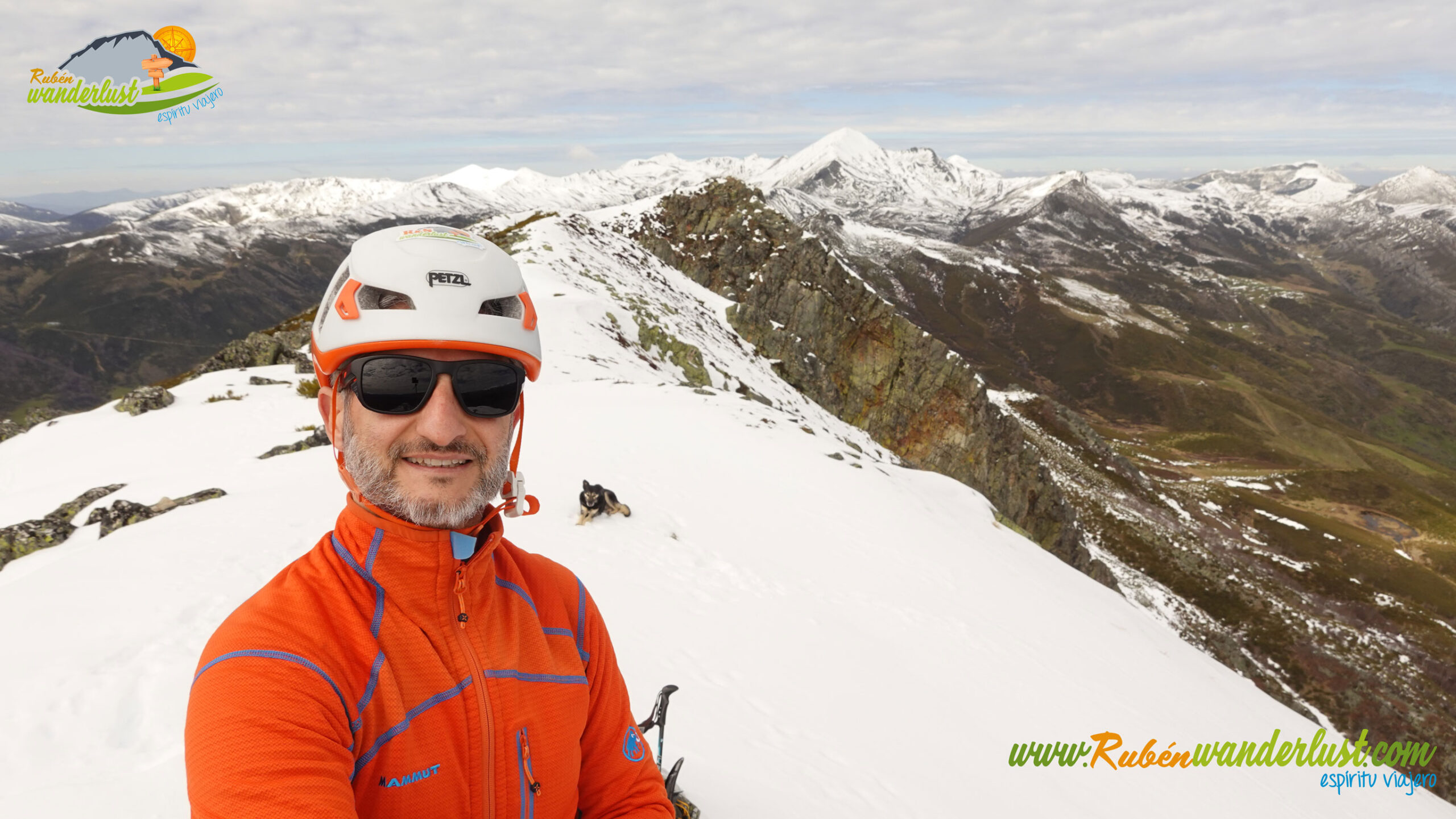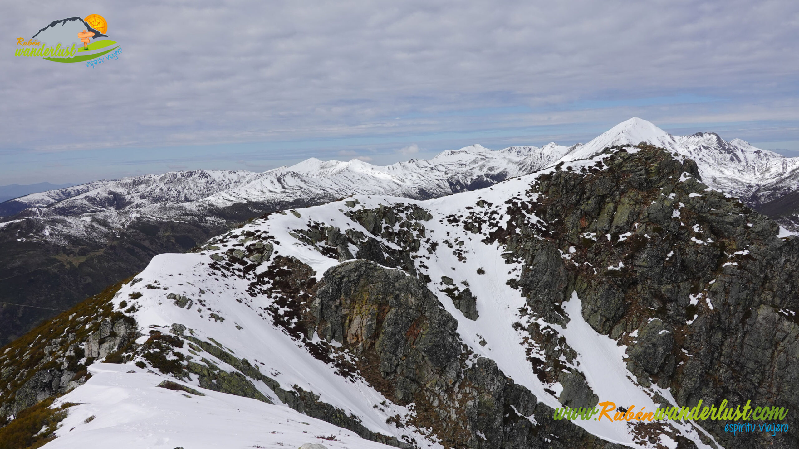 Finalizada la arista noroeste, llegamos a la cima del Pico Muxivén (2.027 m). Desde aquí obtenemos unas vistas espectaculares! Divisamos gran parte de las montañas de Laciana, los Ancares Leoneses, la Sierra de Gistredo, la Sierra de Villabandín, las montañas de Babia y un sinfín de montañas más a nuestro alrededor. El aire es muy frío y no nos permite estar mucho tiempo en la cumbre, pero lo suficiente para disfrutar del logro conseguido! Llegar al Pico Muxivén es algo espectacular!