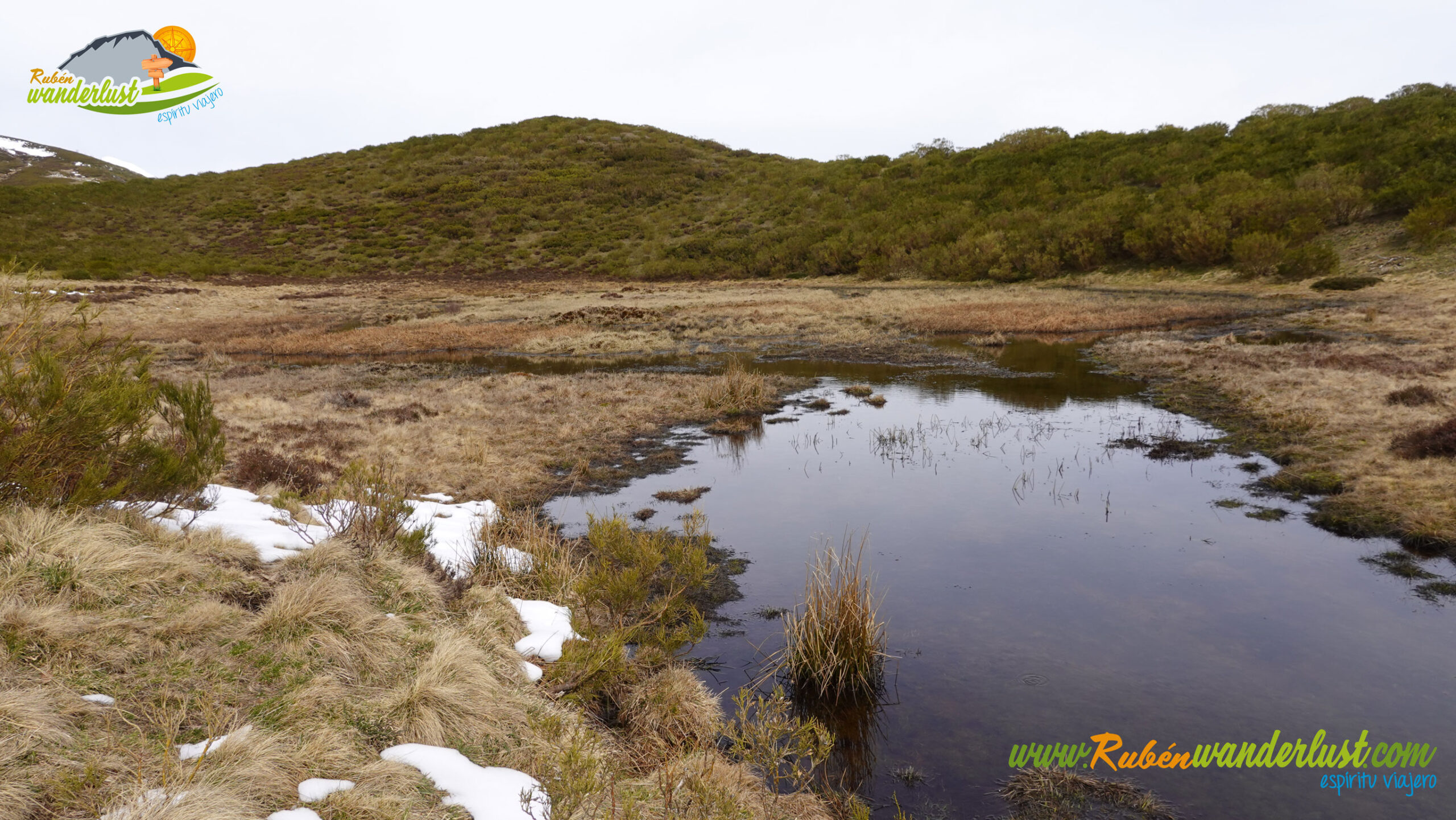 Llegamos al Lago de las Borras! Dejándolo a nuestra derecha, continuaremos subiendo por un estrecho sendero, marcado y sin complicaciones. La zona está bastante encharcada, pero nada que no podamos superar sin problemas. Eso sí, botas impermeables y polainas! Tras el Lago de las Borras, llegamos al punto en el que tendremos que elegir por dónde continuar. Si seguimos con el mismo rumbo, llegaremos al Collado La Bobia, vía principal de ascenso. Sin embargo, si giramos hacia la izquierda, rumbo al canchal, ascenderemos por una espectacular canal! Apetece porque tiene mucha más nieve, pero será nuestra opción de bajada! Continuamos hacia el collado, cruzando el Reguero El Sistral.