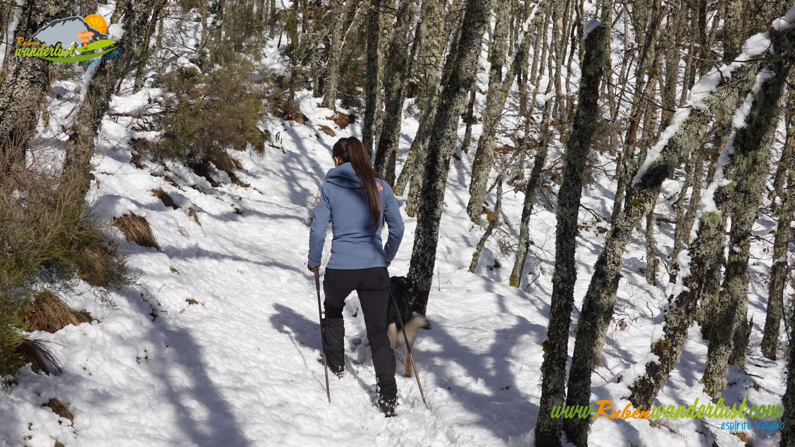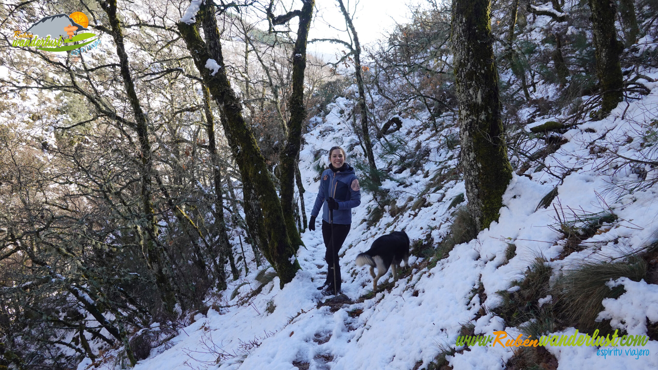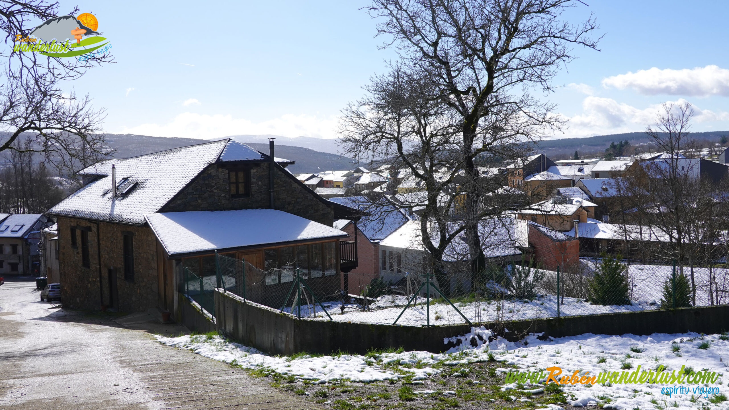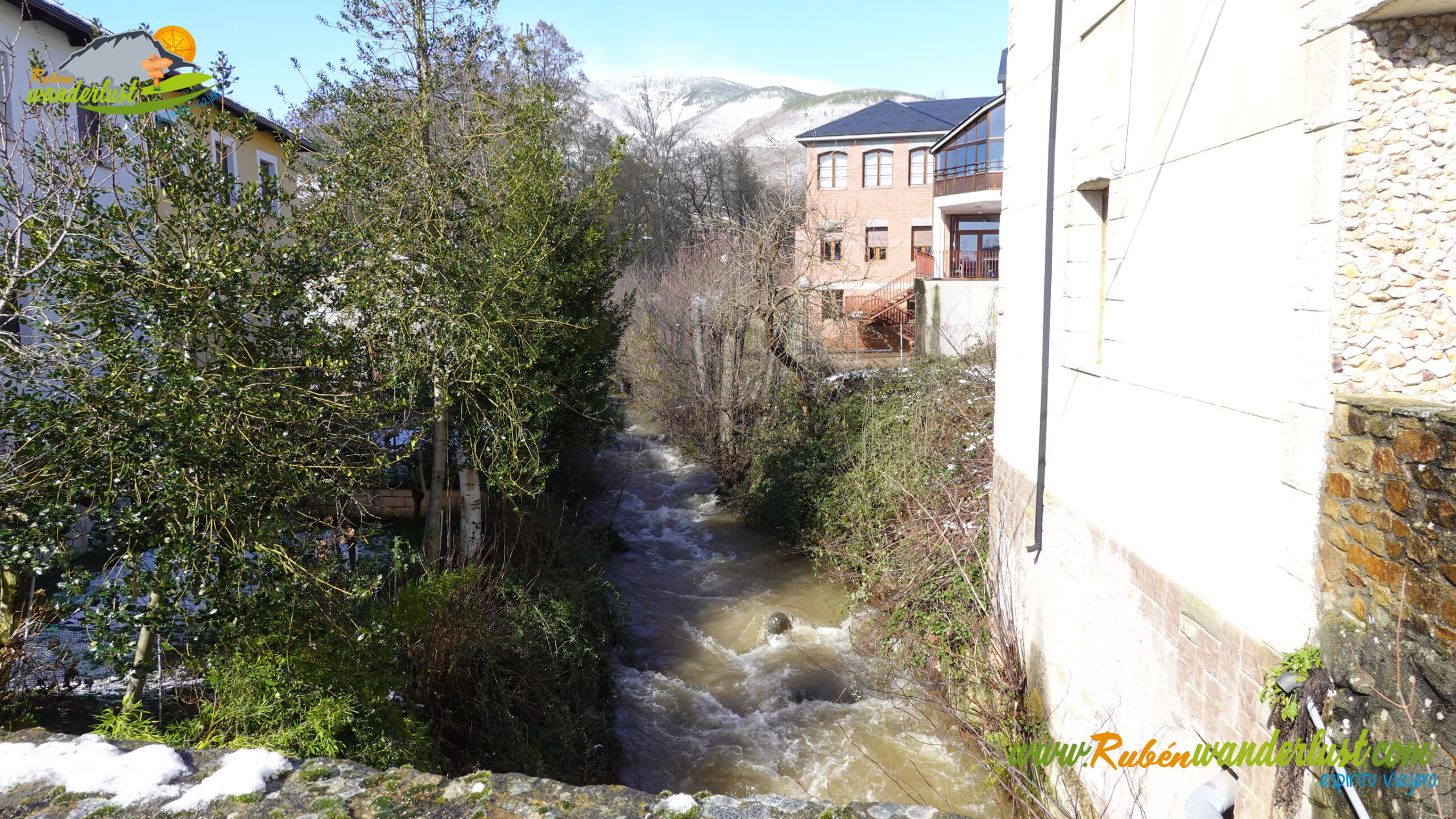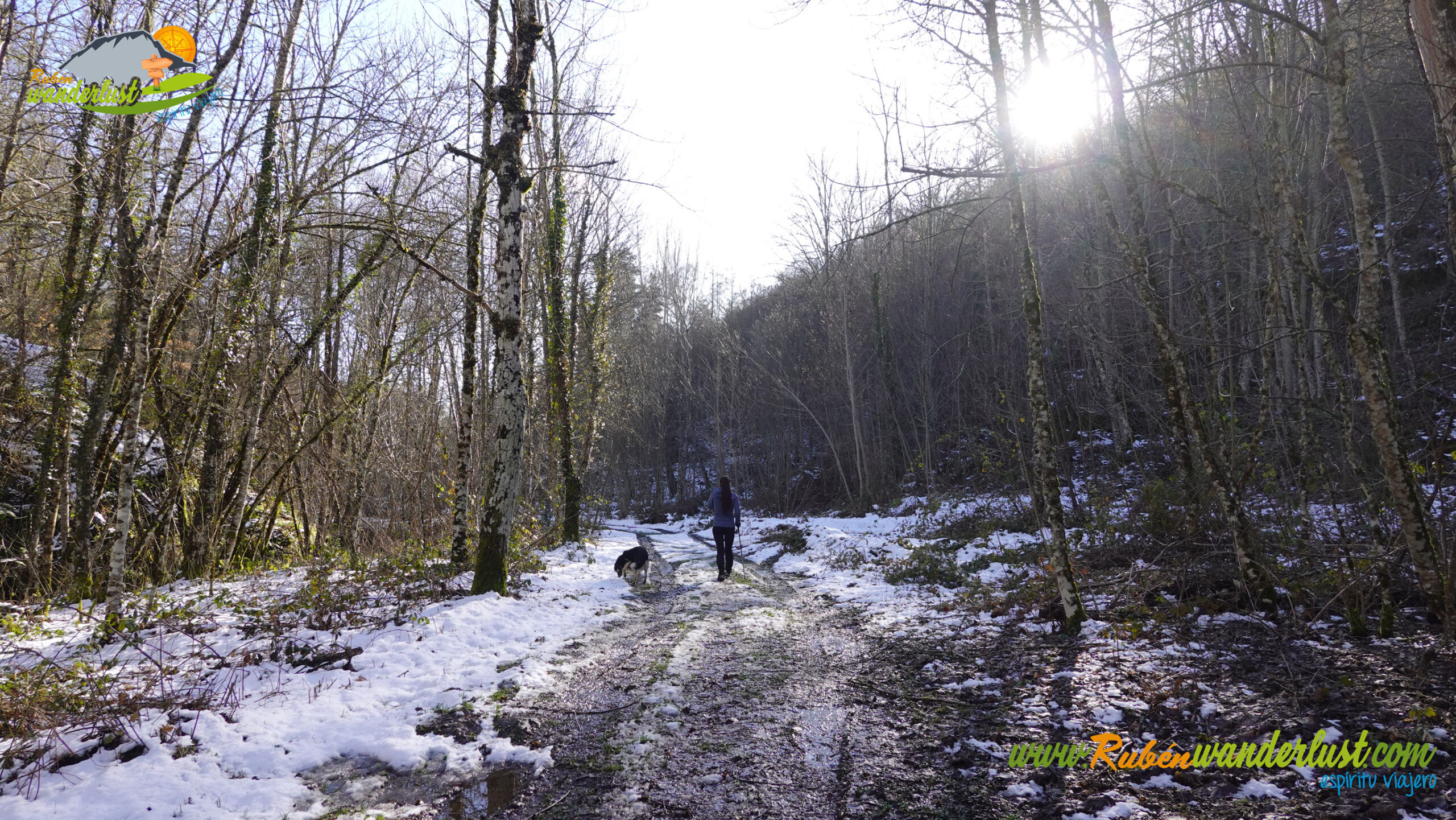 Con nieve recién caída durante la última noche, nos preparamos para afrontar un recorrido que promete! Bien equipados con polainas y ropa de invierno, iniciamos la marcha cruzando un puente sobre el Río Noceda y dejando atrás una fuente. Pronto llegamos al cartel informativo sobre la ruta que nos ocupa, así que echamos un ojo a lo que nos espera, que es mucho! Nos desviamos hacia la izquierda, hacia el norte!