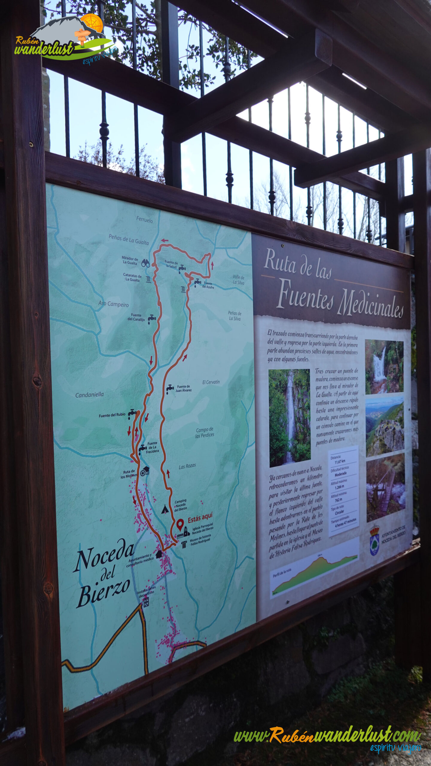 Próximos a Noceda, encontramos la última fuente que veremos, la Fuente de la Frecidera. Cabe destacar que aquí mismo se encuentra el desvío hacia la Fuente del Rubio, aunque no se encuentra señalizado y tampoco creemos que merezca la pena acercarnos hasta allí. También vemos un cartel informativo sobre el lugar!