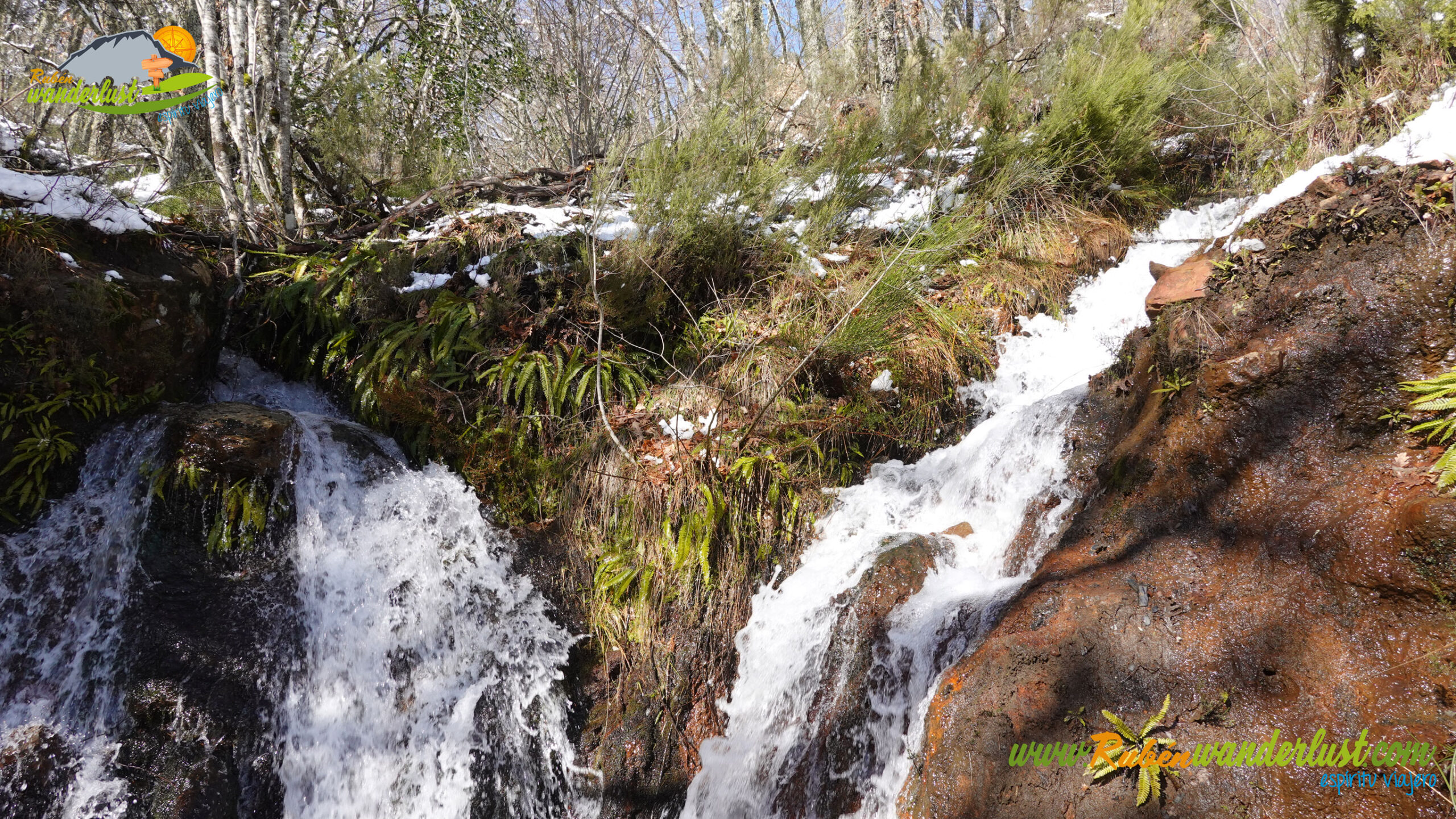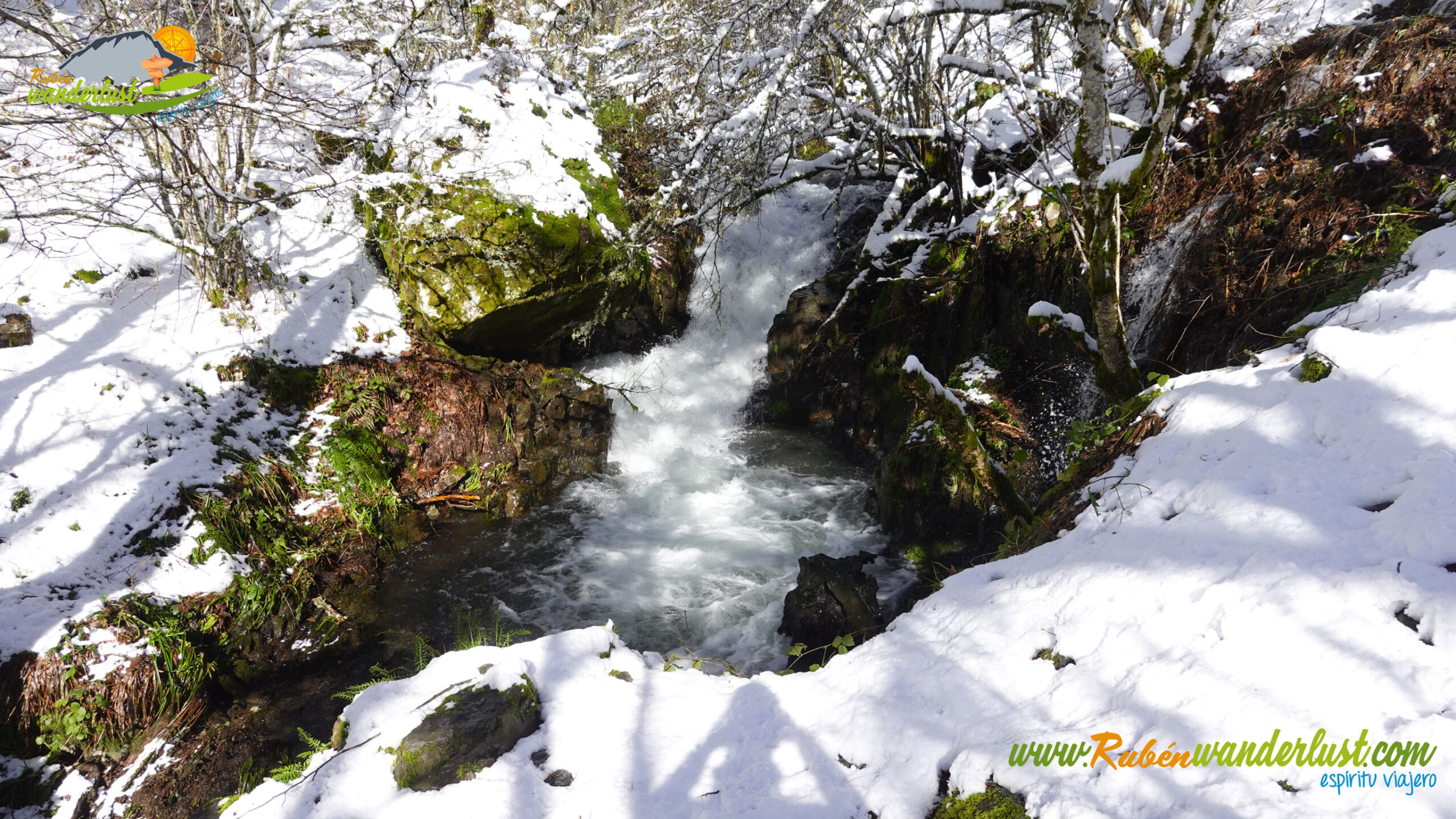 Tras superar la primera dificultad, empezamos a pisar nieve de manera más seria, aunque nada importante de momento. Nos desviamos a la derecha y comezamos a remontar el Río Noceda por un estrecho y sinuoso sendero. El Río Noceda nos regala un curso espectacular, con numerosas cascadas y un sonido imponente. Cruzamos el Río Noceda en un par de ocasiones. El lugar se encajona y nos regala uno de los rincones más bonitos de la ruta!