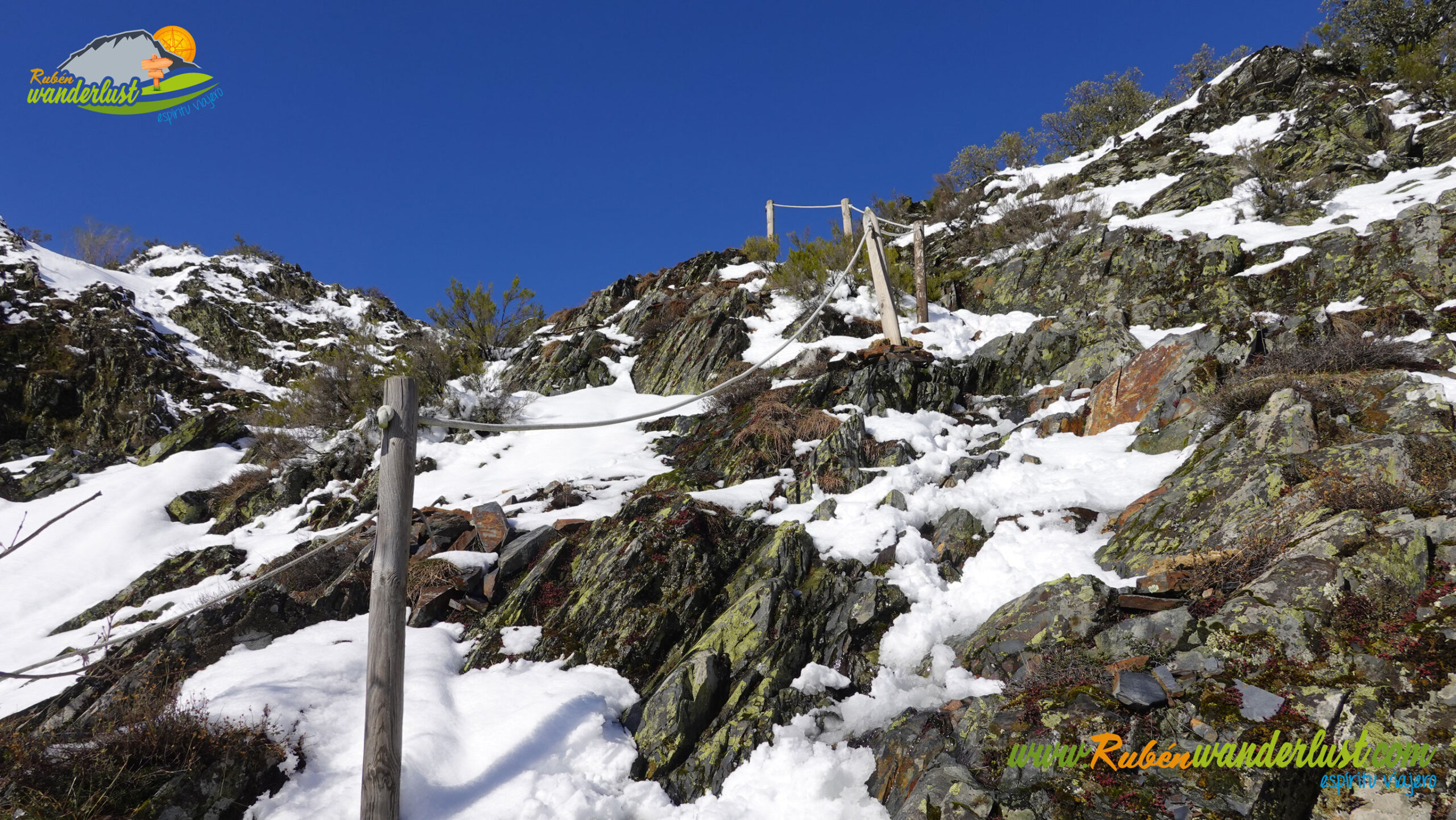 Dejamos atrás el desvío que debemos tomar para iniciar el descenso hacia la Catarata de la Gualta y afrontamos una pequeña trepada para acceder a la cumbre de Peñas de la Gualta. Debemos prestar atención a este paso, que aunque no tenga mayores complicaciones en época estival, sí que tendremos que tener cuidado en invierno. Hay hielo y algunos puntos de apoyo resbalan, así que vamos superando el paso sin ninguna prisa!