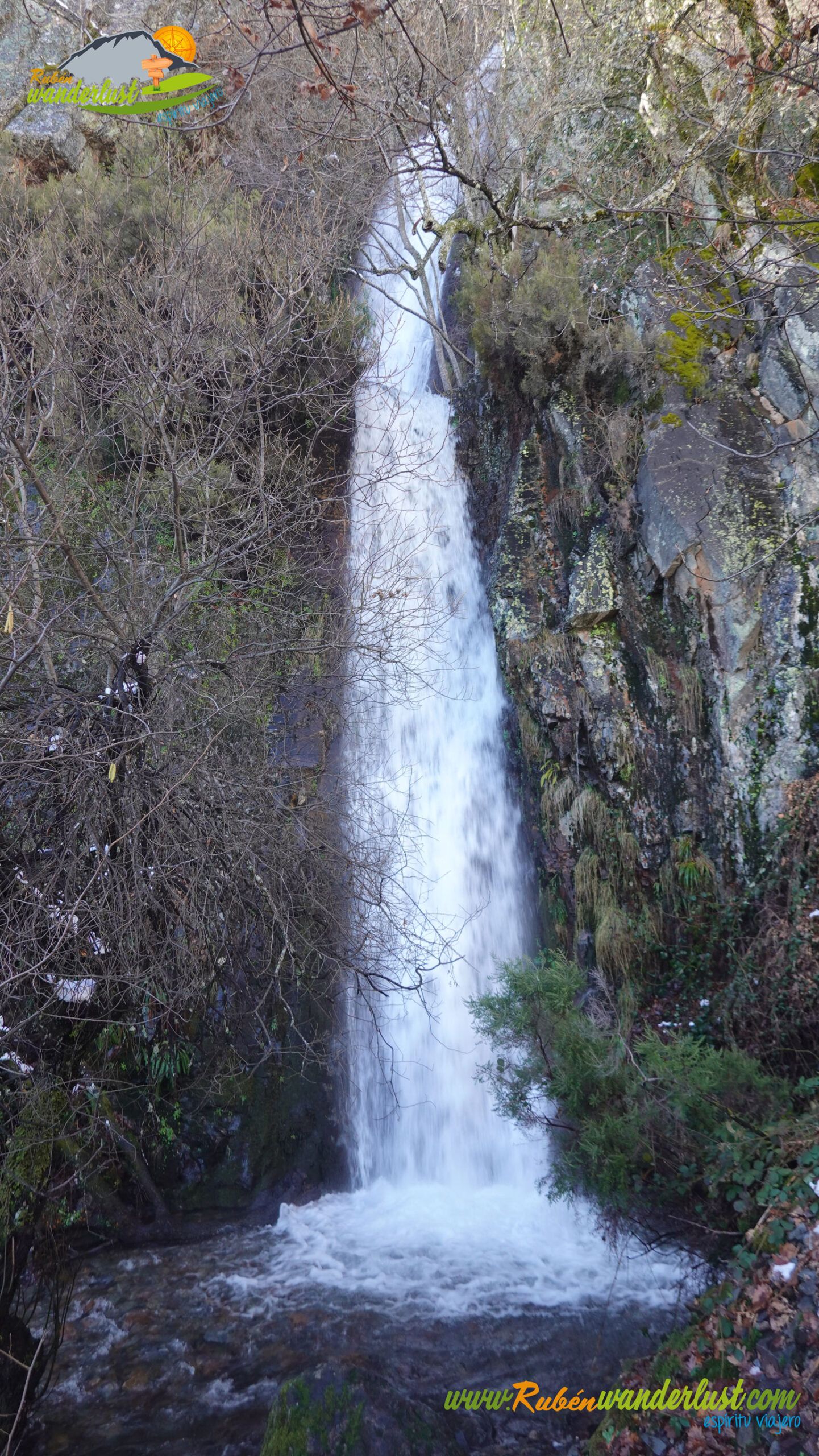 Cuando el Río Noceda se bifurca, seguimos la ruta adentrándonos en el valle de la derecha y llegando al punto en el que las chicas se dieron la vuelta. Una ligera curva en el camino y uno de los arroyos estacionales de la zona nos regalan una cascada espectacular! Se nota mucho la gran cantidad de agua que ha caído durante este inicio de año 2026! Vemos por dónde pasar, pues hay mucha humedad y la zona está completamente encharcada! Tras un par de minutos viendo por dónde pasar, alguna piedra nos permite cruzar con poco riesgo! Eso sí, calzado impermeable!